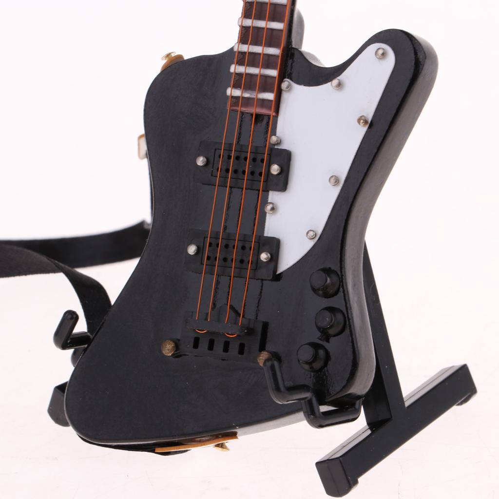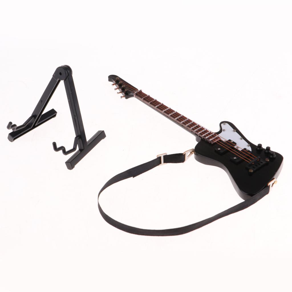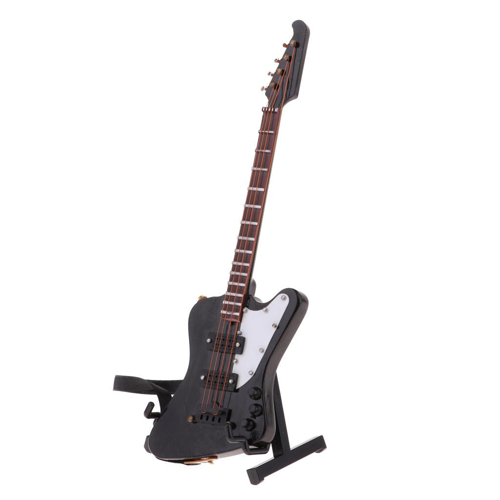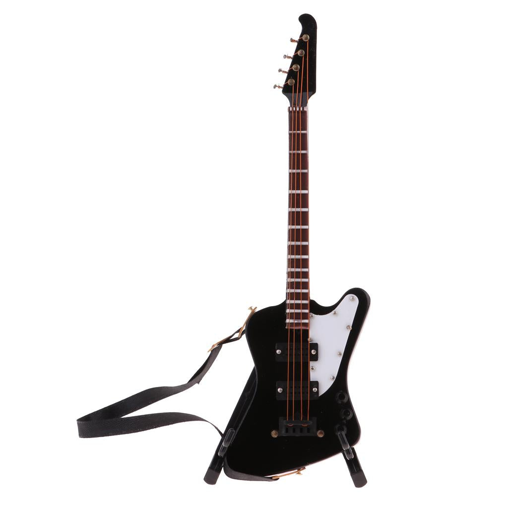 1/6 scale miniature wooden electric bass guitar with stand and strap musical instrument model kit for dolls house decor accessories