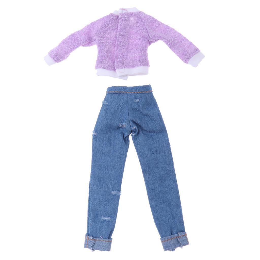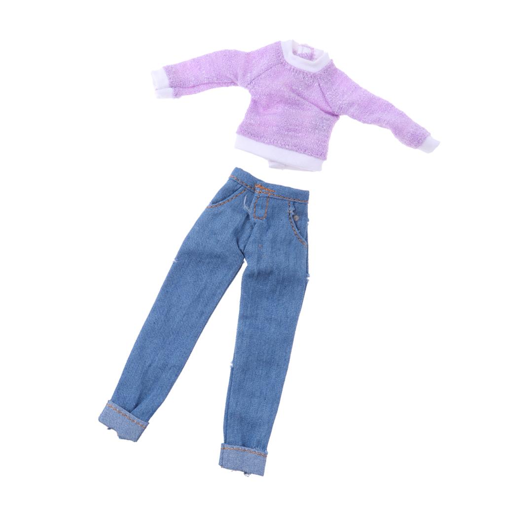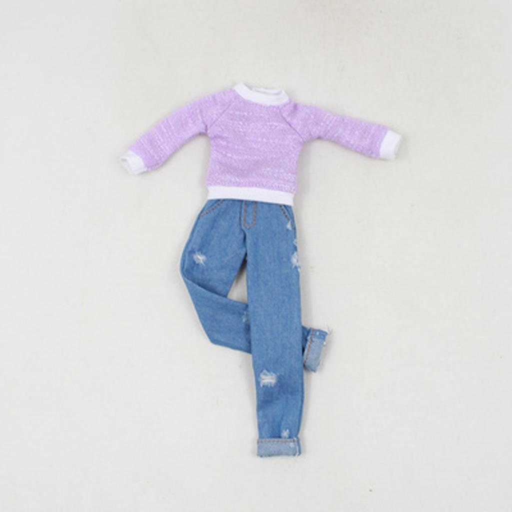 Long sleeve tshirt denim jeans suit outfit clothes for 1/6 scale fashion dolls