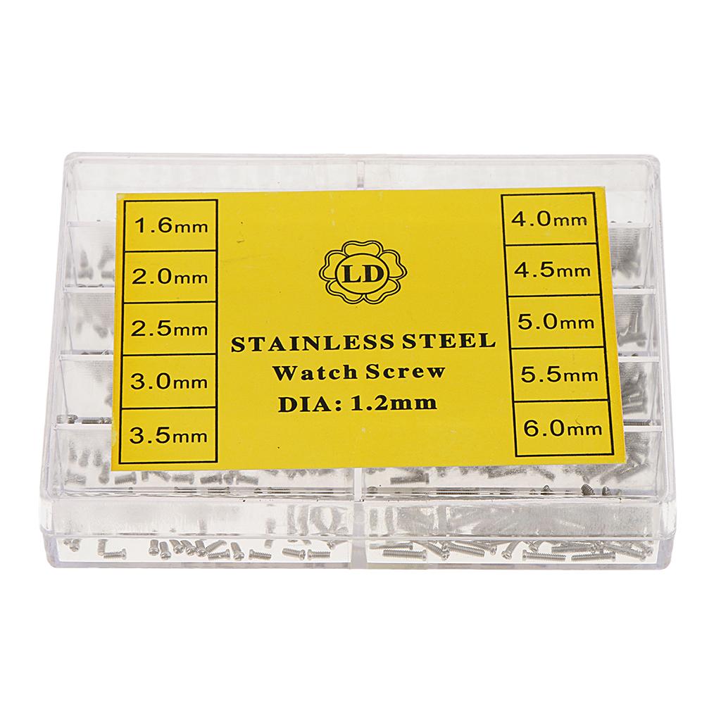 Stainless steel clock and watch screws, 10 size (Thickness:1.2mm; Length 1.6mm/2.0mm/2.5mm/3mm/3.5mm/4mm/4.5mm/5mm/5.5mm/6mm);