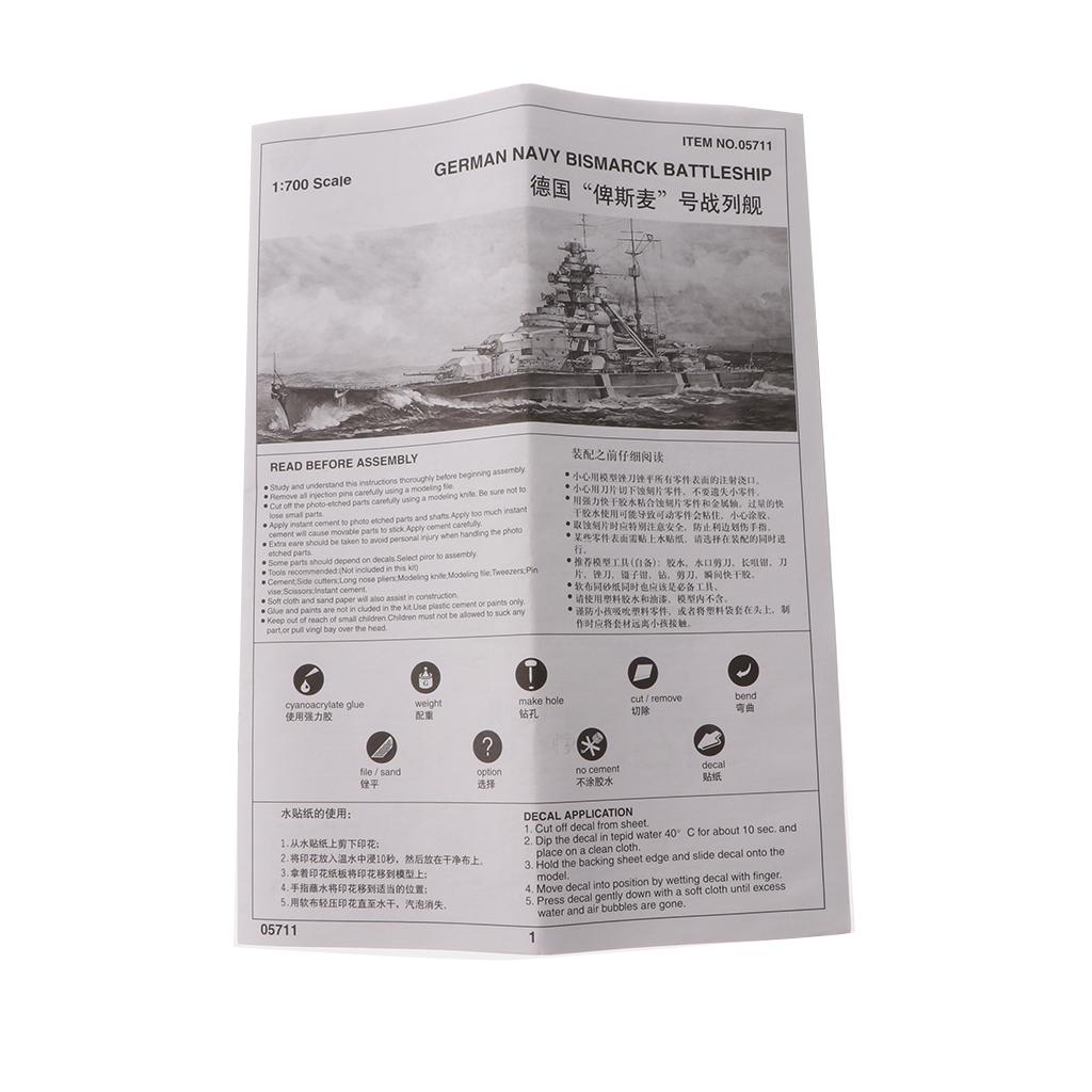 1 Set 1/700 Scale Bismarck Battleship Assembly Model Kits