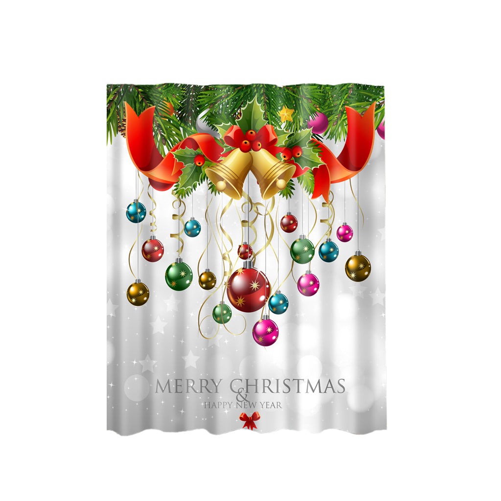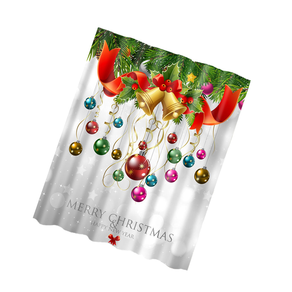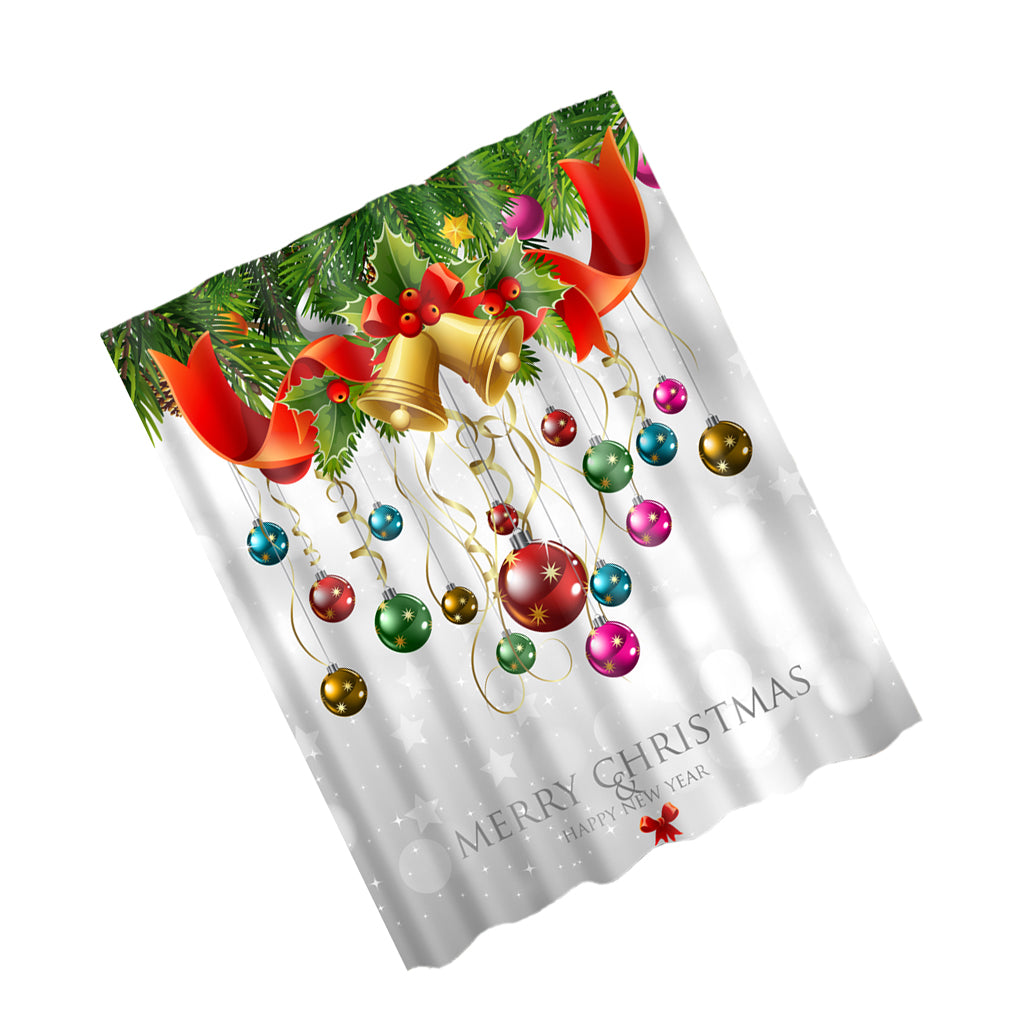 1.8M X1.8M Bathroom Shower Curtain Waterproof Panel Hook Set Jingle Bells