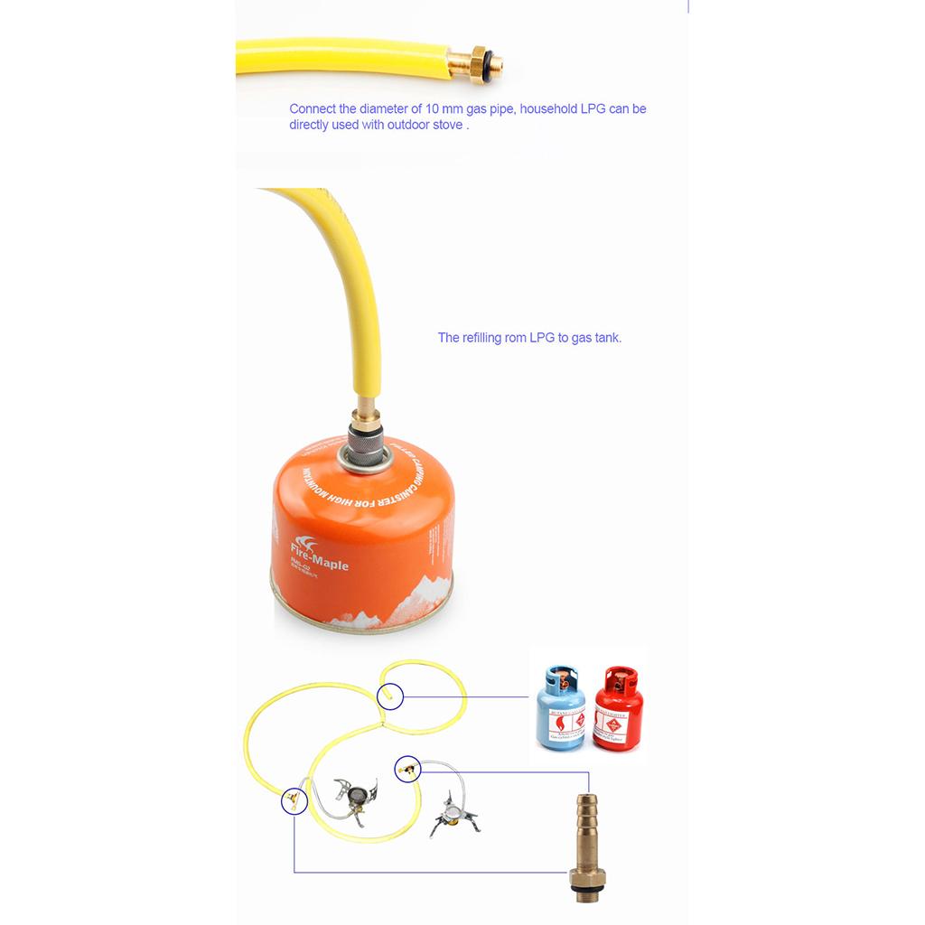 For filling camping gas tank. Thread end connecting the flat gas tank, the other end connecting hose.