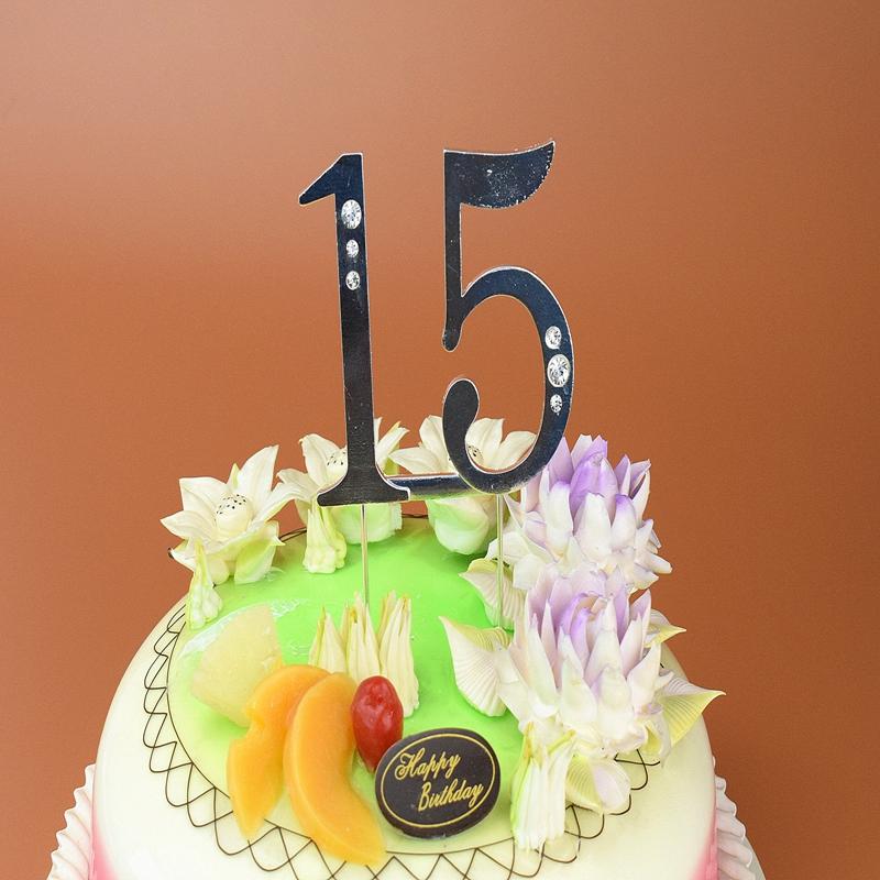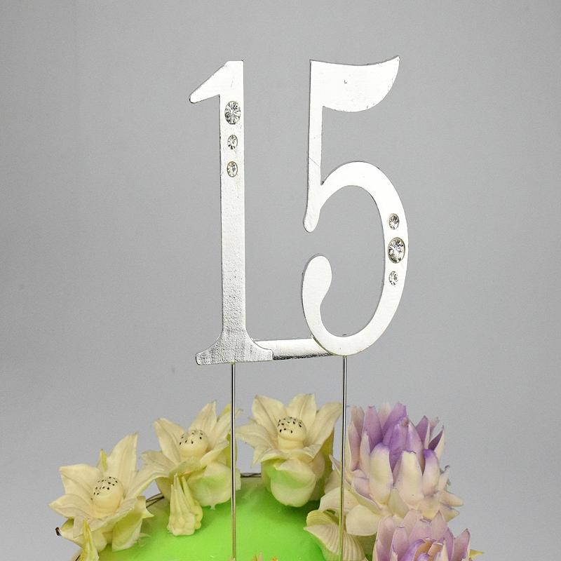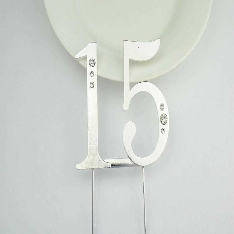 Introducing Cake Topper for Anniversary and Birthday.This wedding cake topper is designed with Silver Alloy and Rhinestone This cake 15 number comes with round display rhinestone for you Birthday and Anniversary cake decoration.