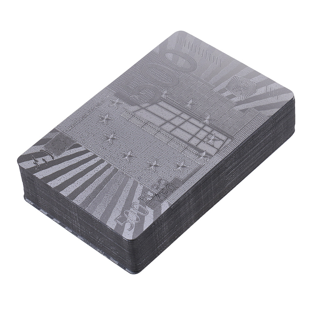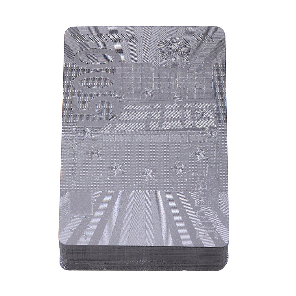 1 Deck Waterproof Plastic Euros Style Silver Foil Poker Cards Party Fun Toy