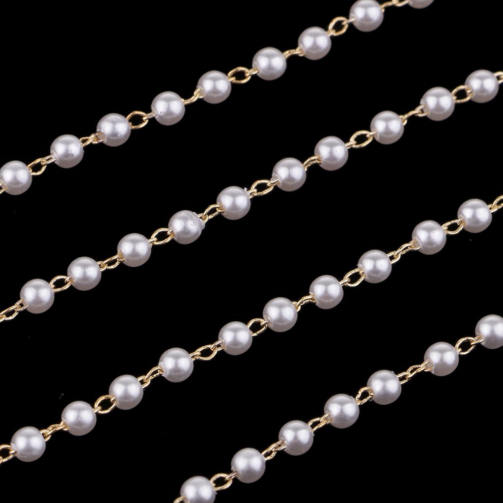 3mm pearl beads with gold plated clasp loops chain, total 1 meters long