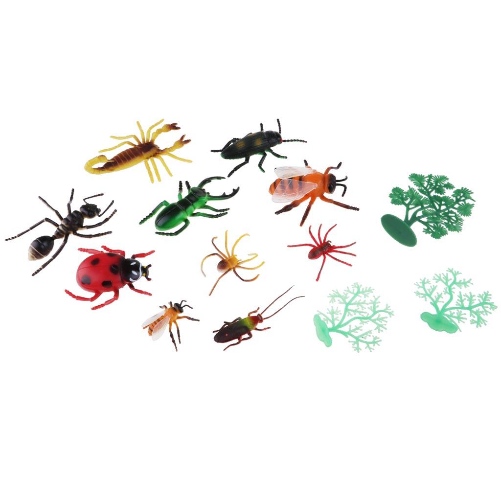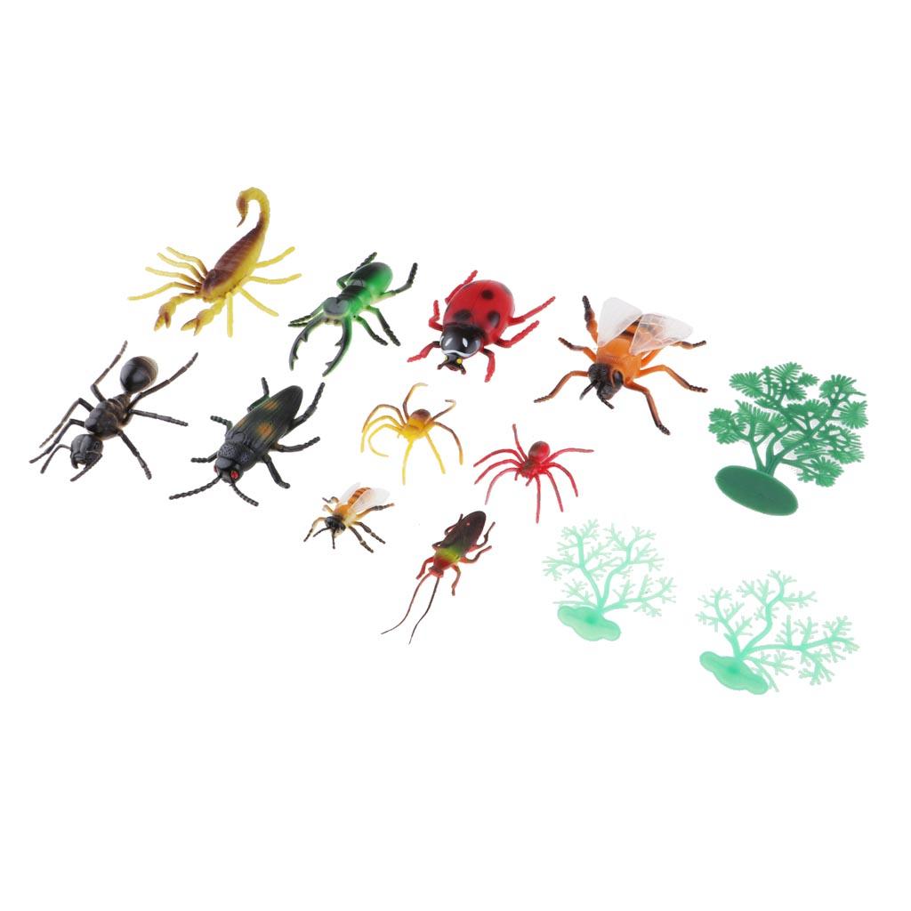 10 Pieces Miniature Insects Animal Action Figure Toy with Plants