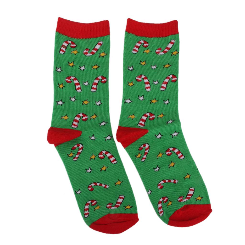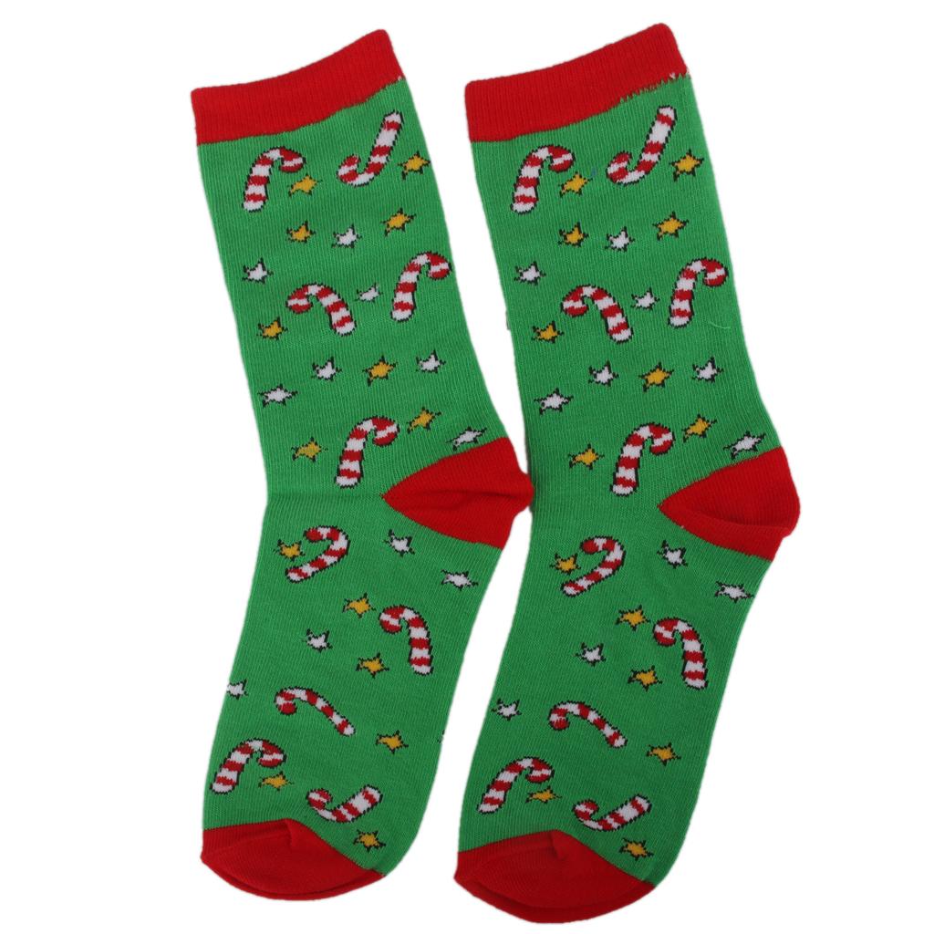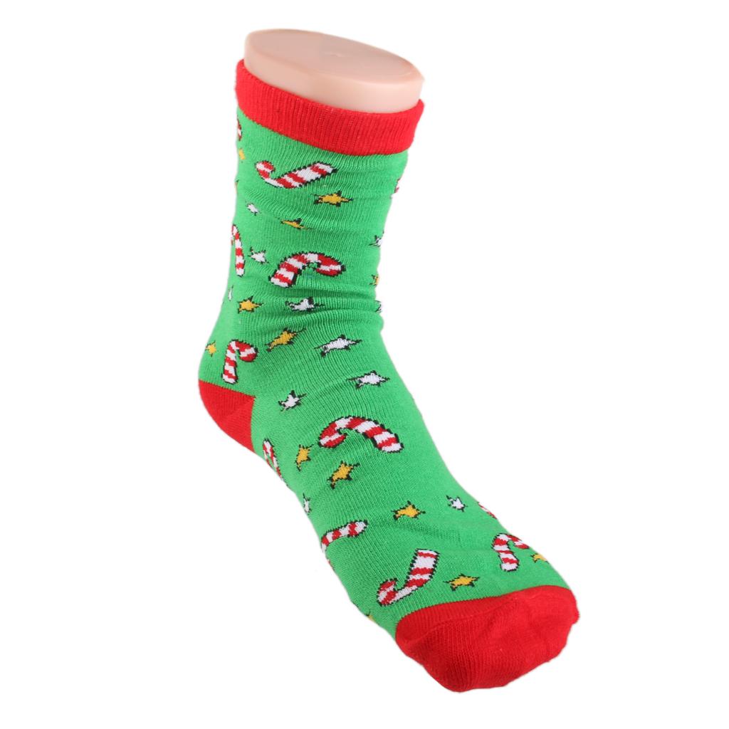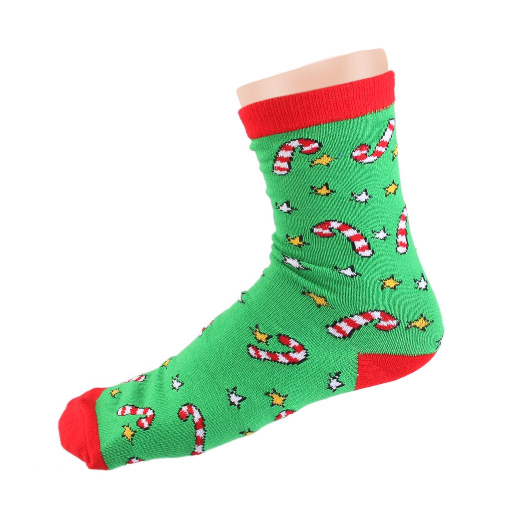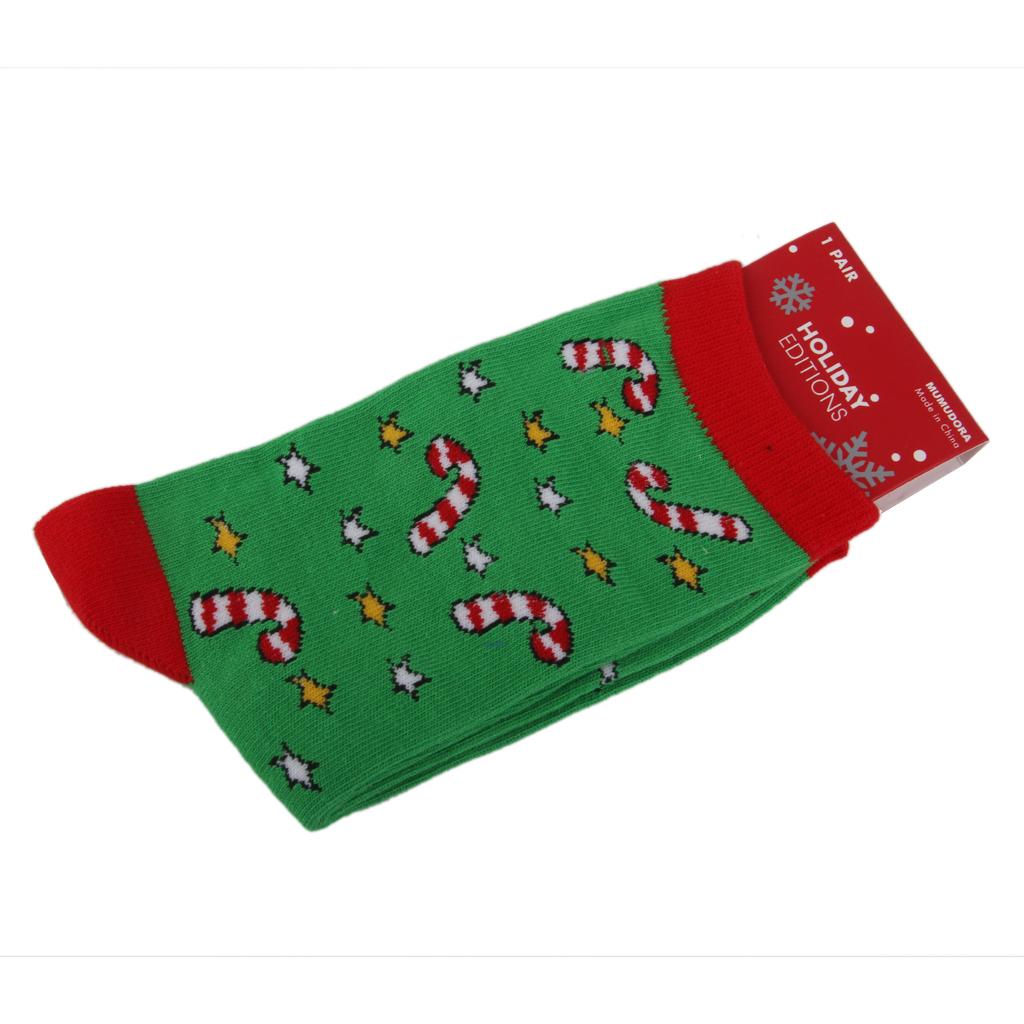 1 Pair 80% Cotton Unisex Soft Autumn Winter Warm Christmas Tiny Umbrella Pattern Crew Socks Green
