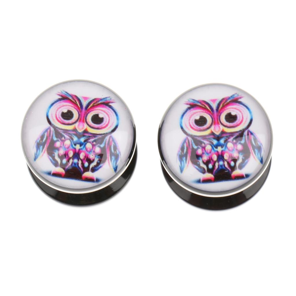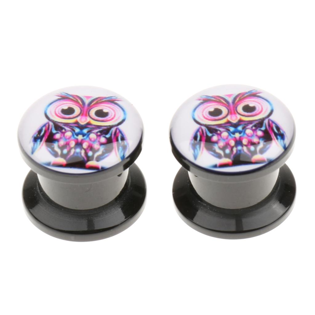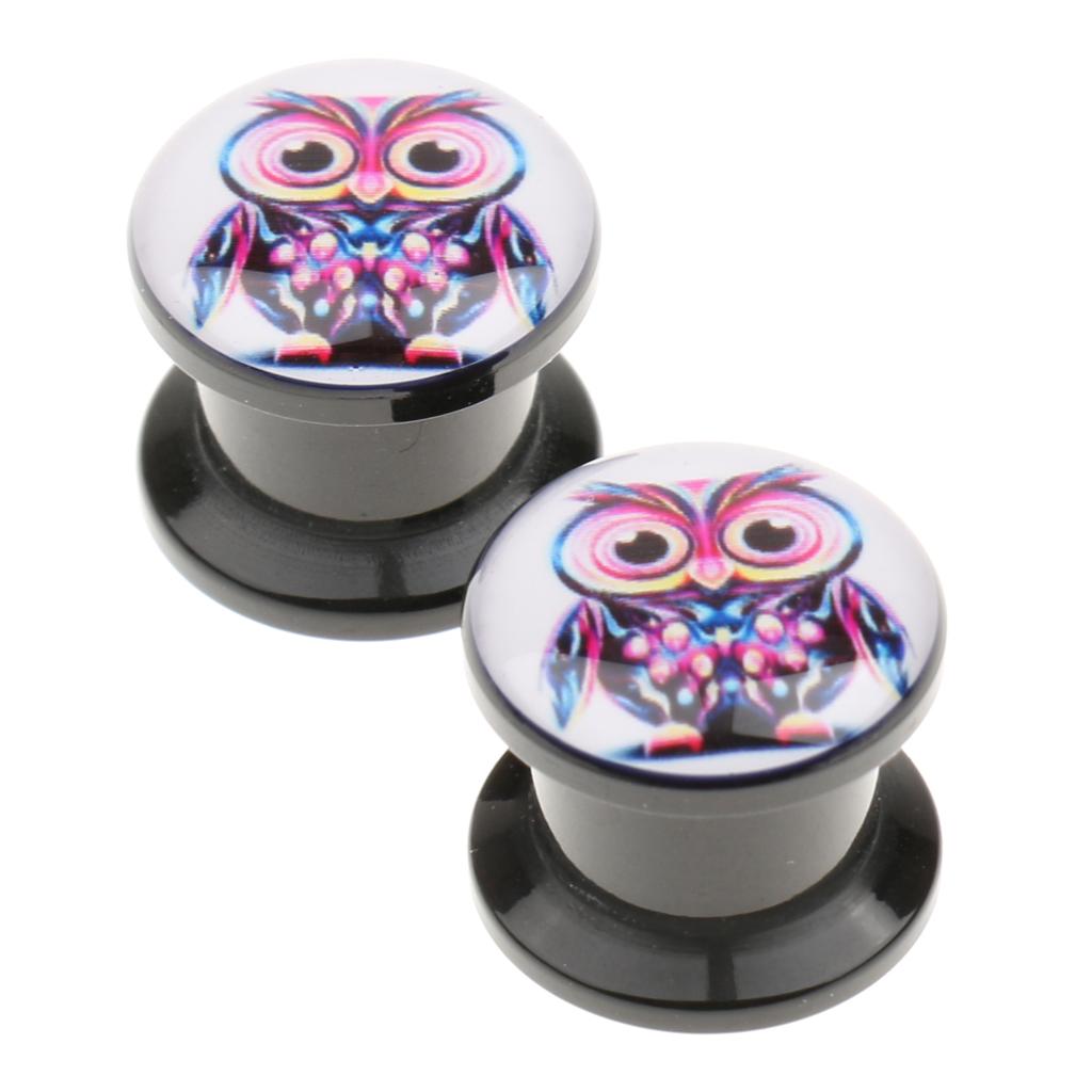 1 Pair Acrylic Ear Plug Expander Flesh Tunnel Stretcher Multicolor Owl 16mm