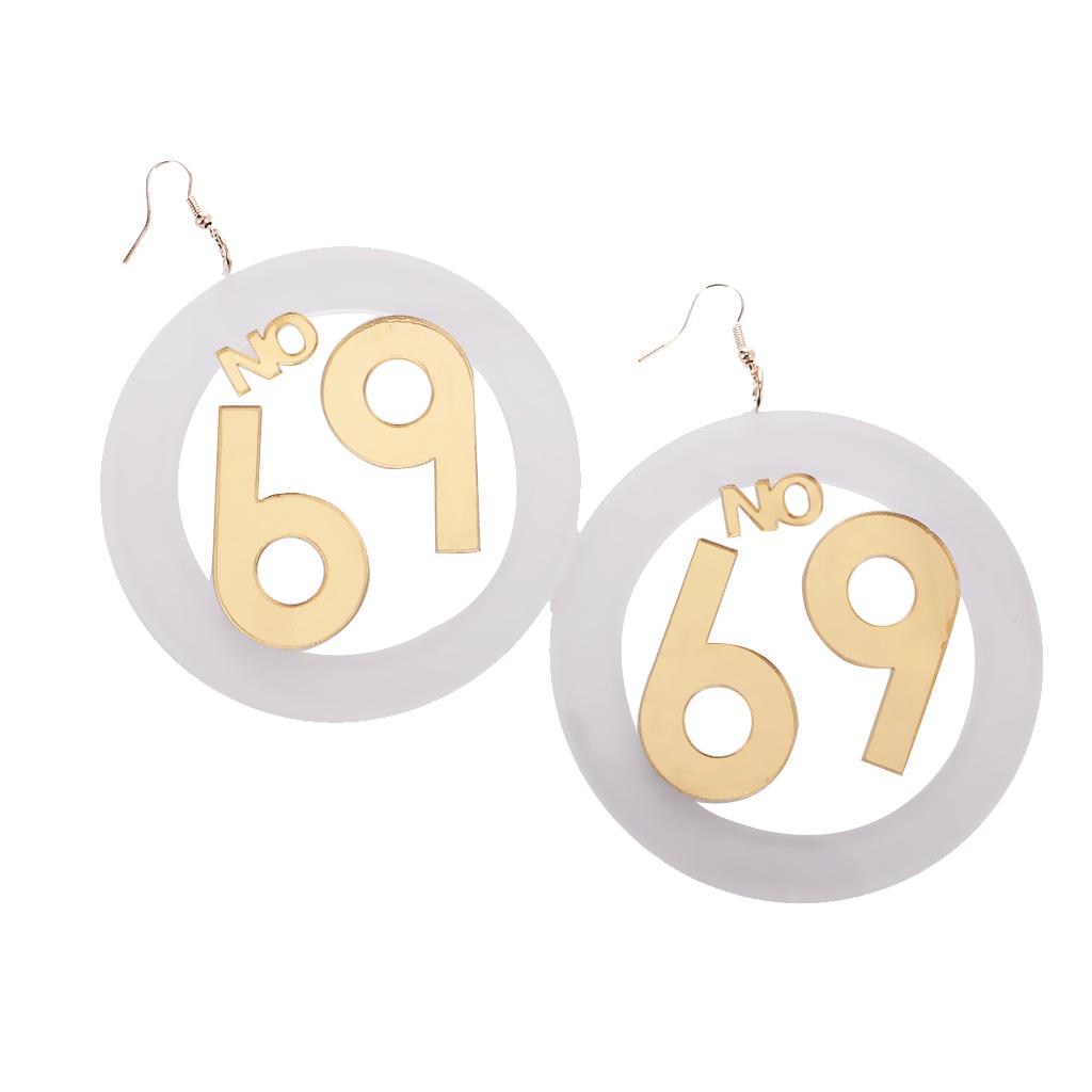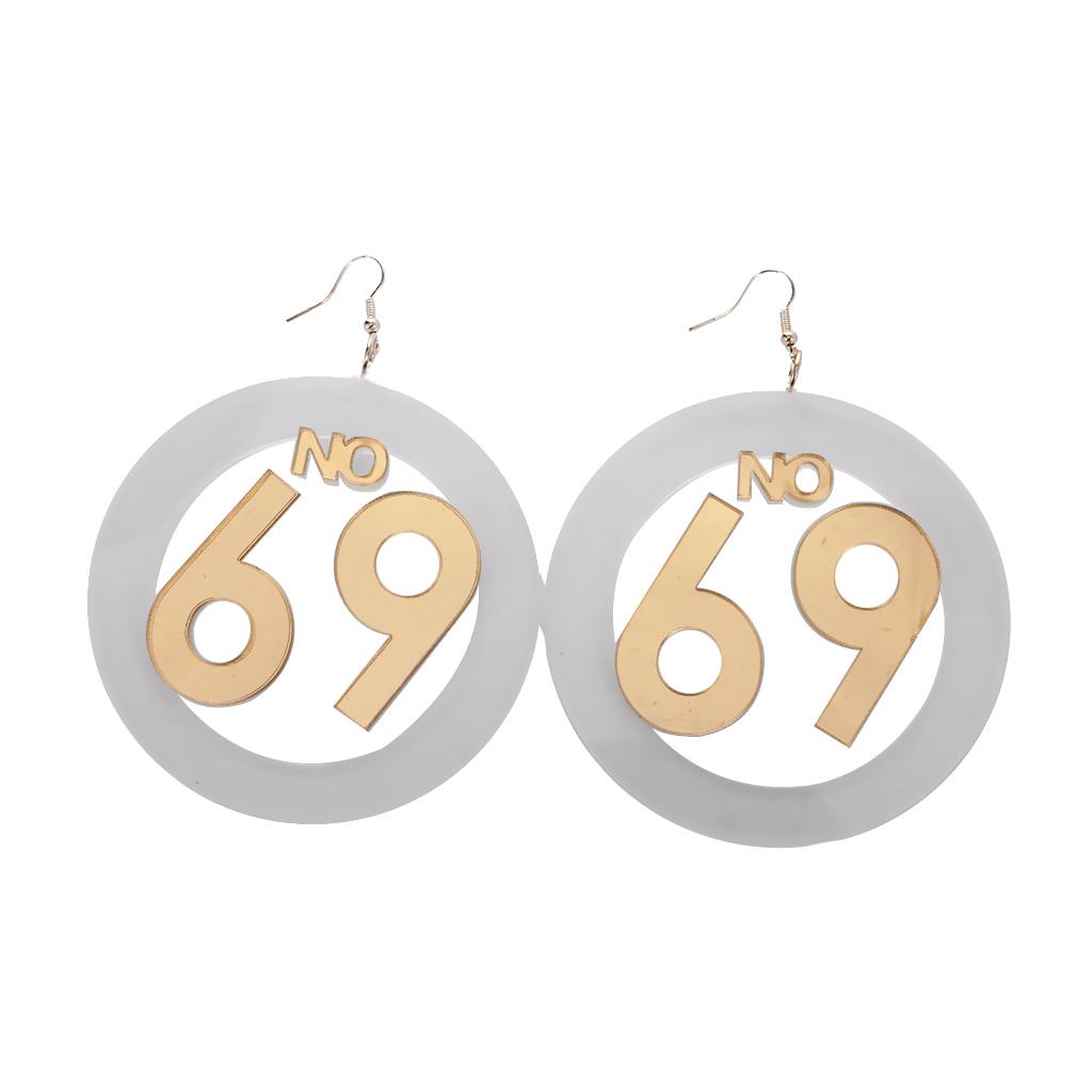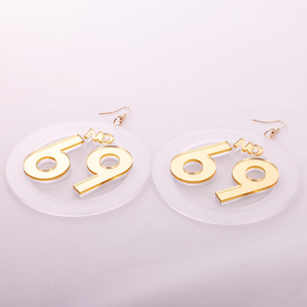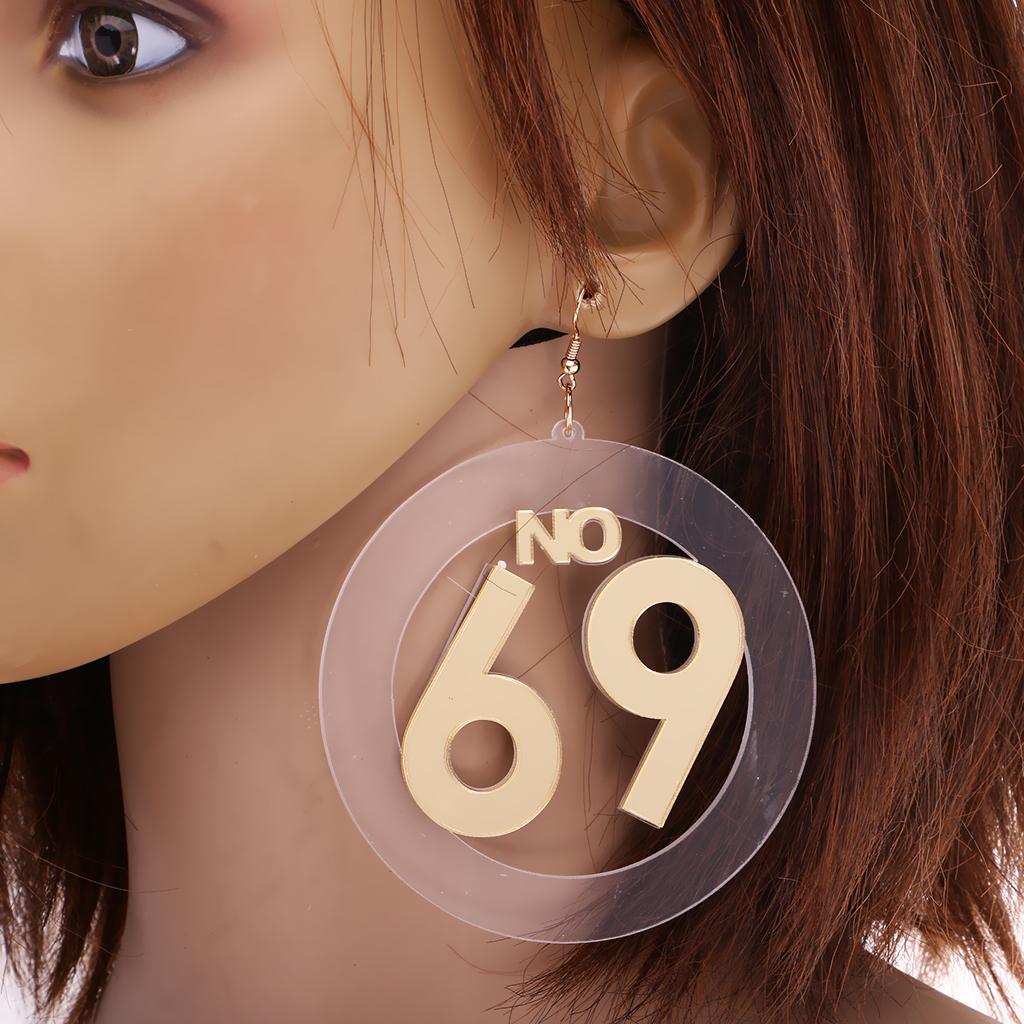 Women large number 69 dangle stud earrings