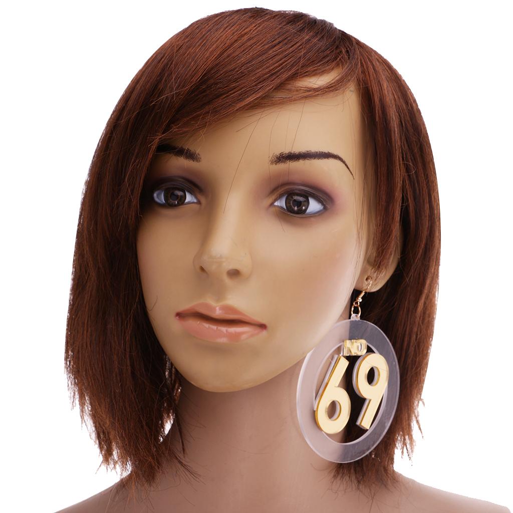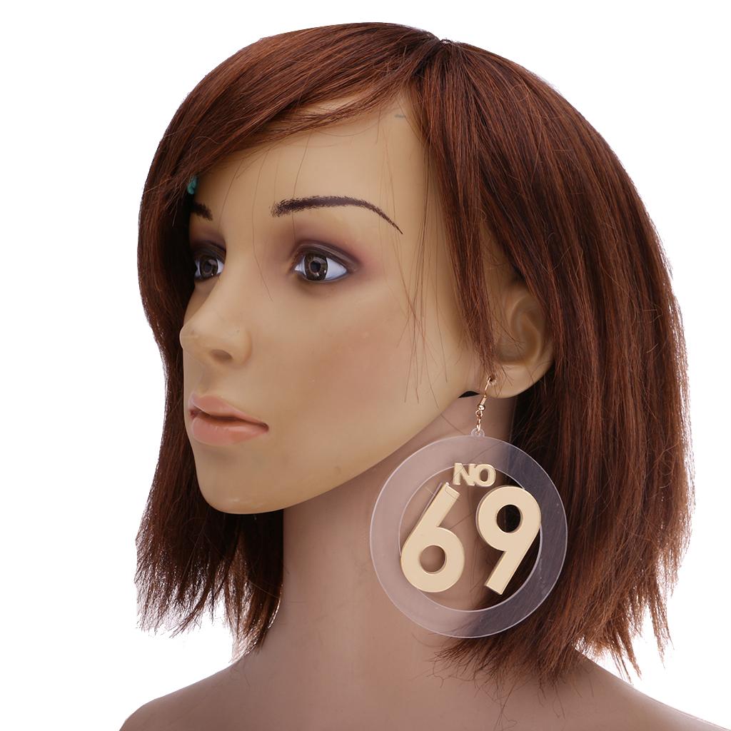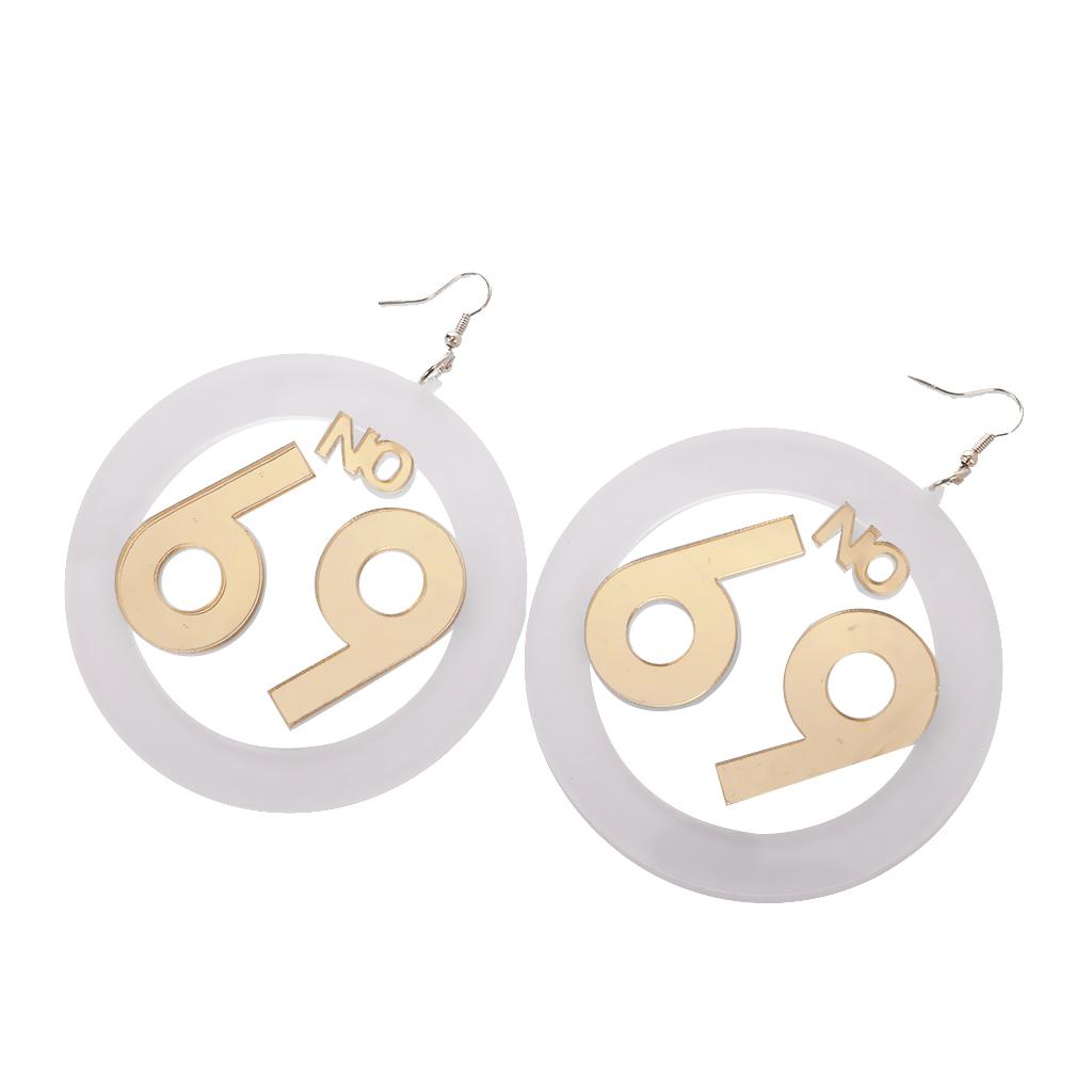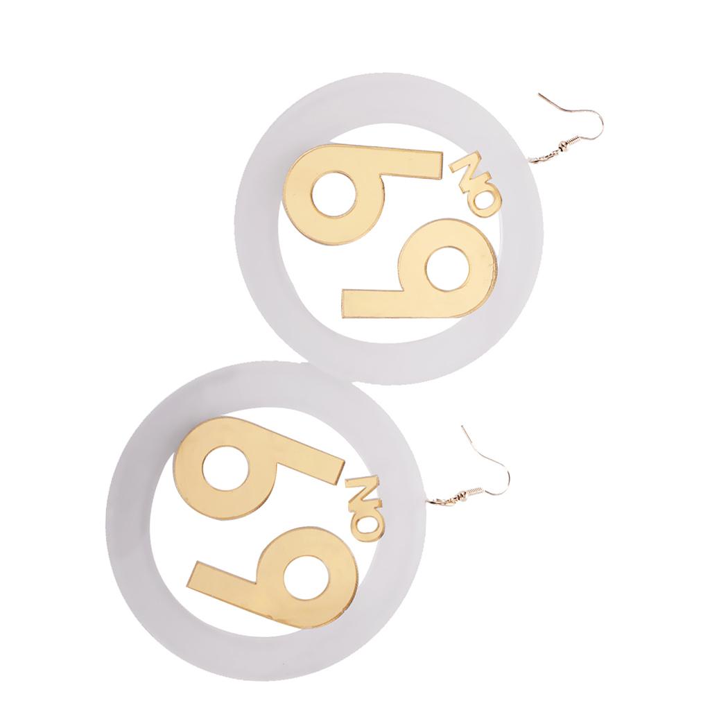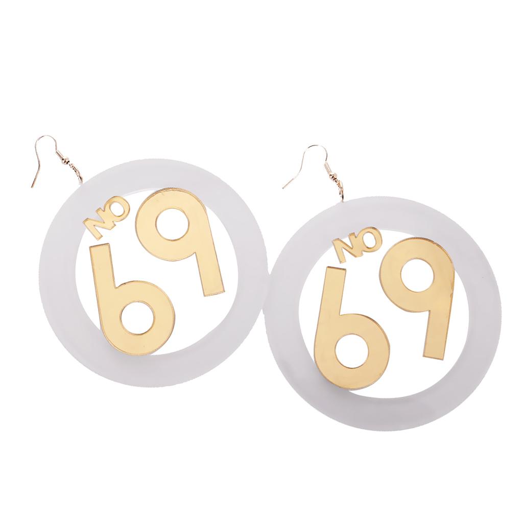 Women large number 69 dangle stud earrings