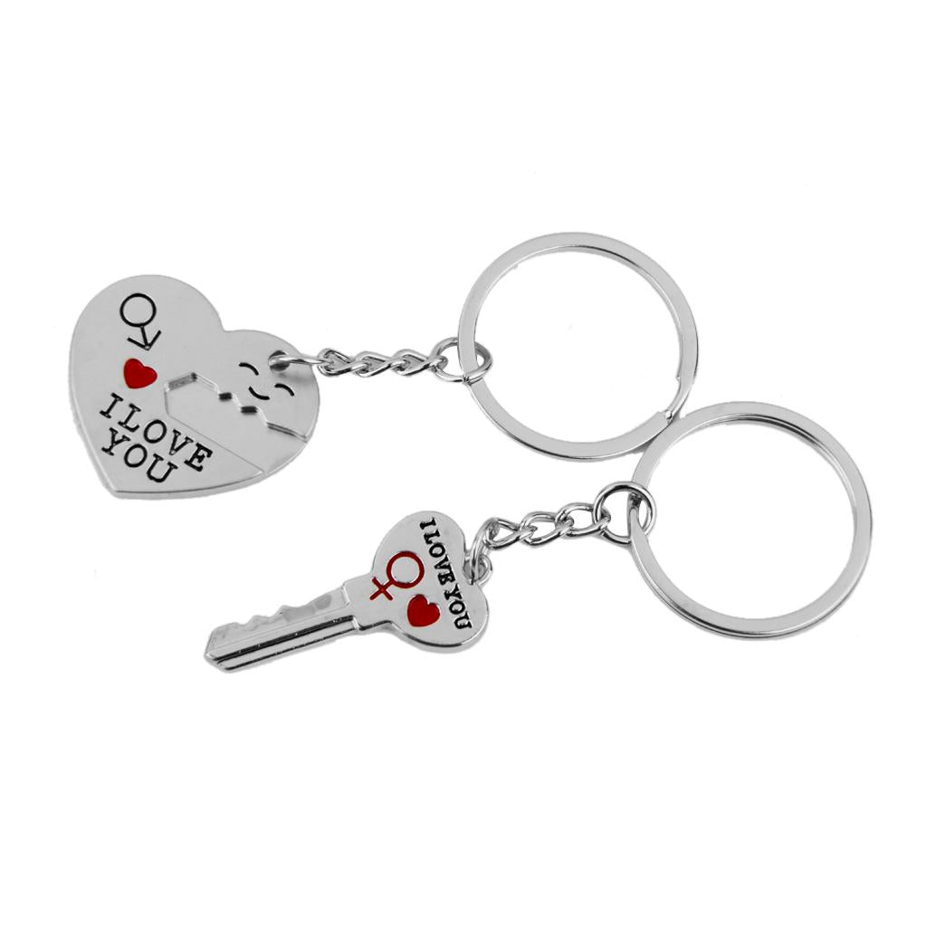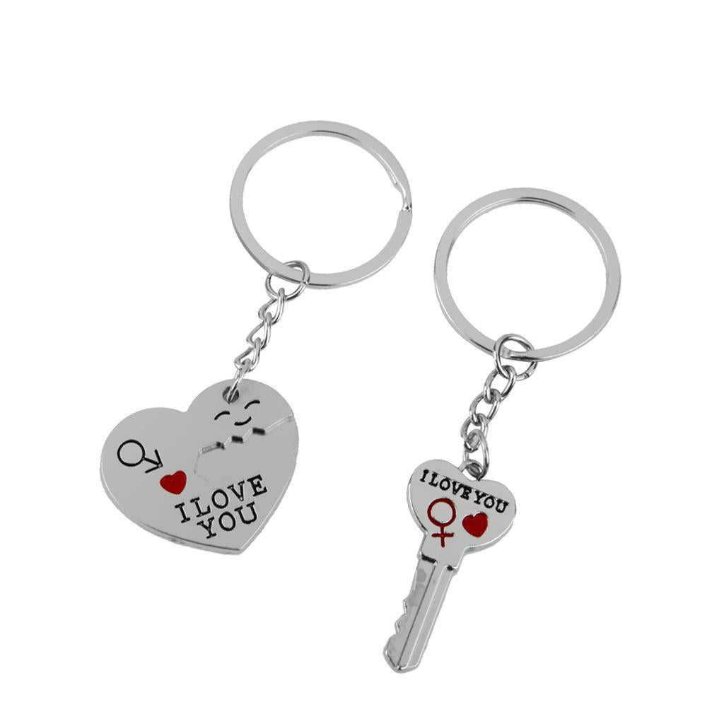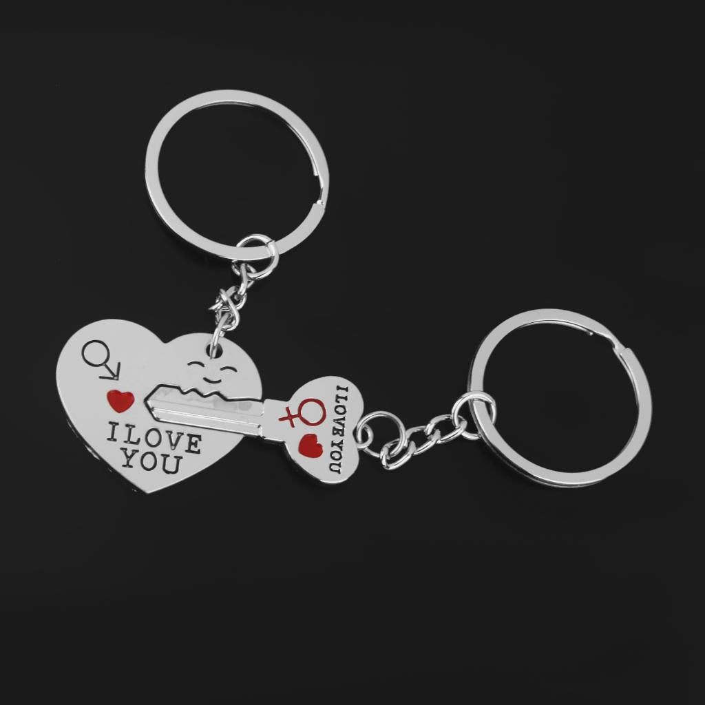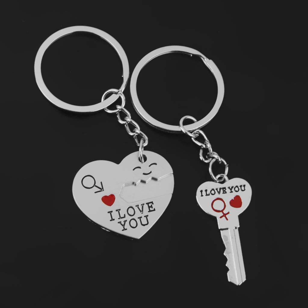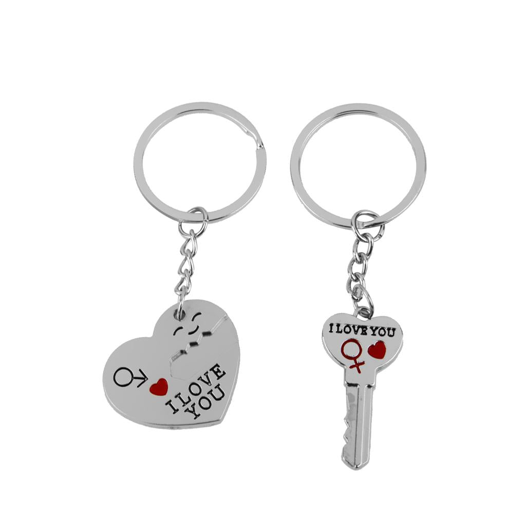 1 Pair Alloy Love Smile Key Heart Shape Pendant Keyring Keychain