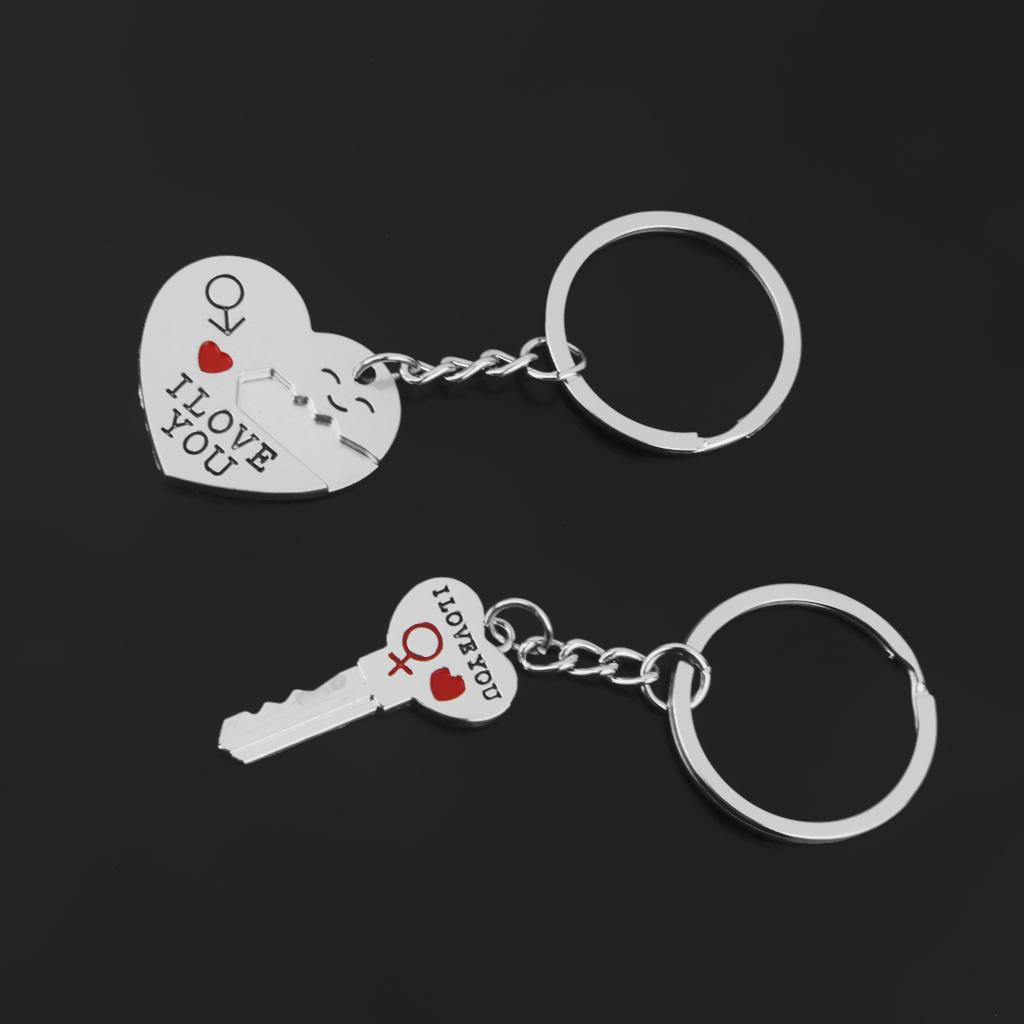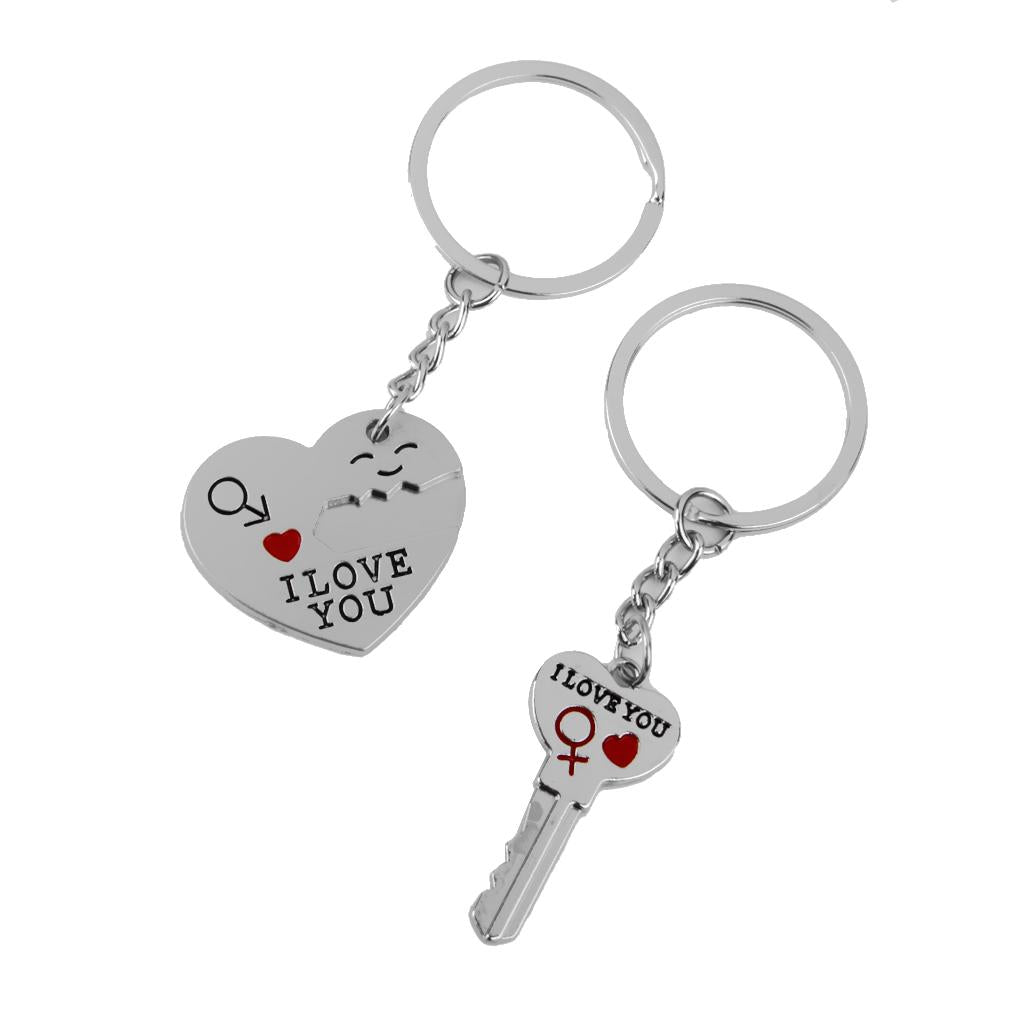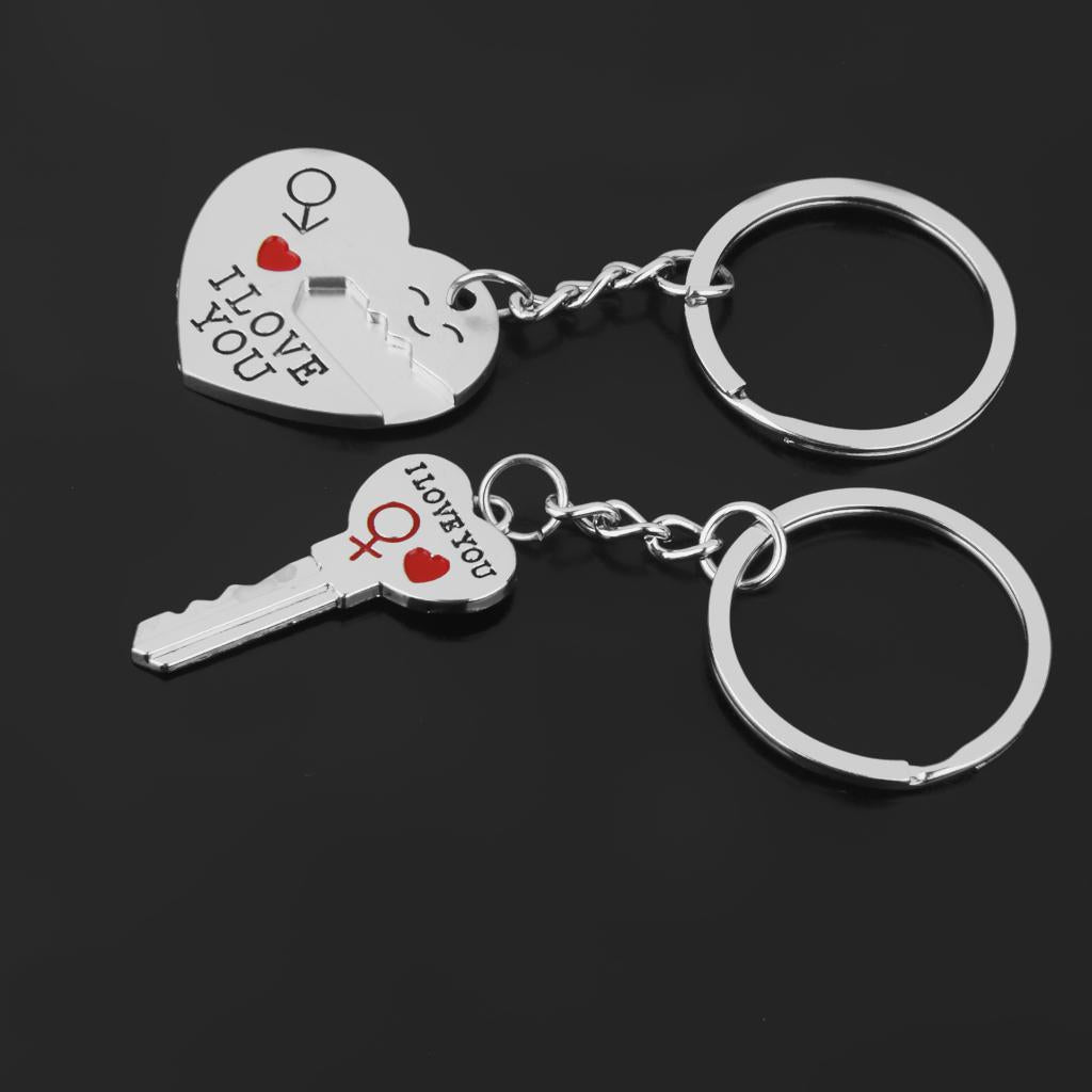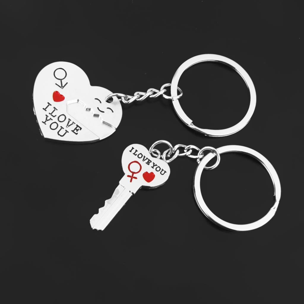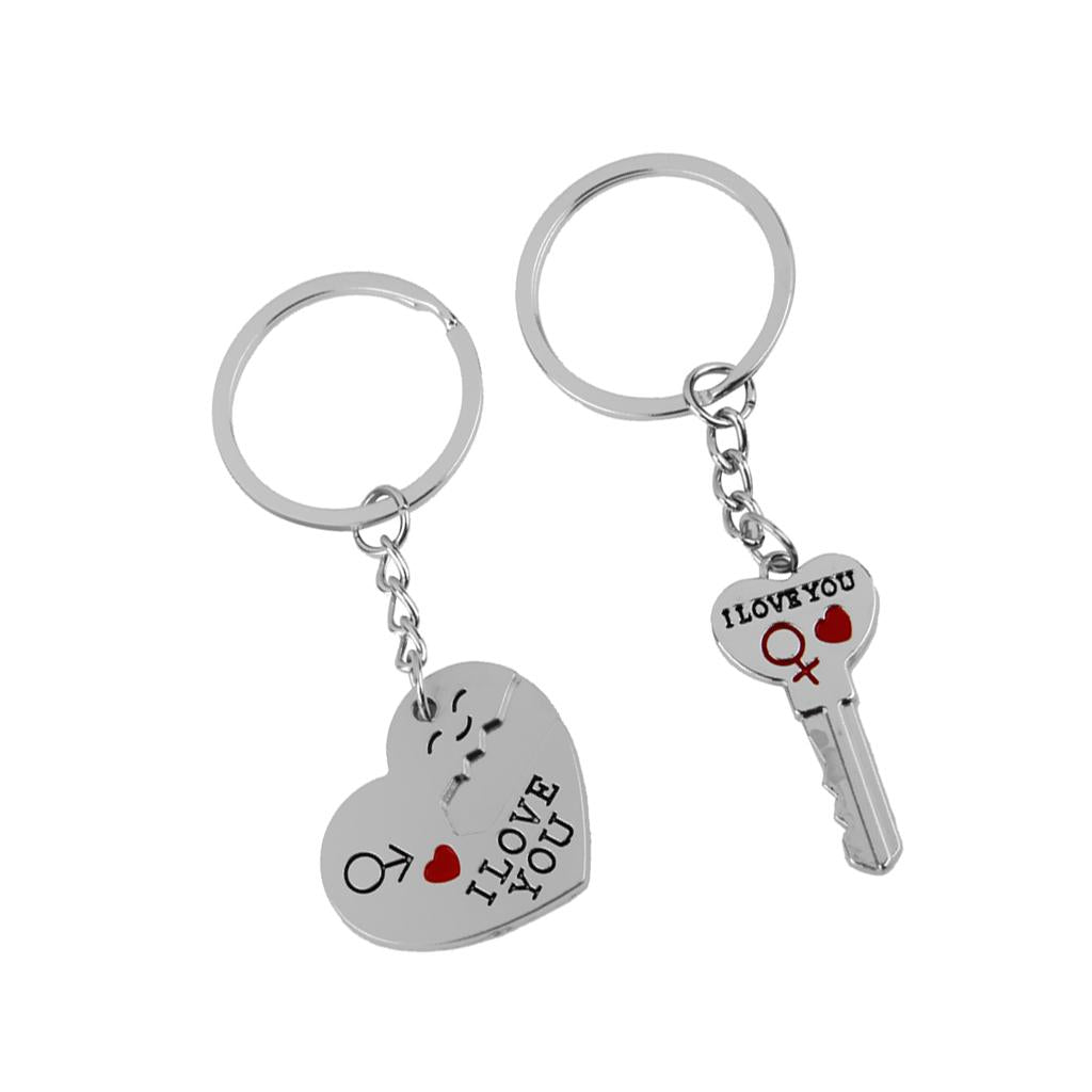 1 Pair Alloy Love Smile Key Heart Shape Pendant Keyring Keychain