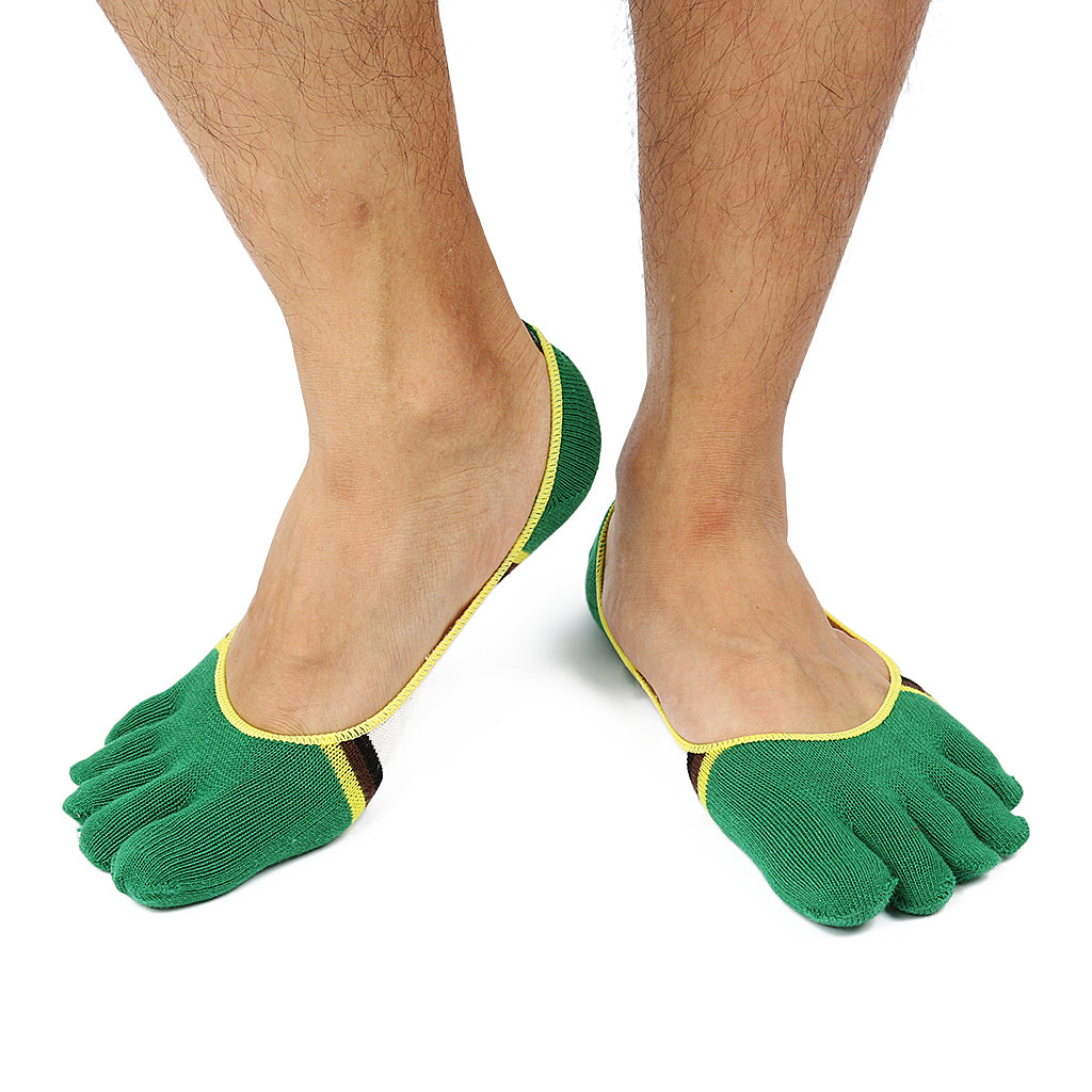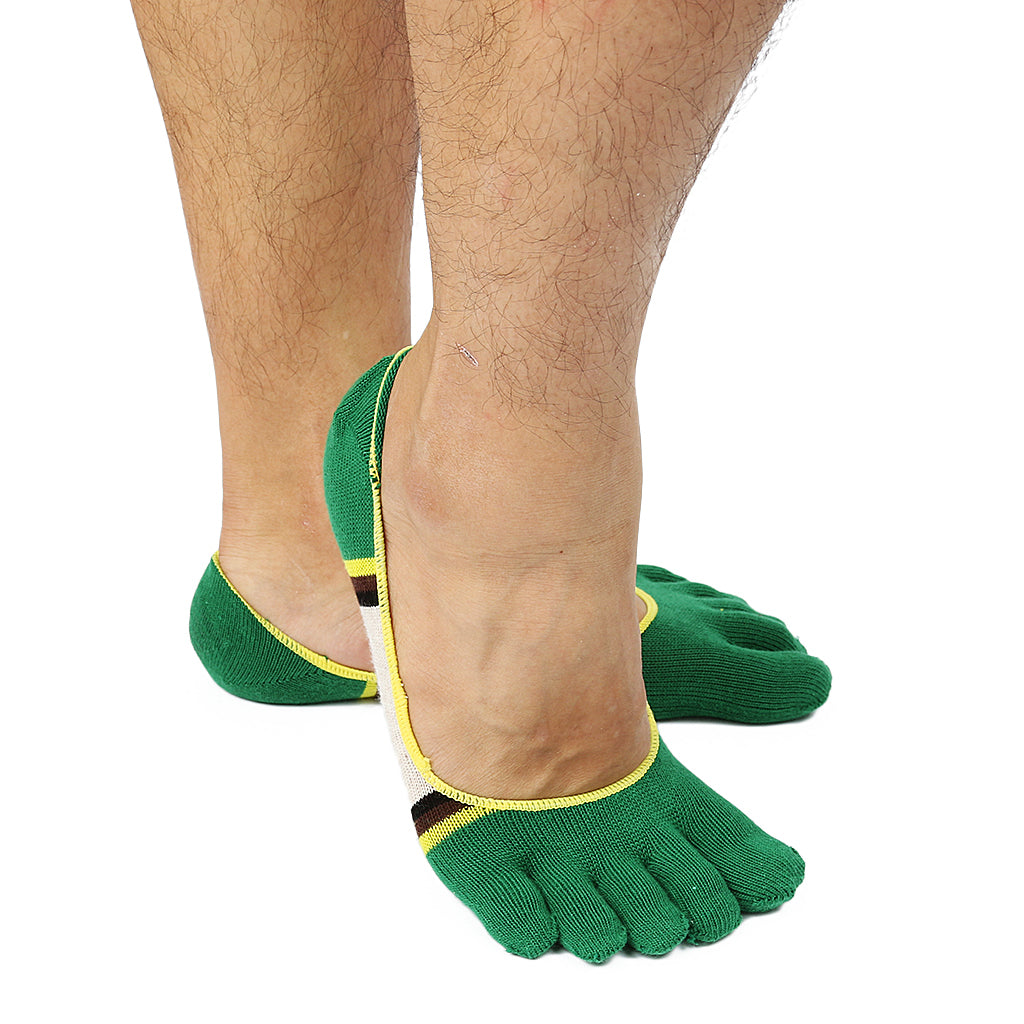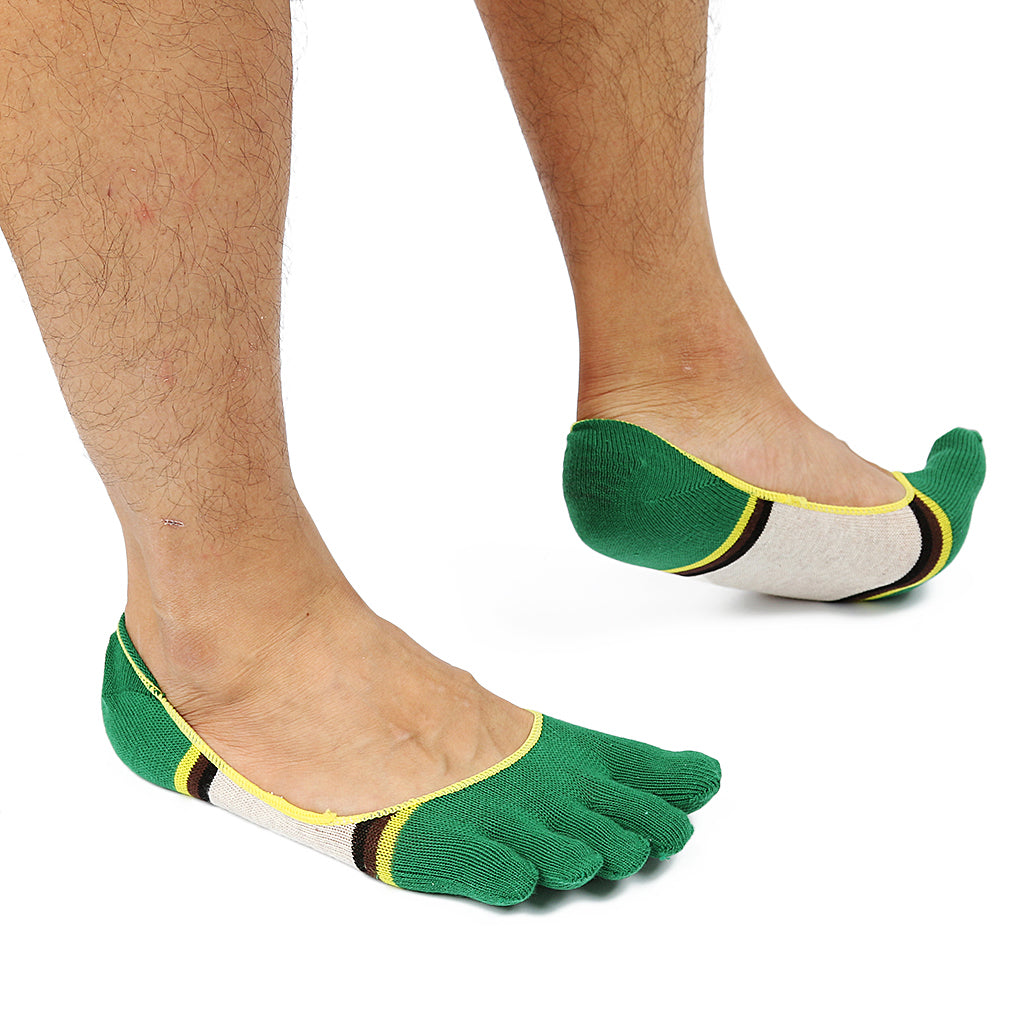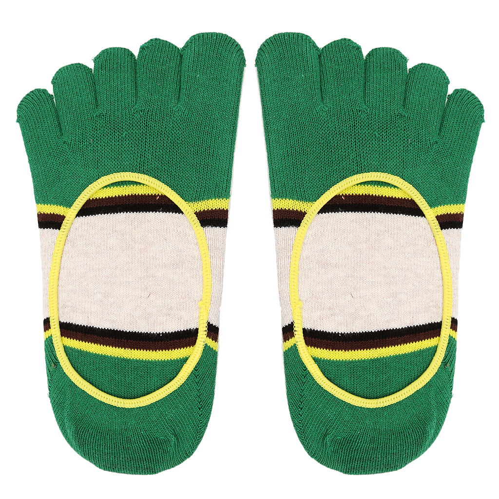 1 Pair Cotton Stripes Five Finger Toe Sock Invisible Shoe Liner Socks Green