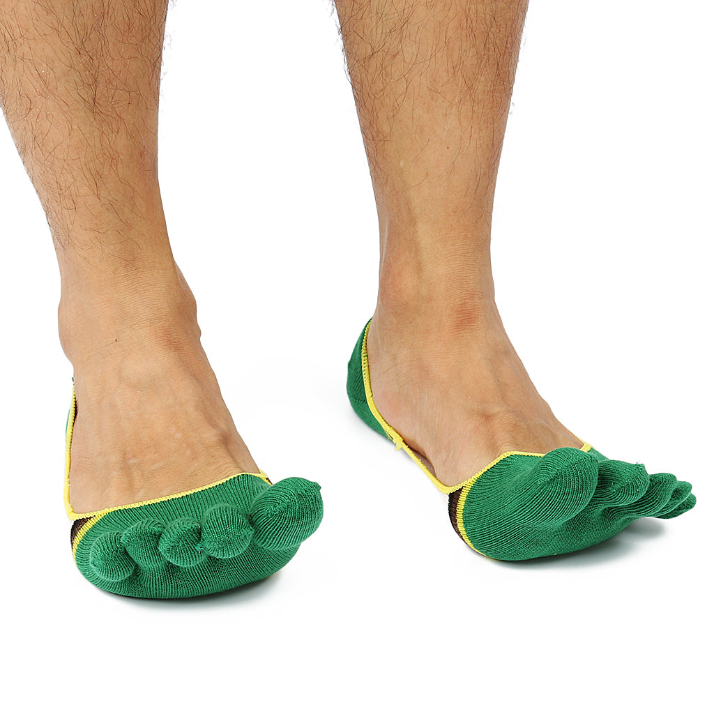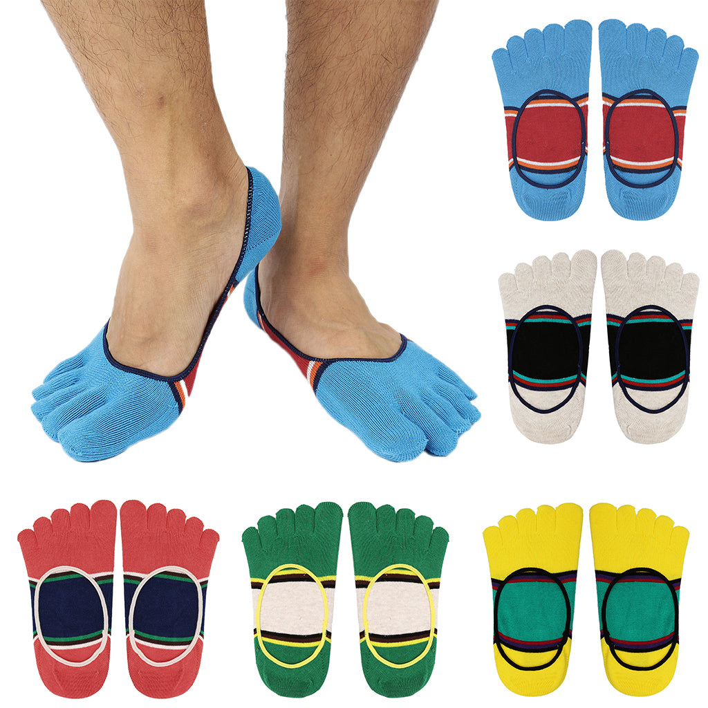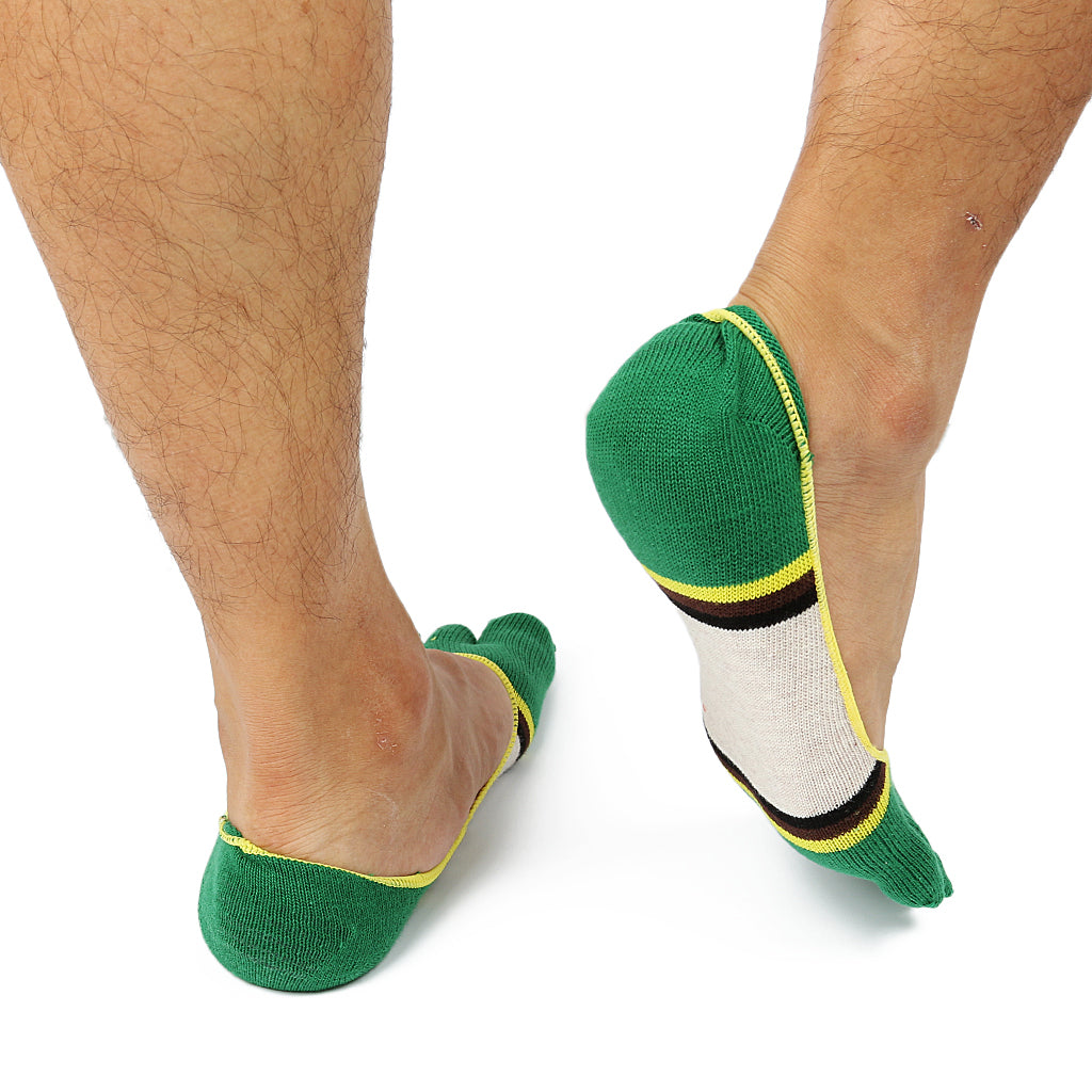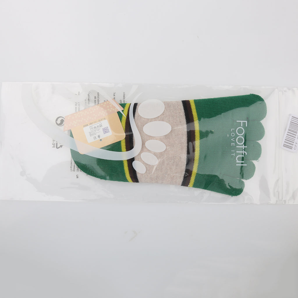 1 Pair Cotton Stripes Five Finger Toe Sock Invisible Shoe Liner Socks Green