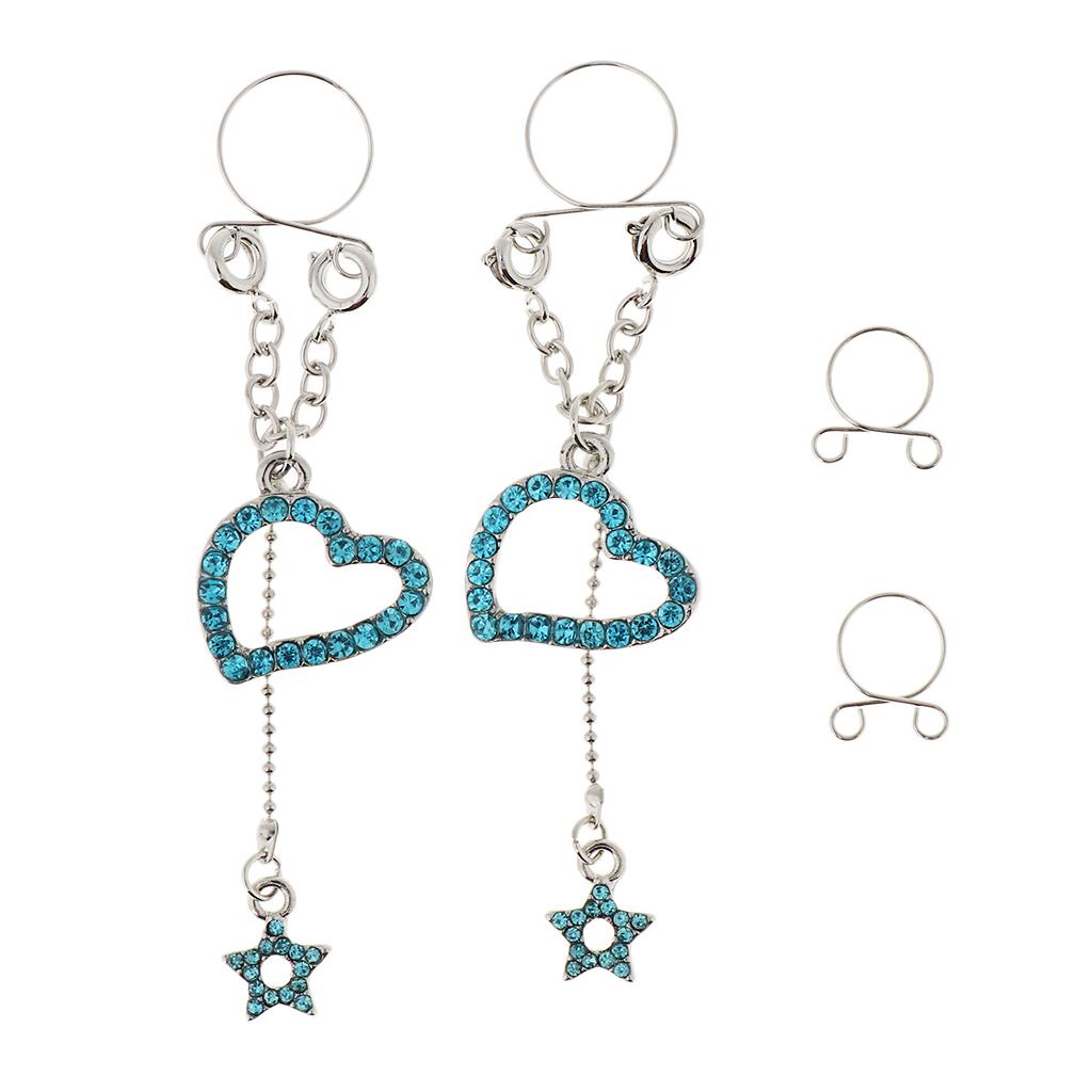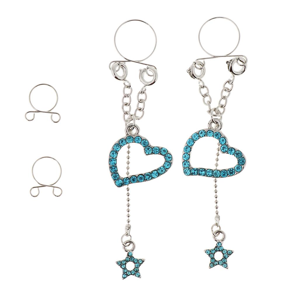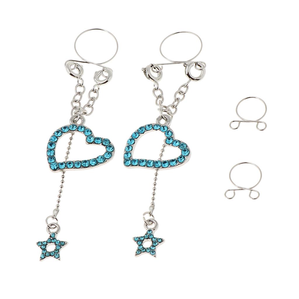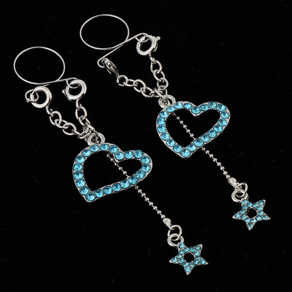 1 Pair Dangle Non Piercing Clip On Nipple Ring Body Jewelry Blue Heart