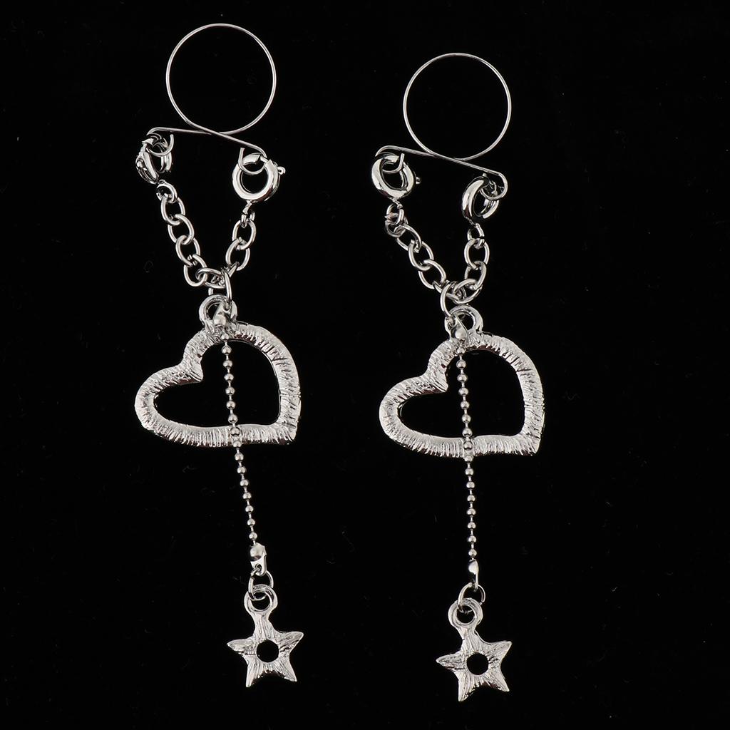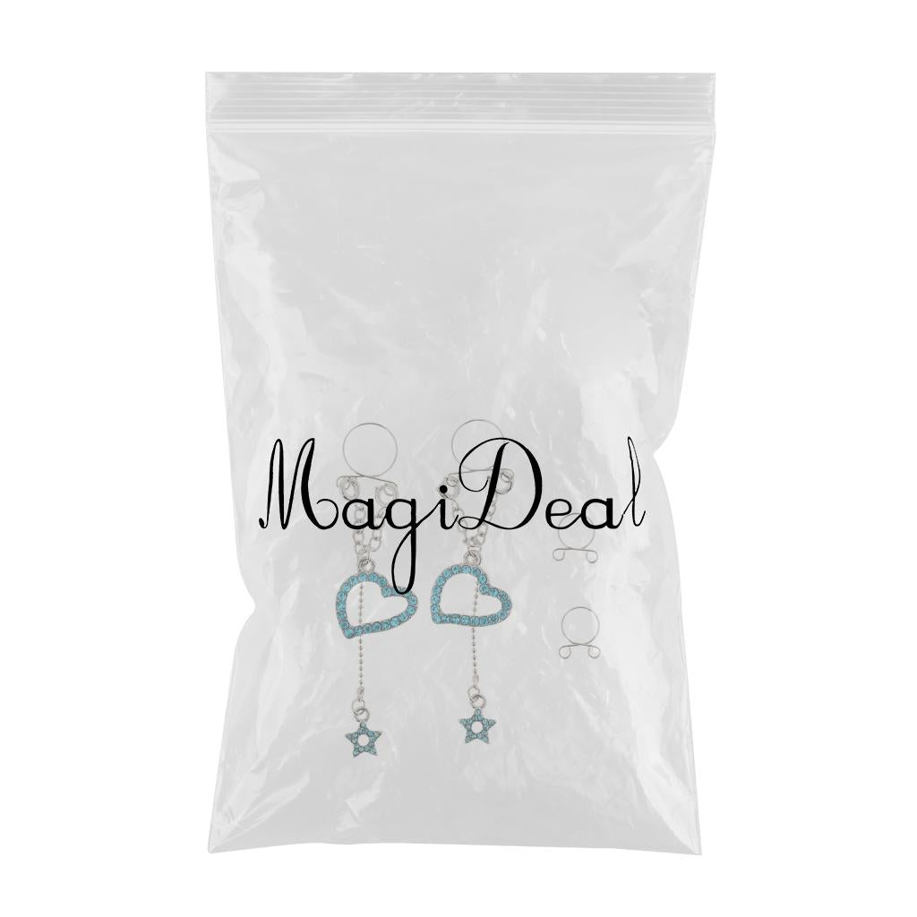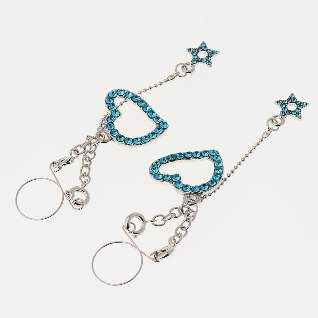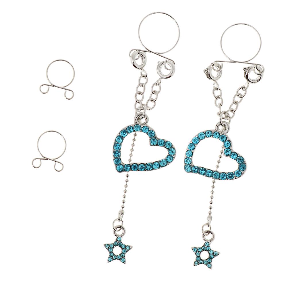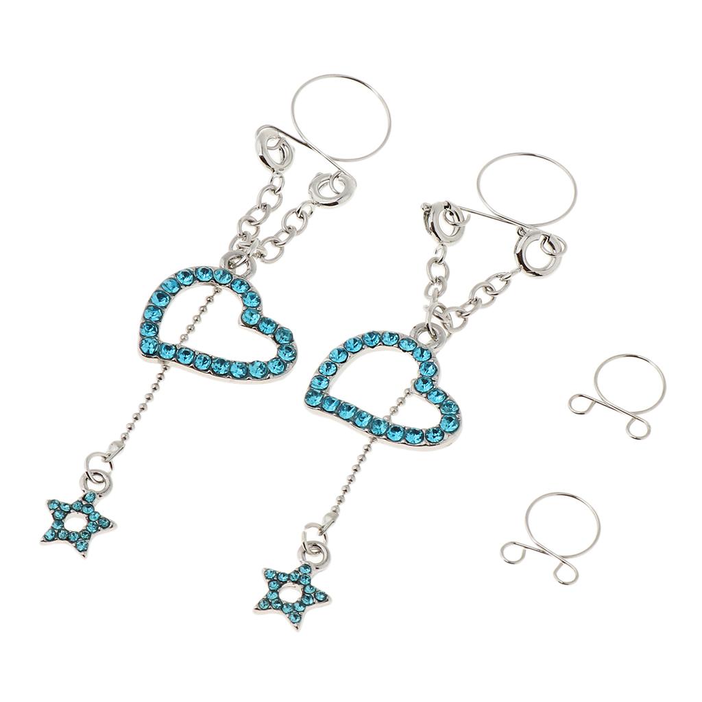 1 Pair Dangle Non Piercing Clip On Nipple Ring Body Jewelry Blue Heart