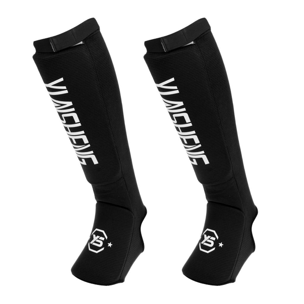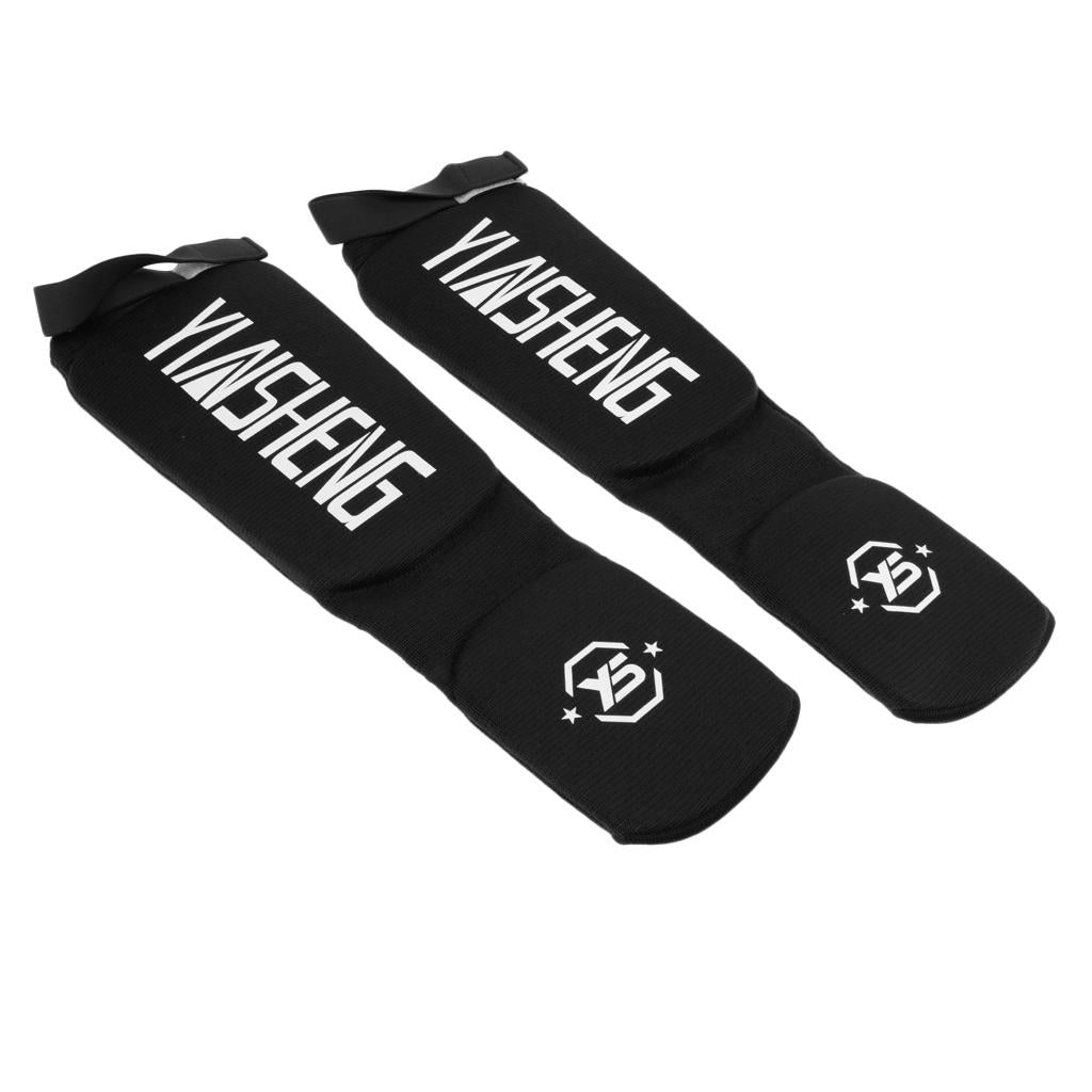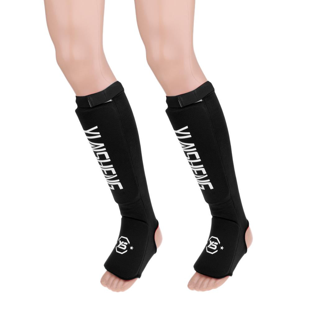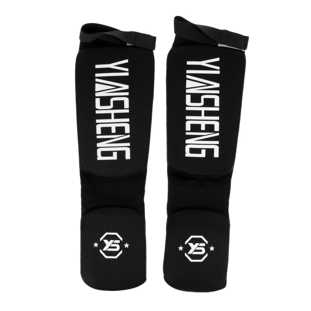 1 Pair Elastic Shin & Instep Padded Guards Martial Arts Shin Guards Black-M