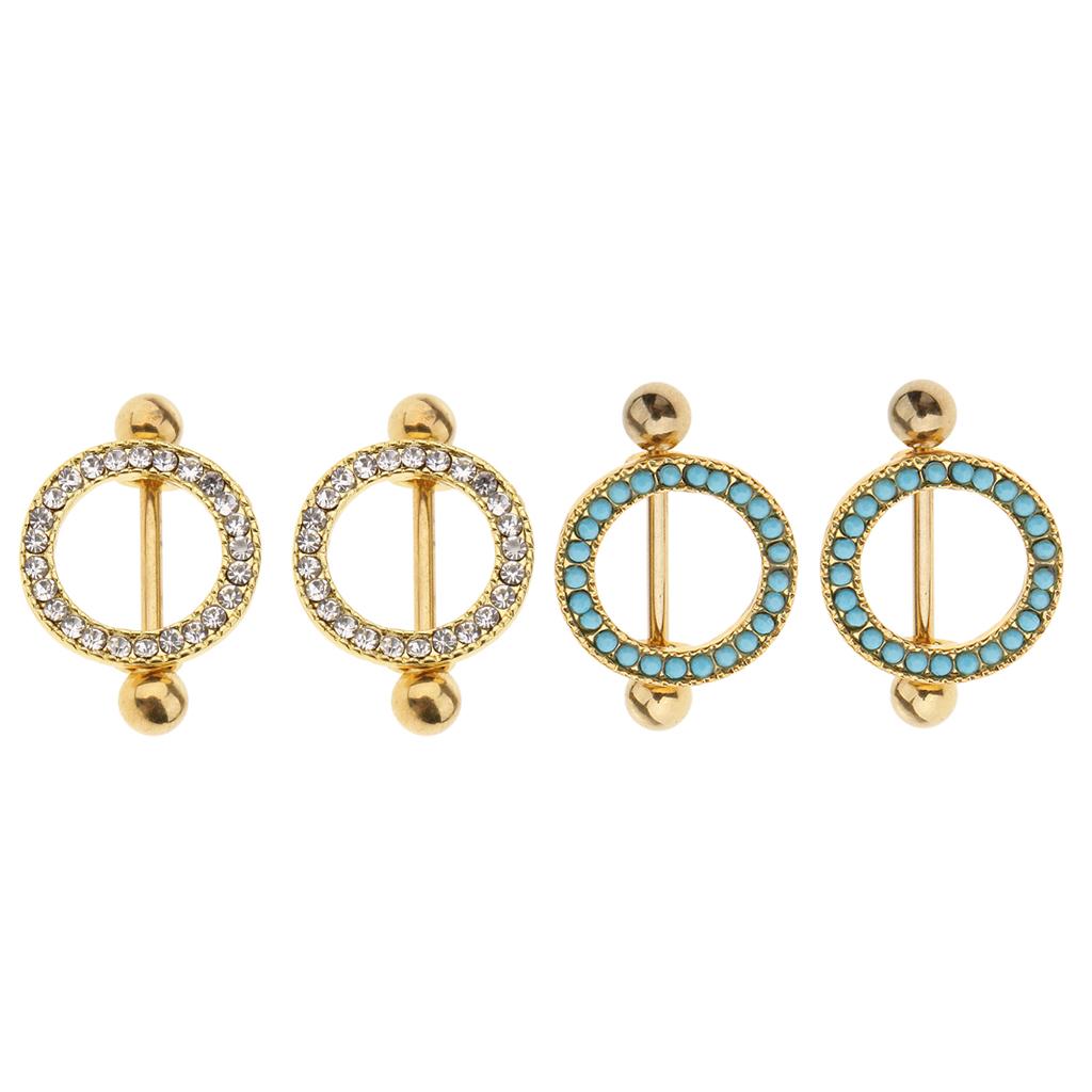 1 Pair Flower Circle Nipple Ring Shield Bohemian NippleRings Rhinestone