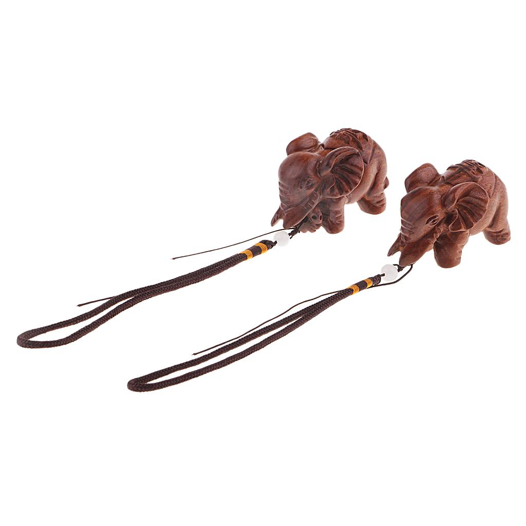 1 Pair Wooden Lucky Wild Elephant Figurines Model Mascot Fortune Lucky Gifts.