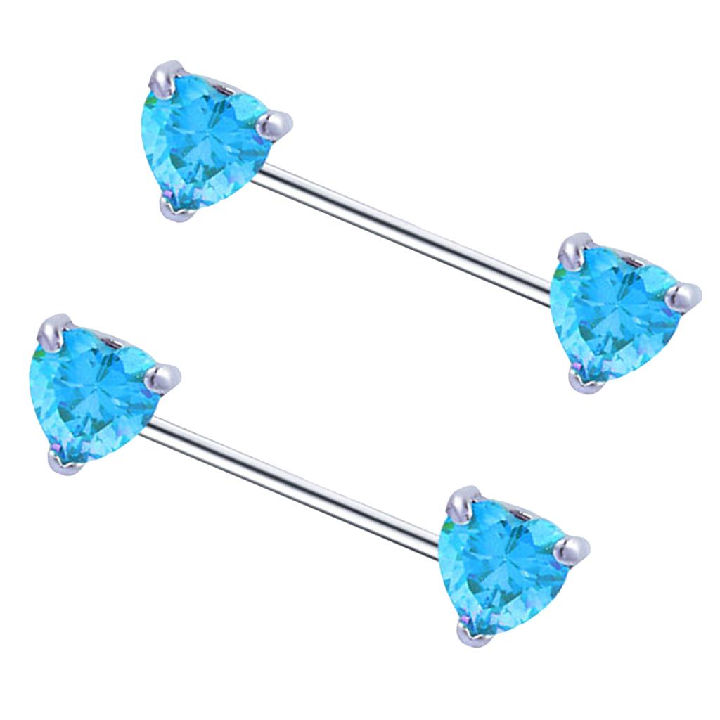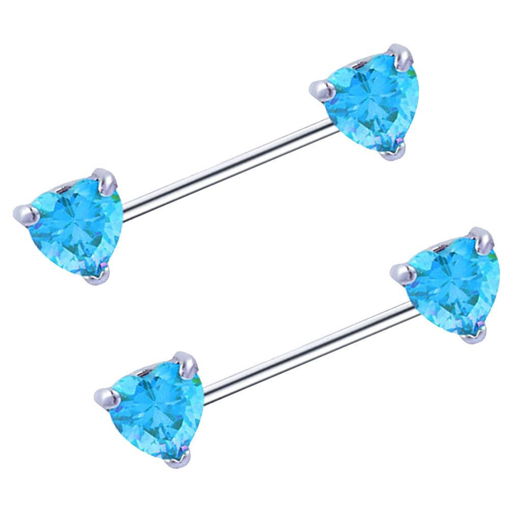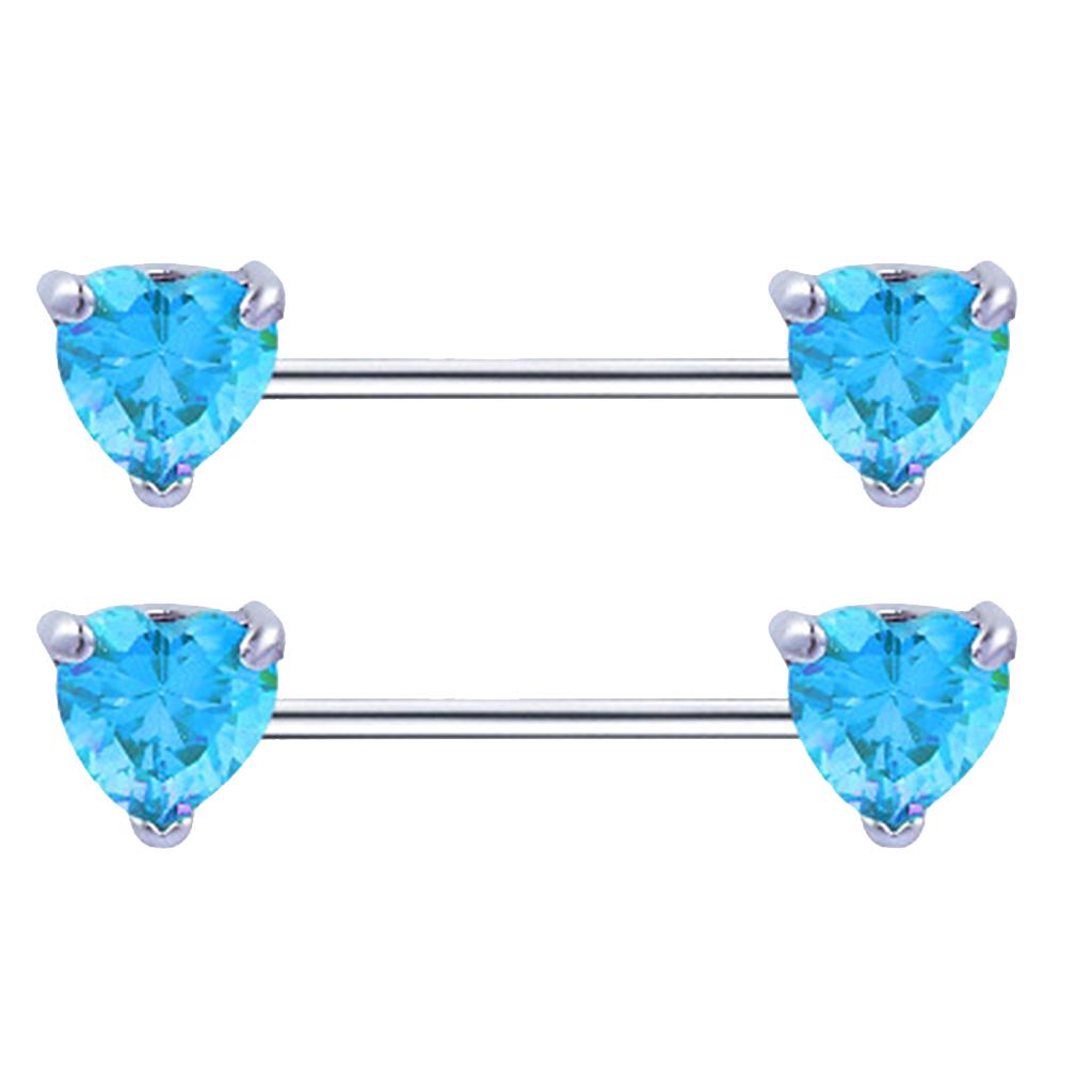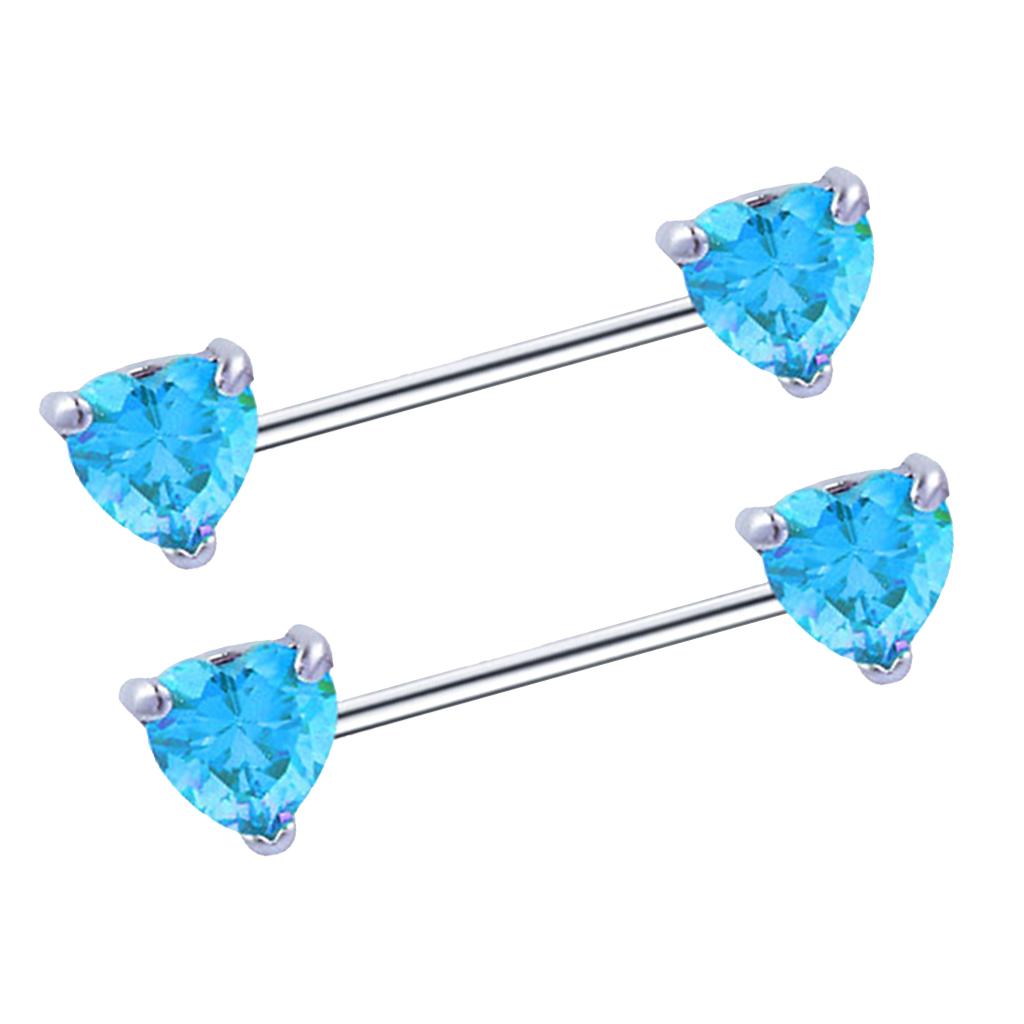 1 Pair Heart Crystal Shield Barbell Nipplering Stainless Steel 14g Blue