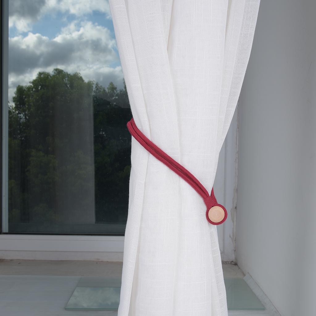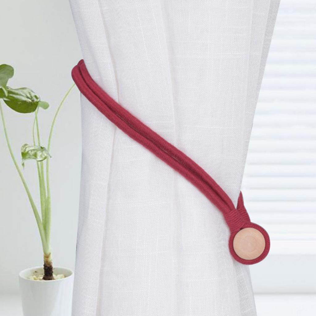 1 Pair Magnetic Round Curtain Tiebacks Rope Strap Drape Holdback Wine Red