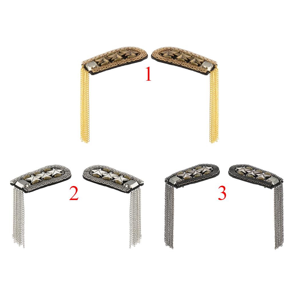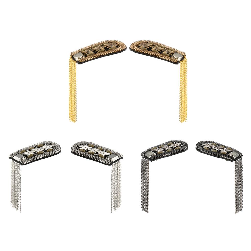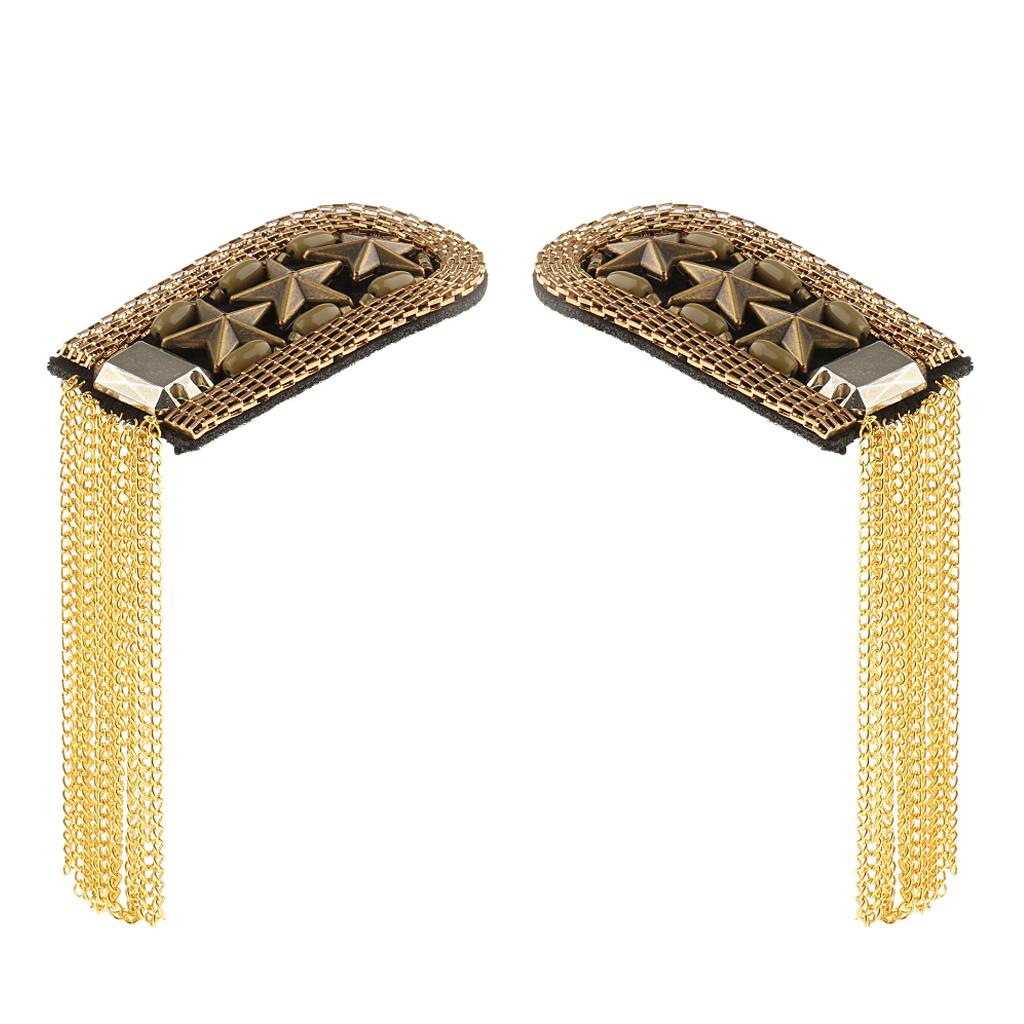 1 Pair Men Punk Rock Star Tassel Shoulder Epaulette Costume Accessory Gold