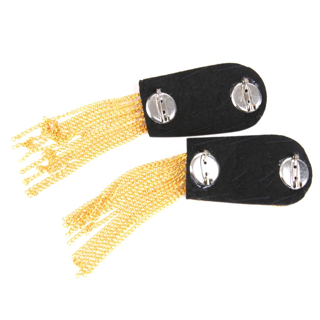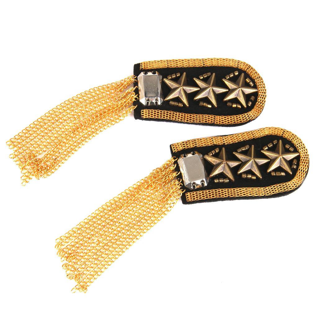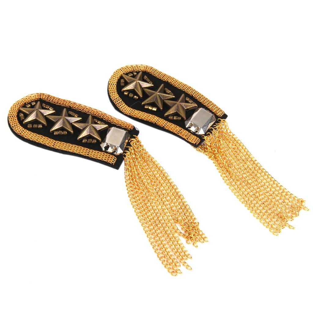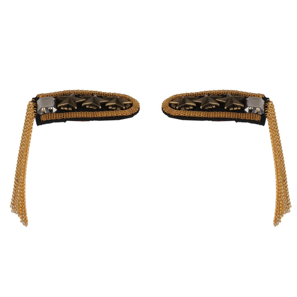 1 Pair Military Star Golden Tassel Link Chain Epaulet Shoulder Boards Badge