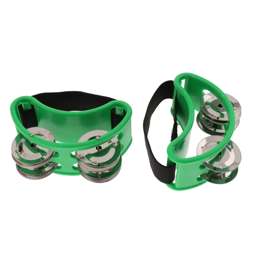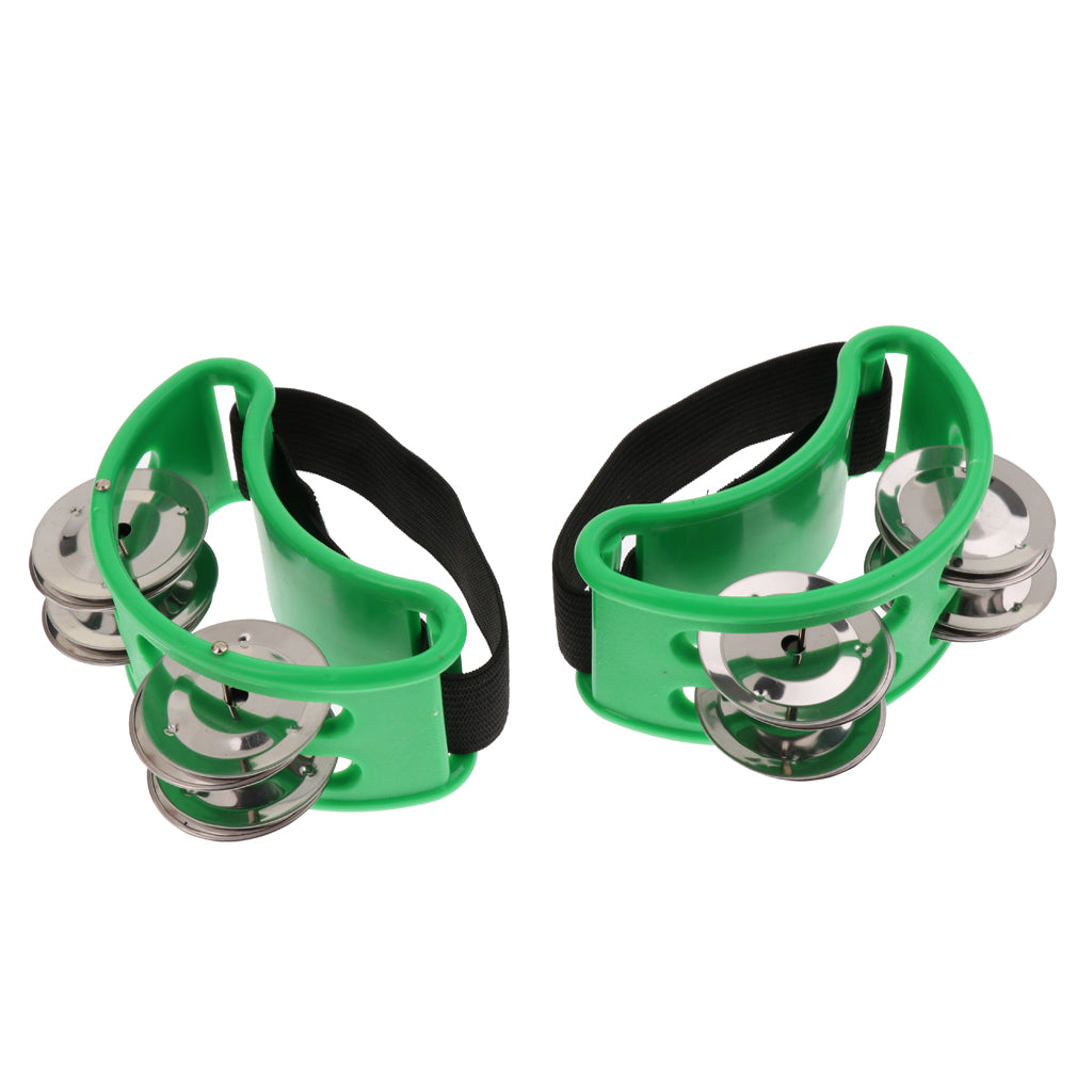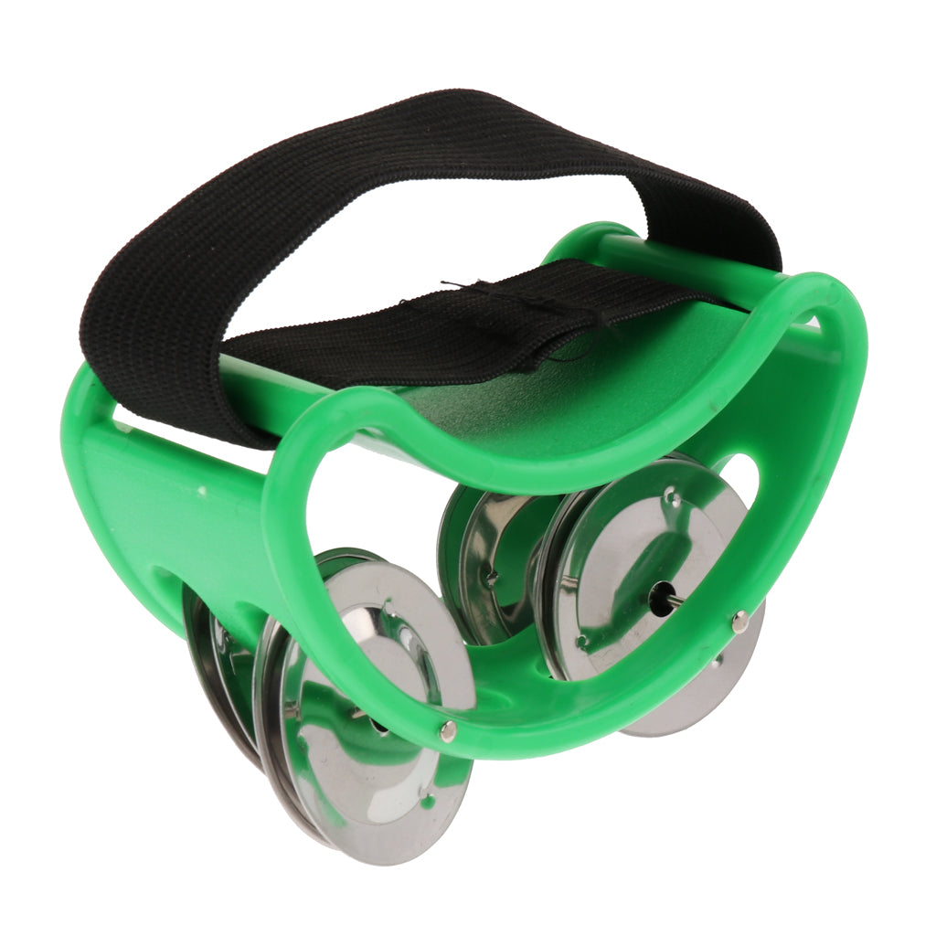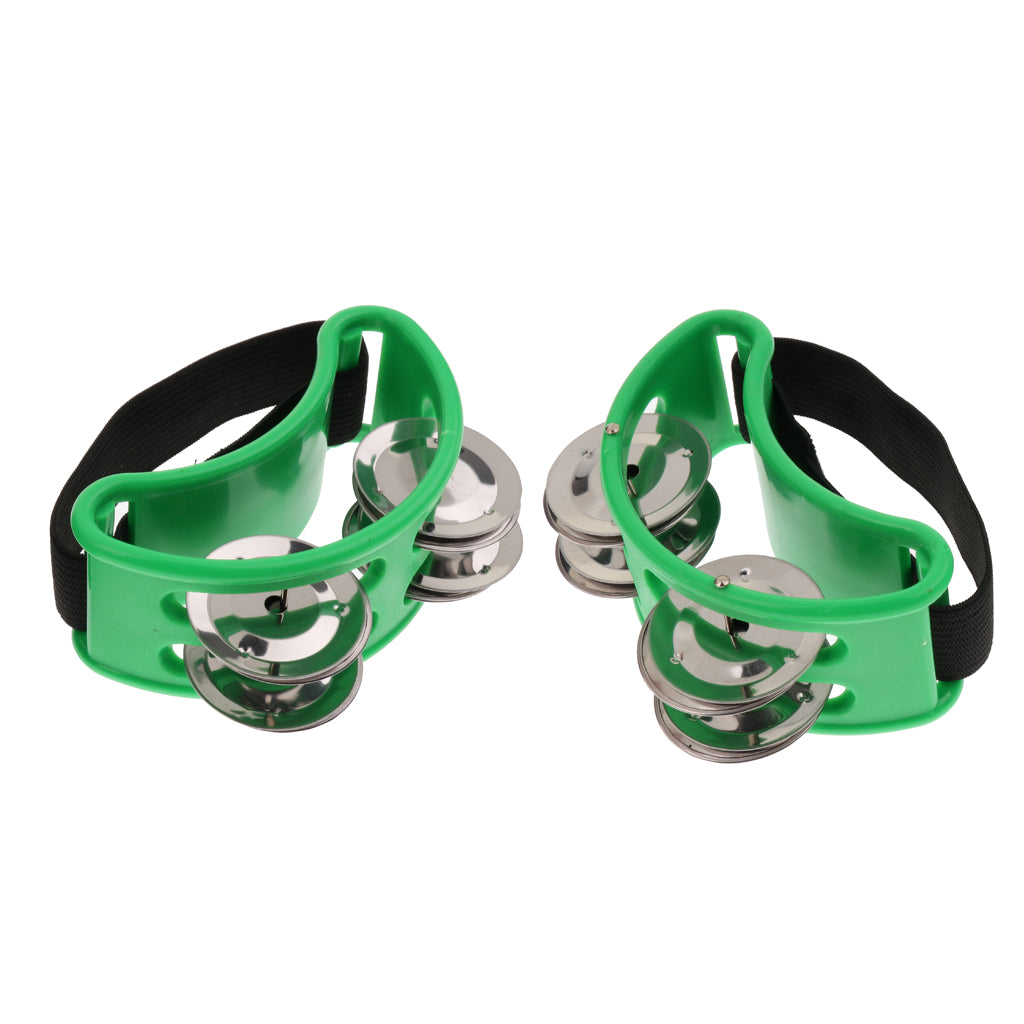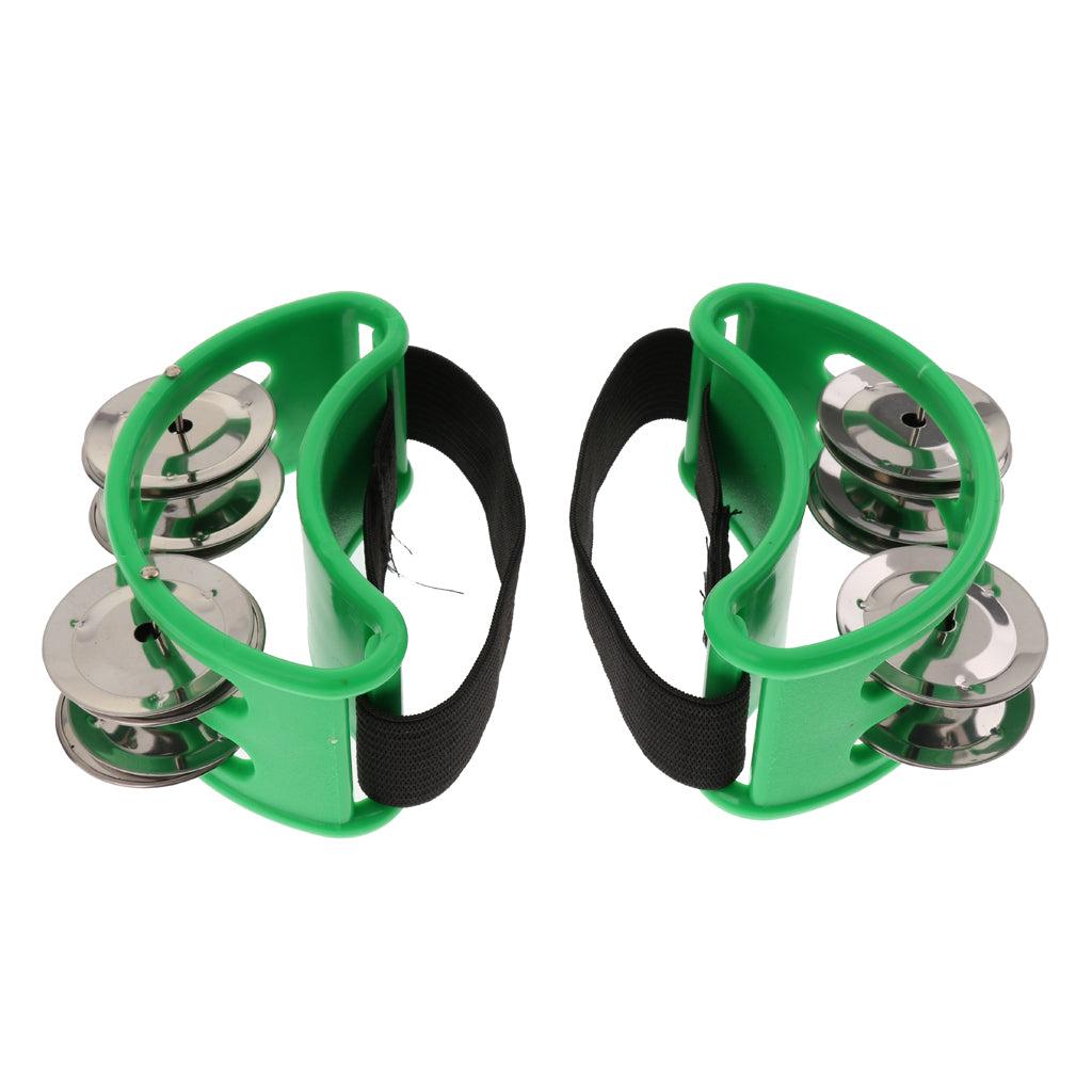 1 Pair Mini Foot Tambourine Percussion with Double Row Steel Jingles Green