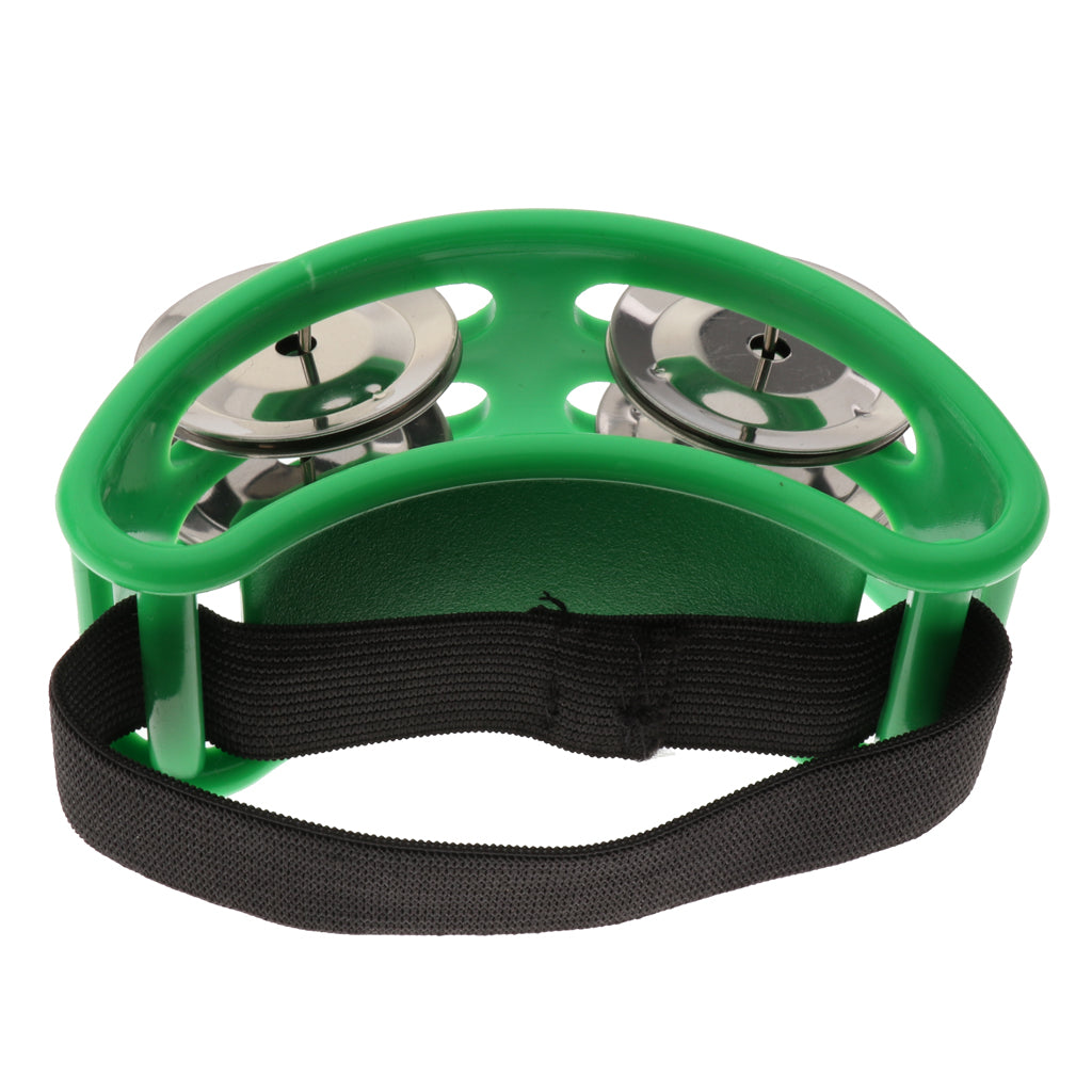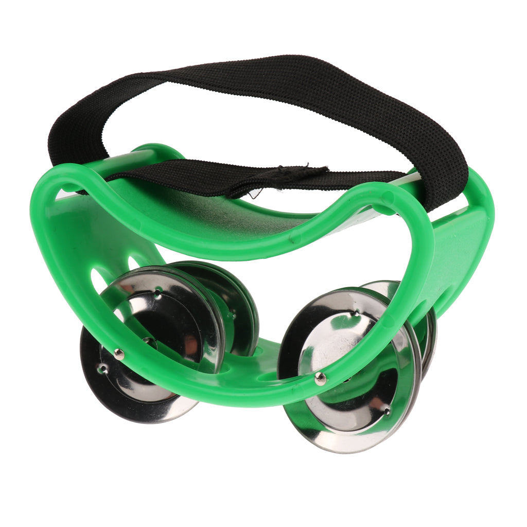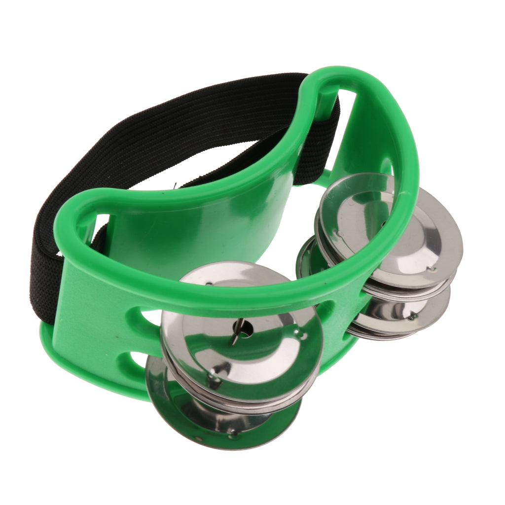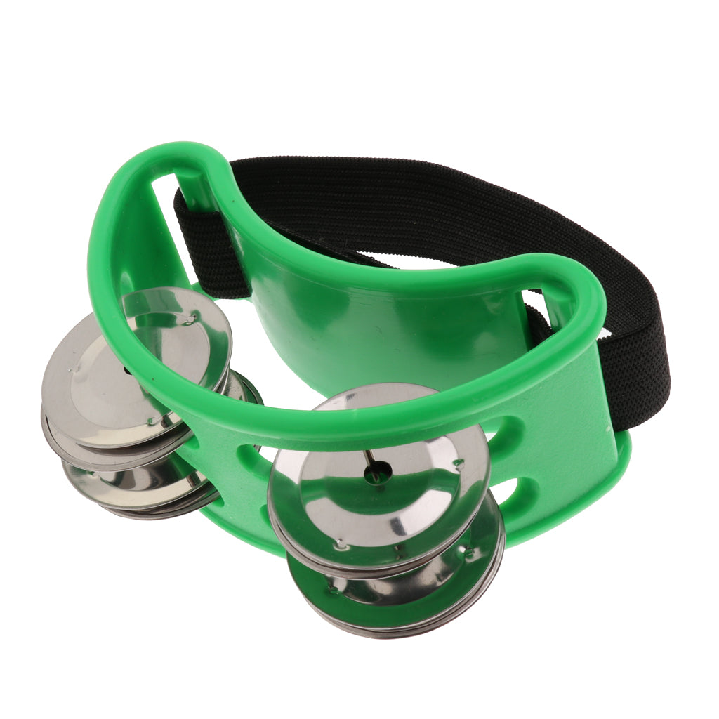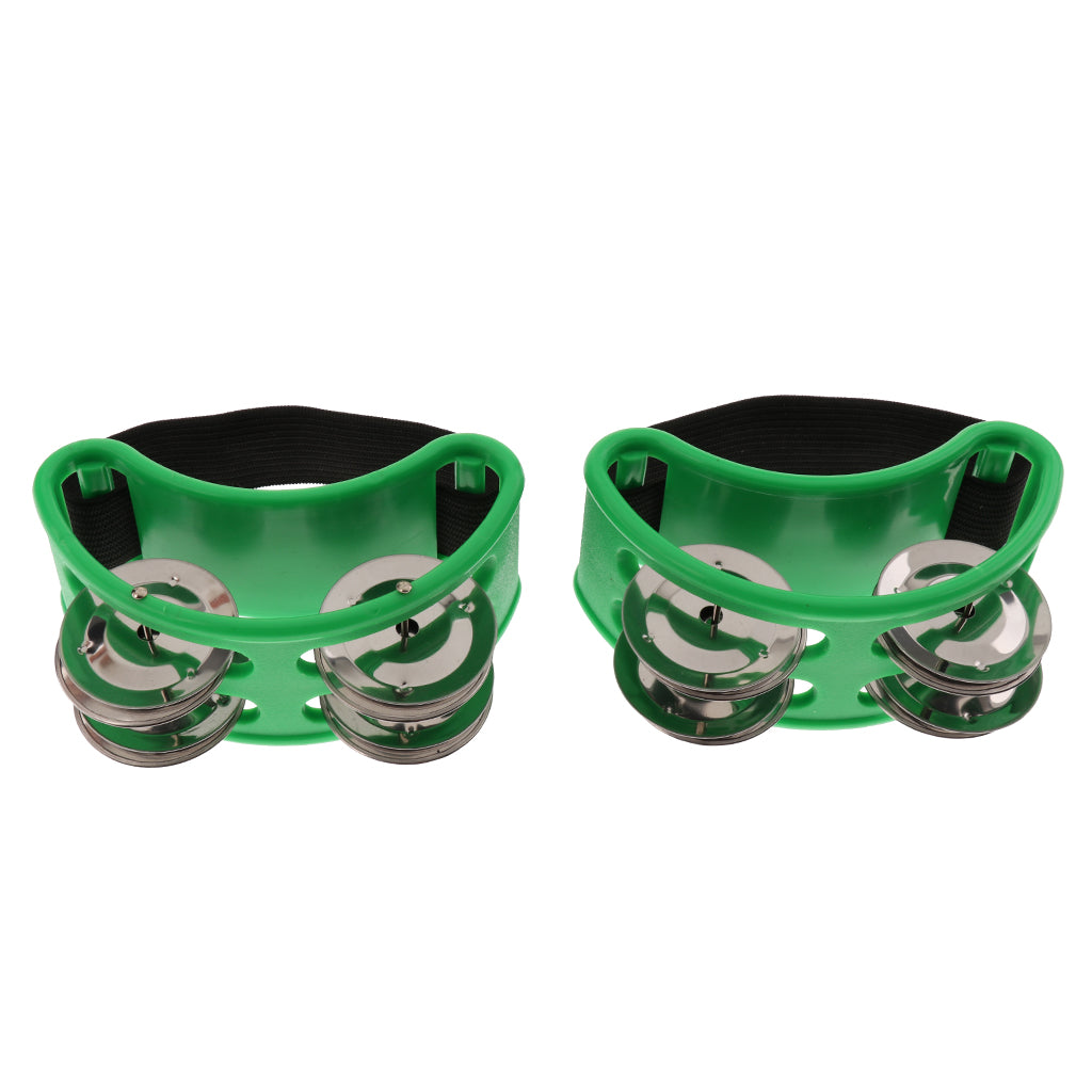 1 Pair Mini Foot Tambourine Percussion with Double Row Steel Jingles Green