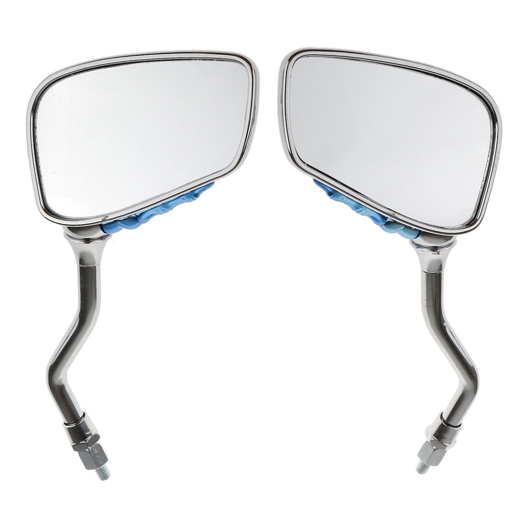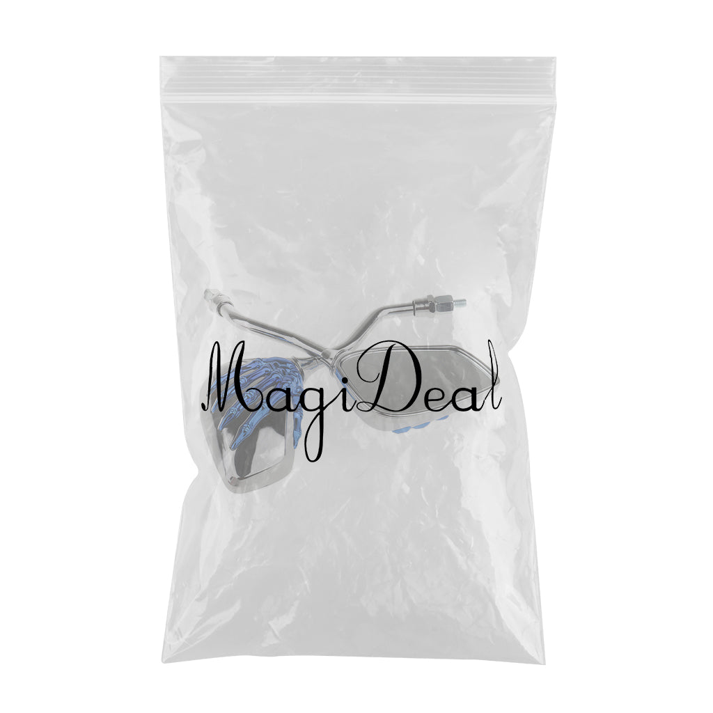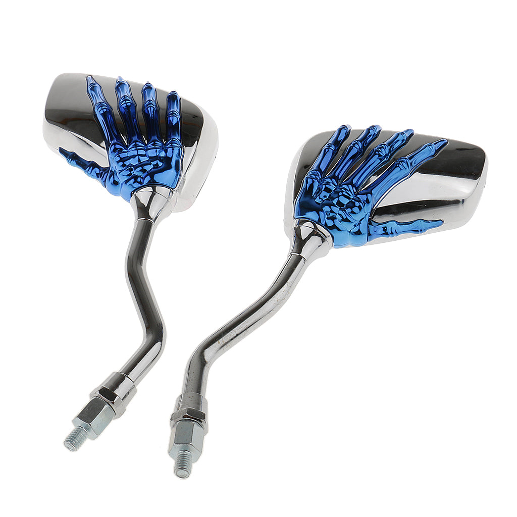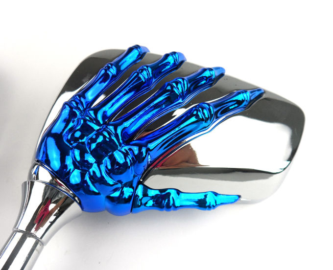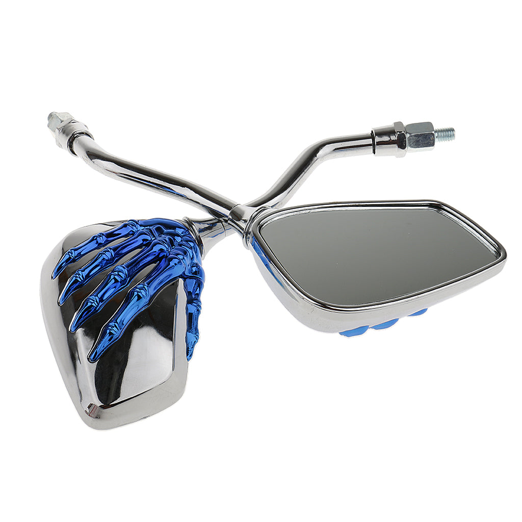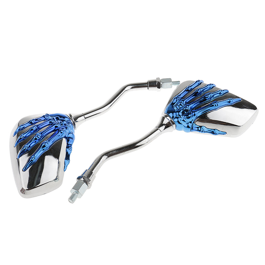 1 Pair Motorcycle Motorbike Skull Hand Rear View Glass Mirrors - Blue