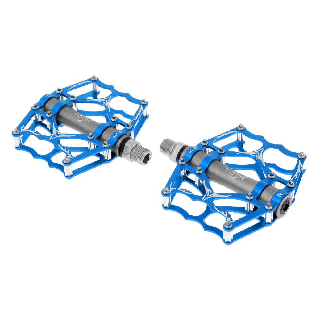 1 Pair Mountain Bike Pedals Bicycle Bike Large Platform Alloy Pedal Blue