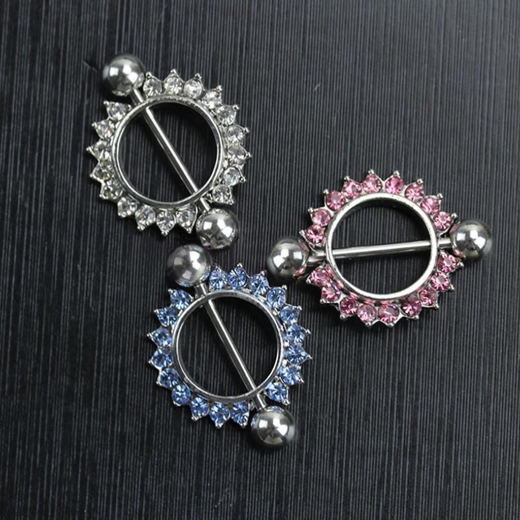 Gauge Size: 16 Gauge =1.2 mm, sun flower circle shield straight bar barbell shield nipple rings;