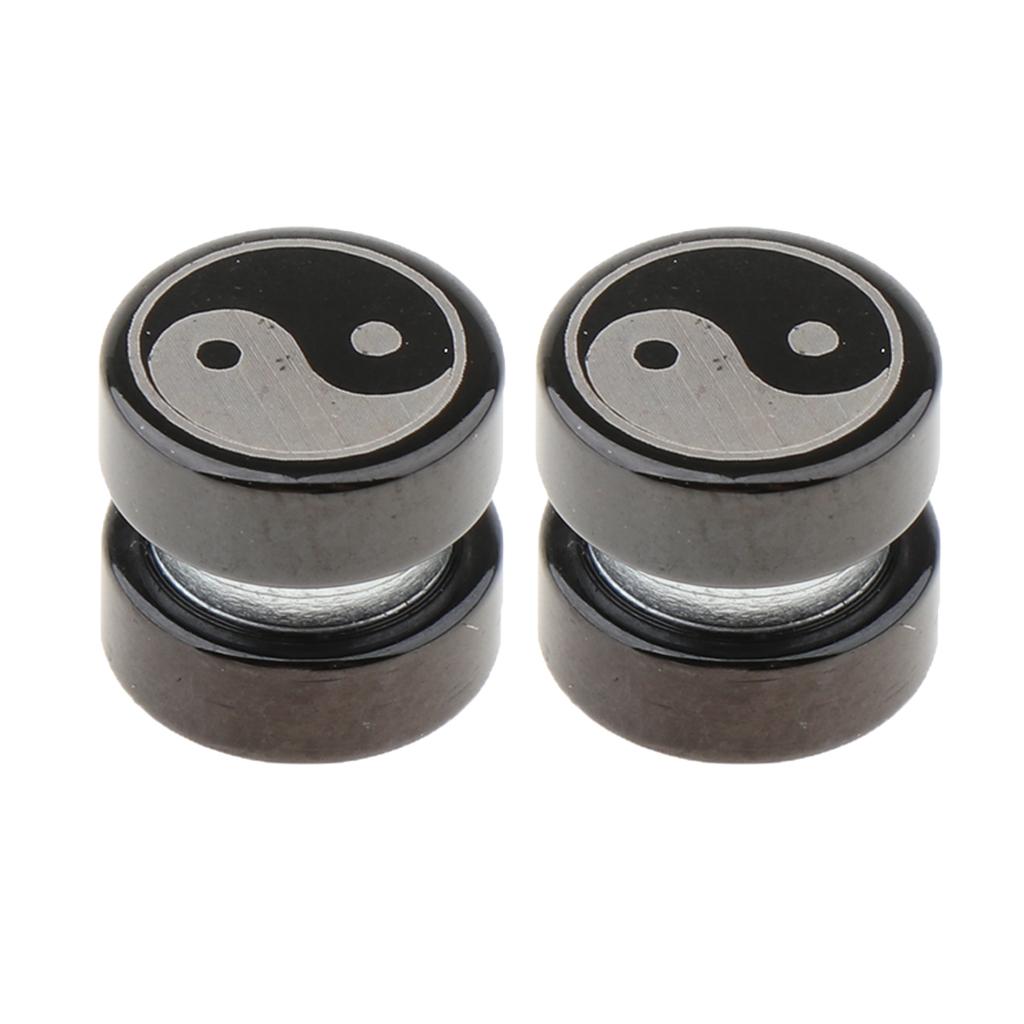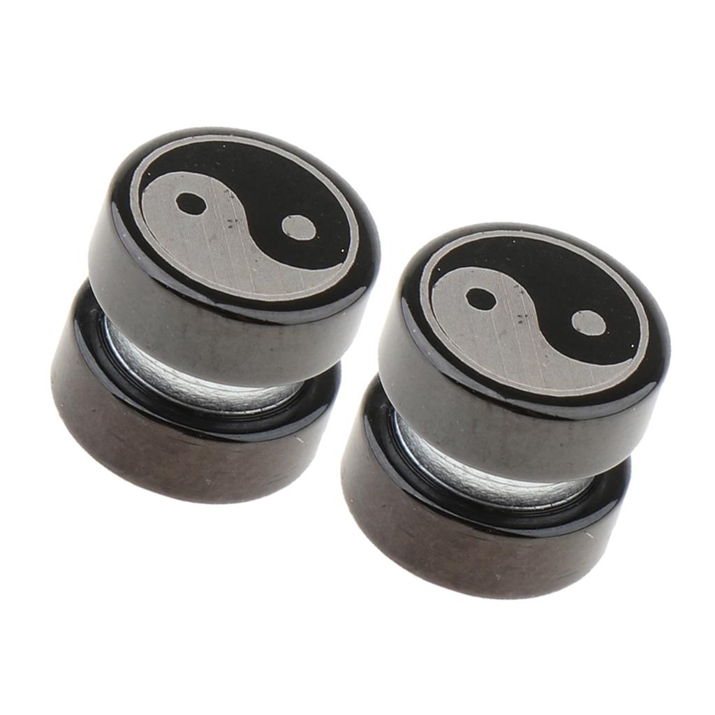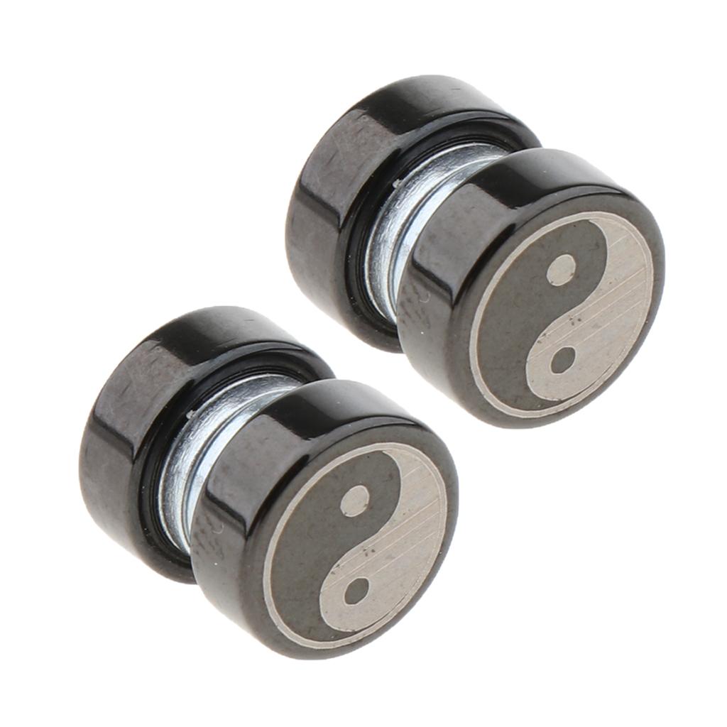 1 Pair Non Piercing Clip on Magnetic Ear Stud Men Fake Earrings Taiji