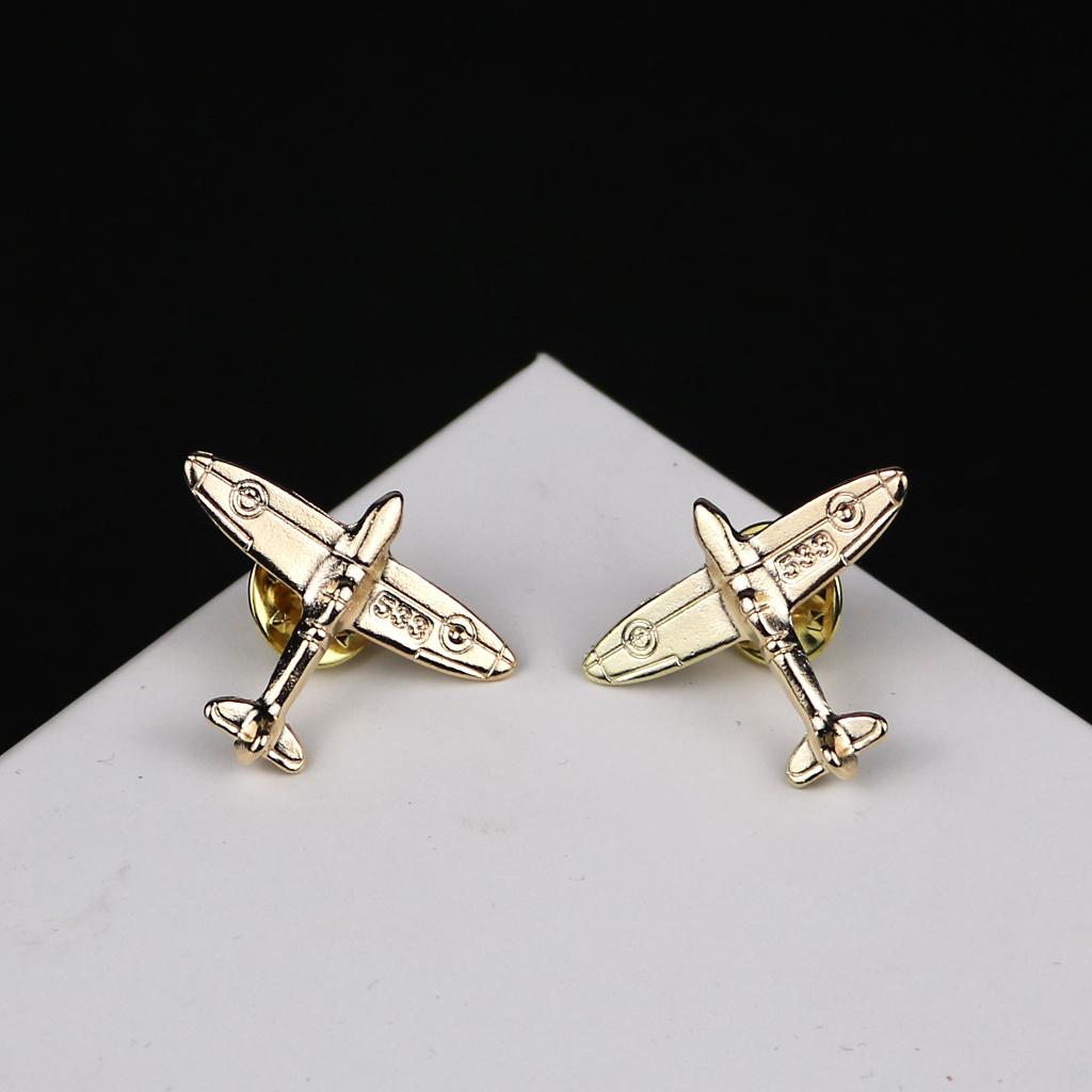 1 Pair of Delicate Airplane Shirt Collar Tips Small Brooches Pin Gold