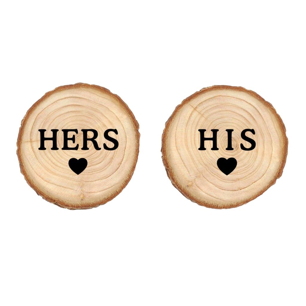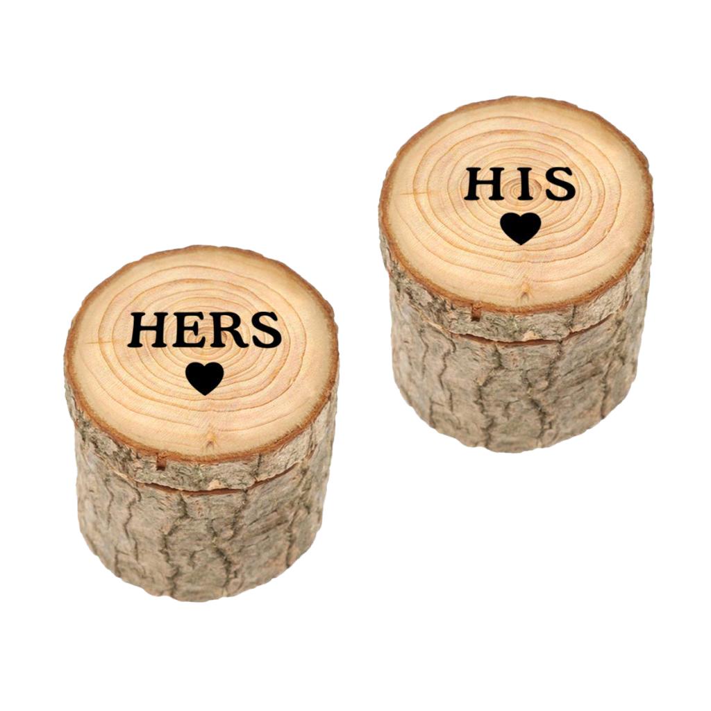1 Pair of Ring Wood Holder, separately engraved "HERS" and "HIS".
