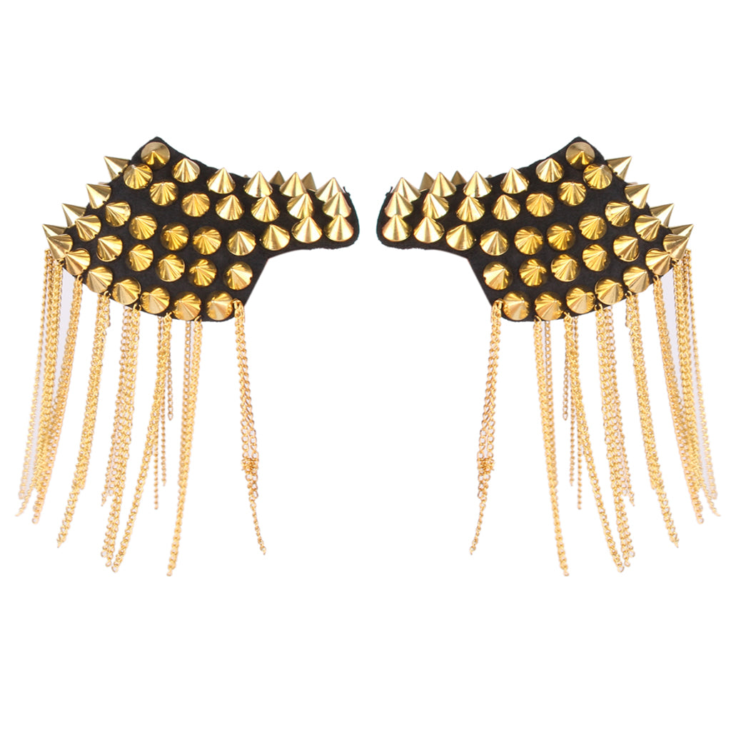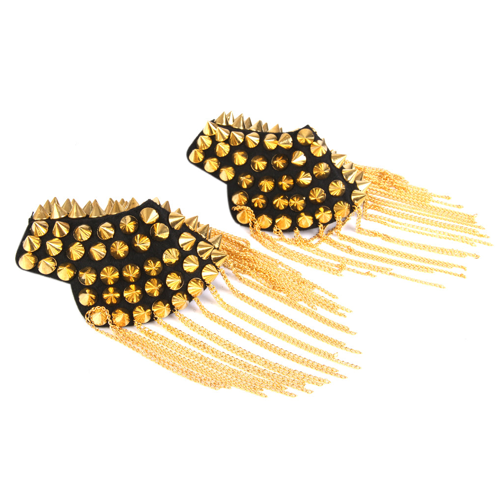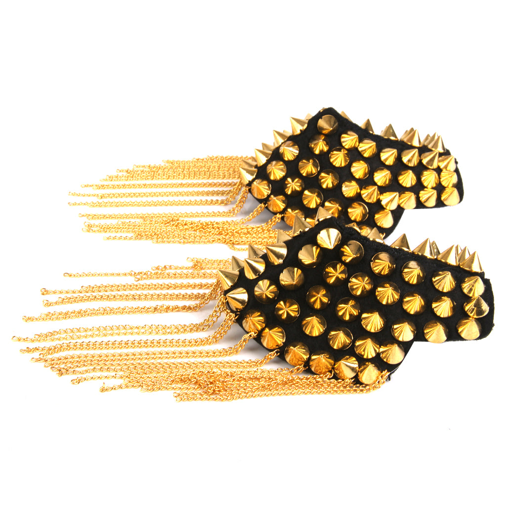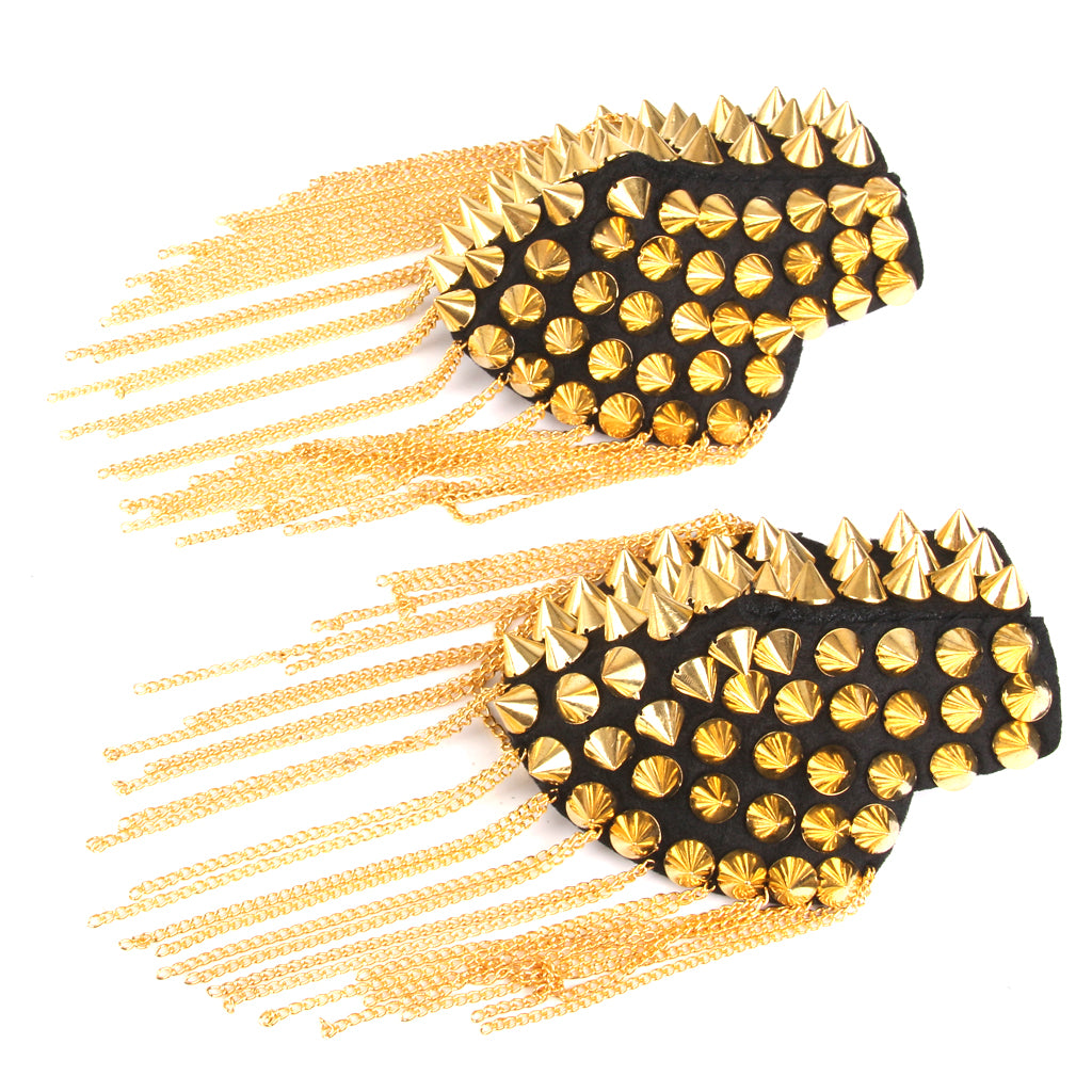 1 Pair Punk Rock Golden Rivet Tassel Chain Epaulet Shoulder Boards Badge