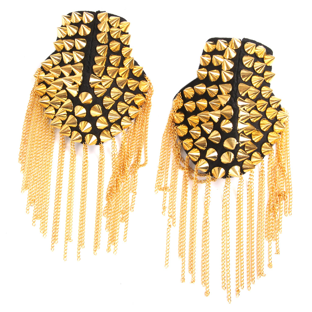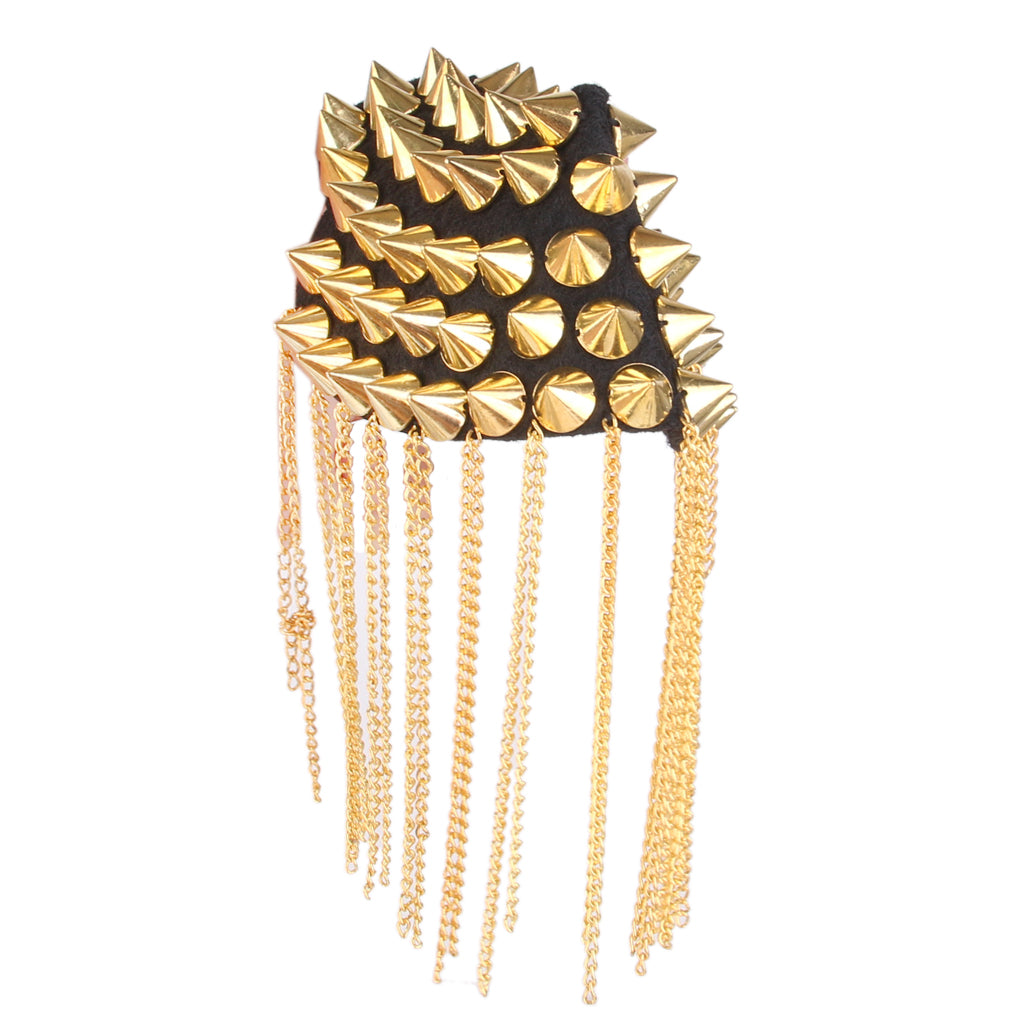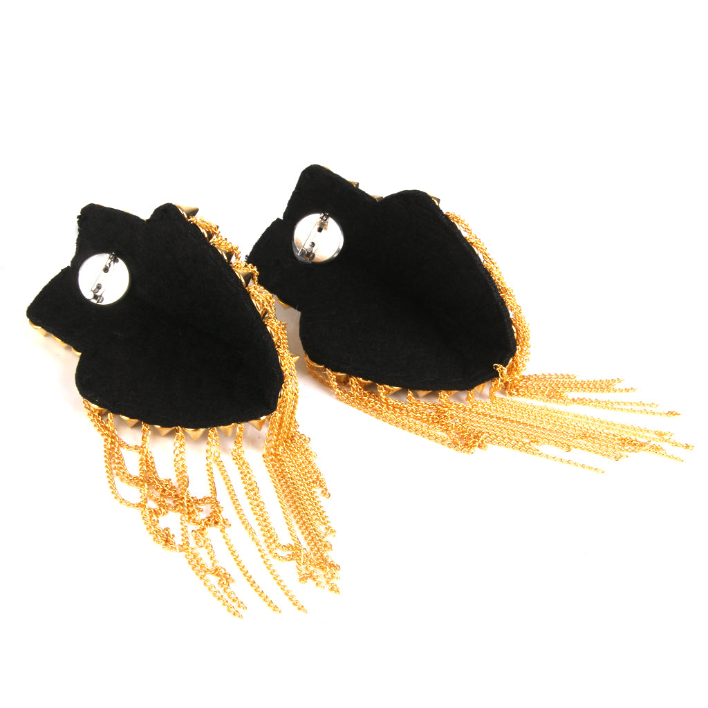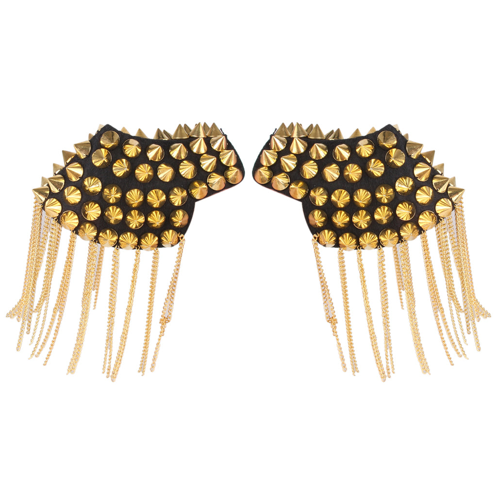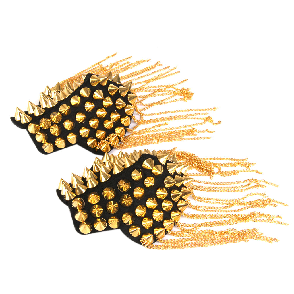 1 Pair Punk Rock Golden Rivet Tassel Chain Epaulet Shoulder Boards Badge