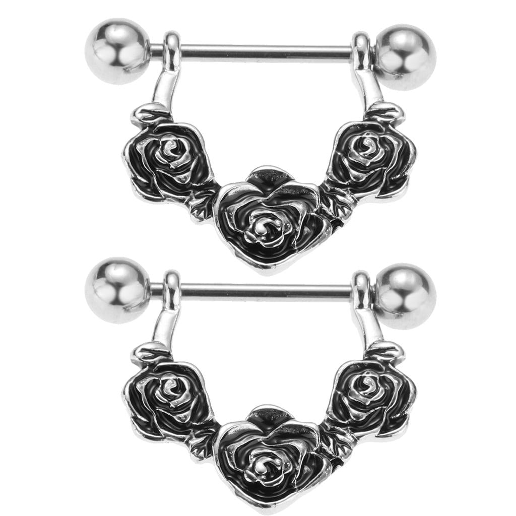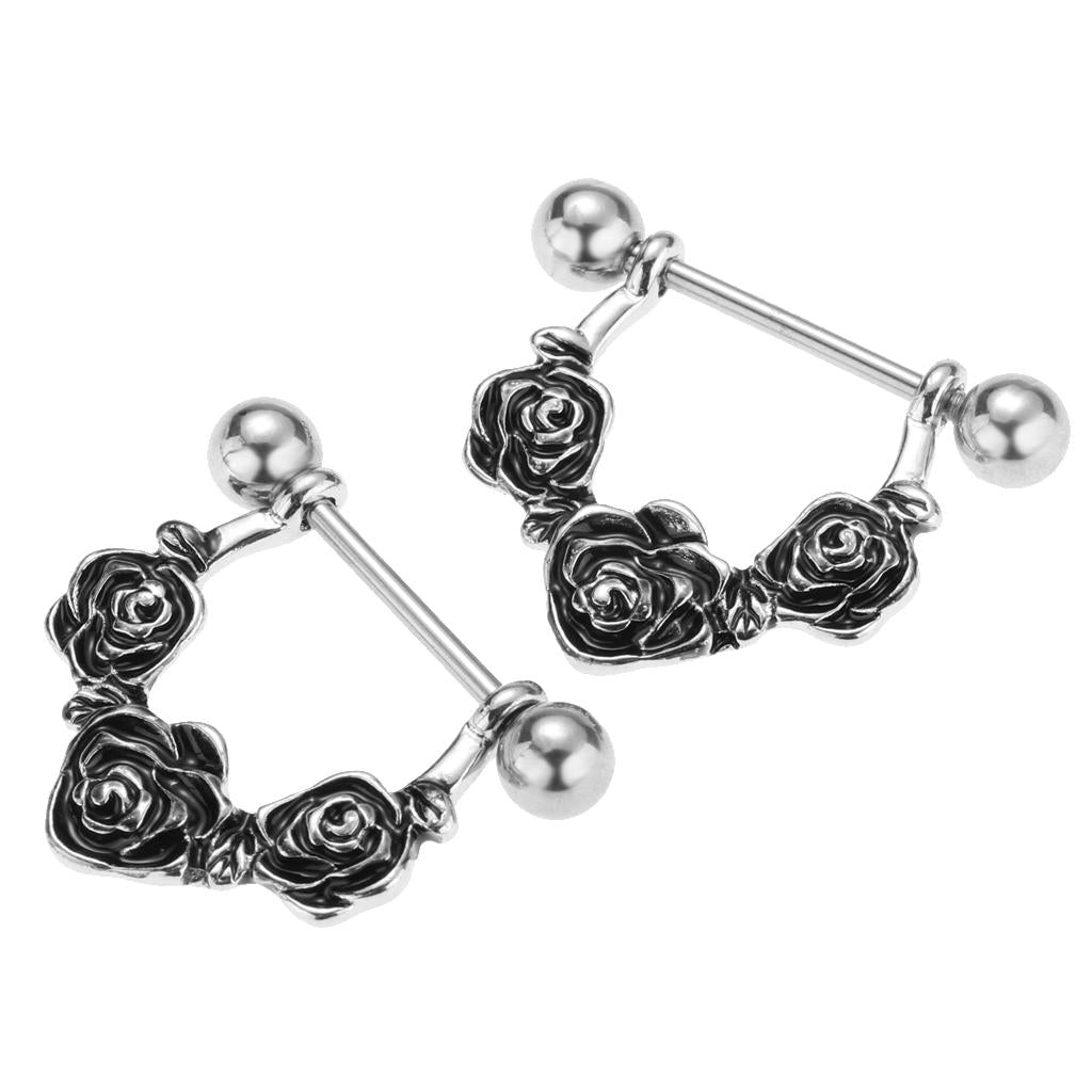 Gauge Size: 14Gauge =1.6 mm, vintage stainless steel rose flower straight bar barbell shield nipple rings;