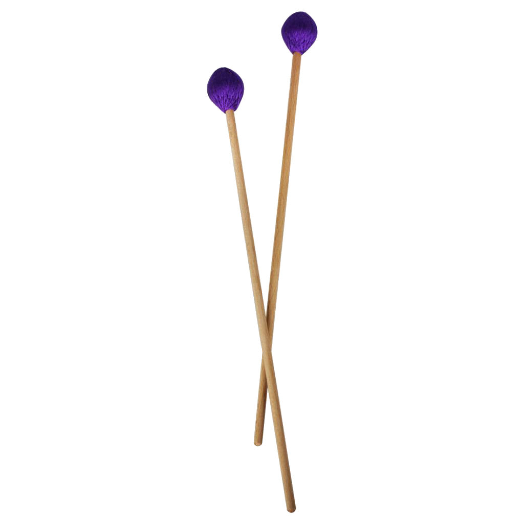 1 Pair Medium Marimba Mallets Xylophone Stick with Purple Yarn Head and Beech Wood Handle.