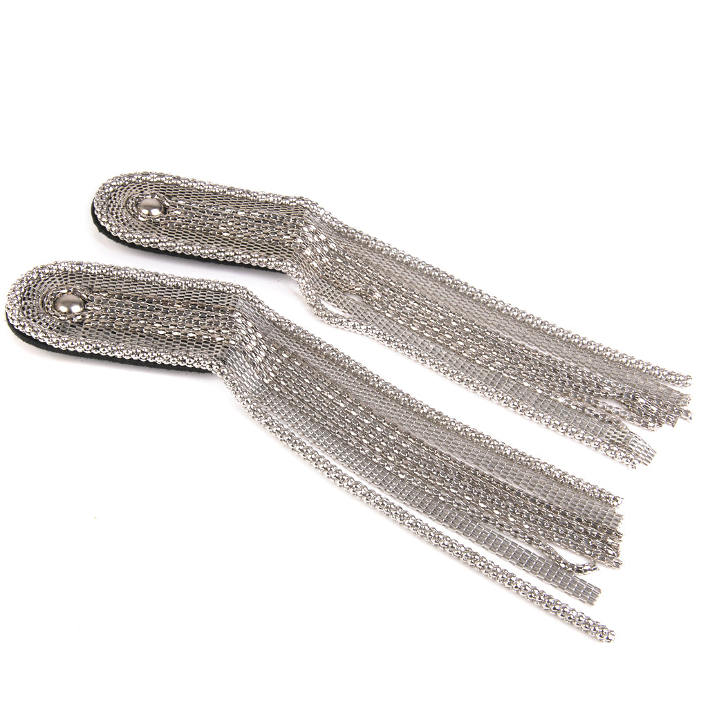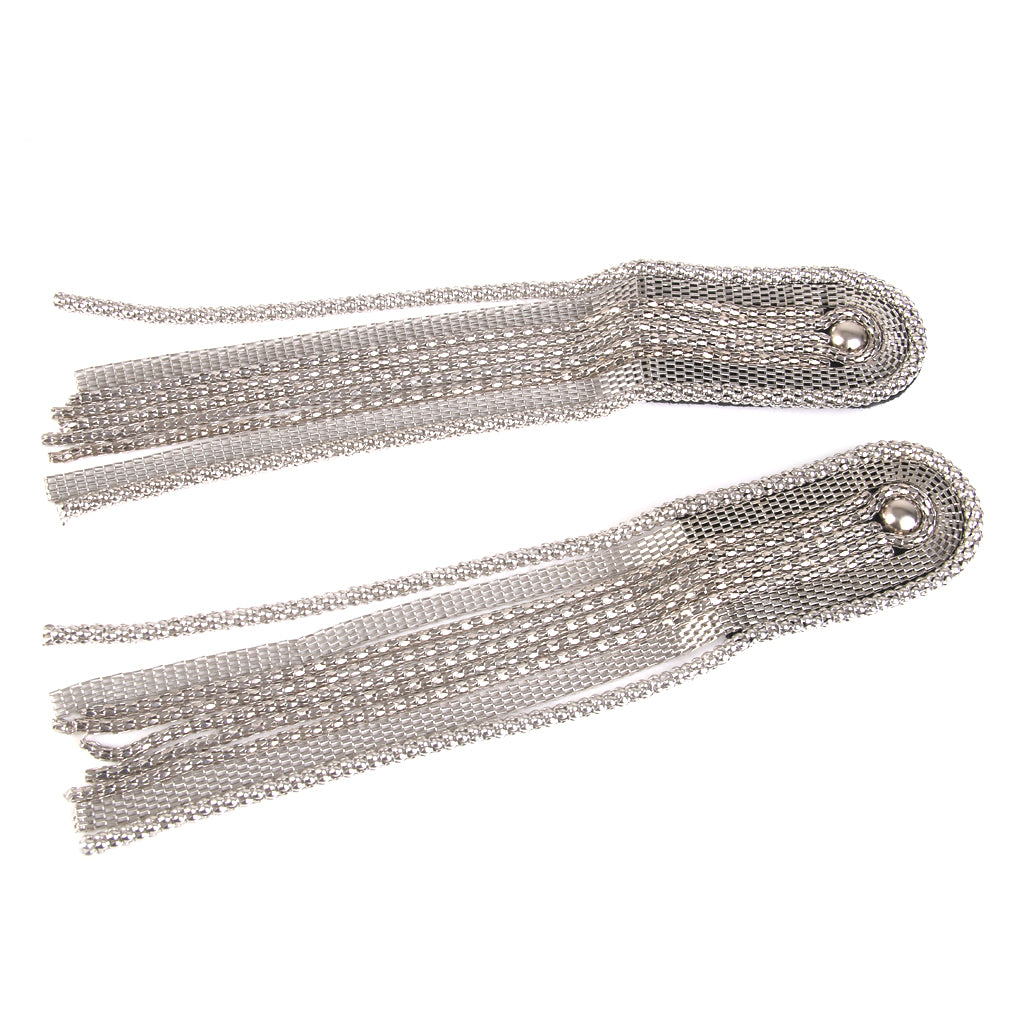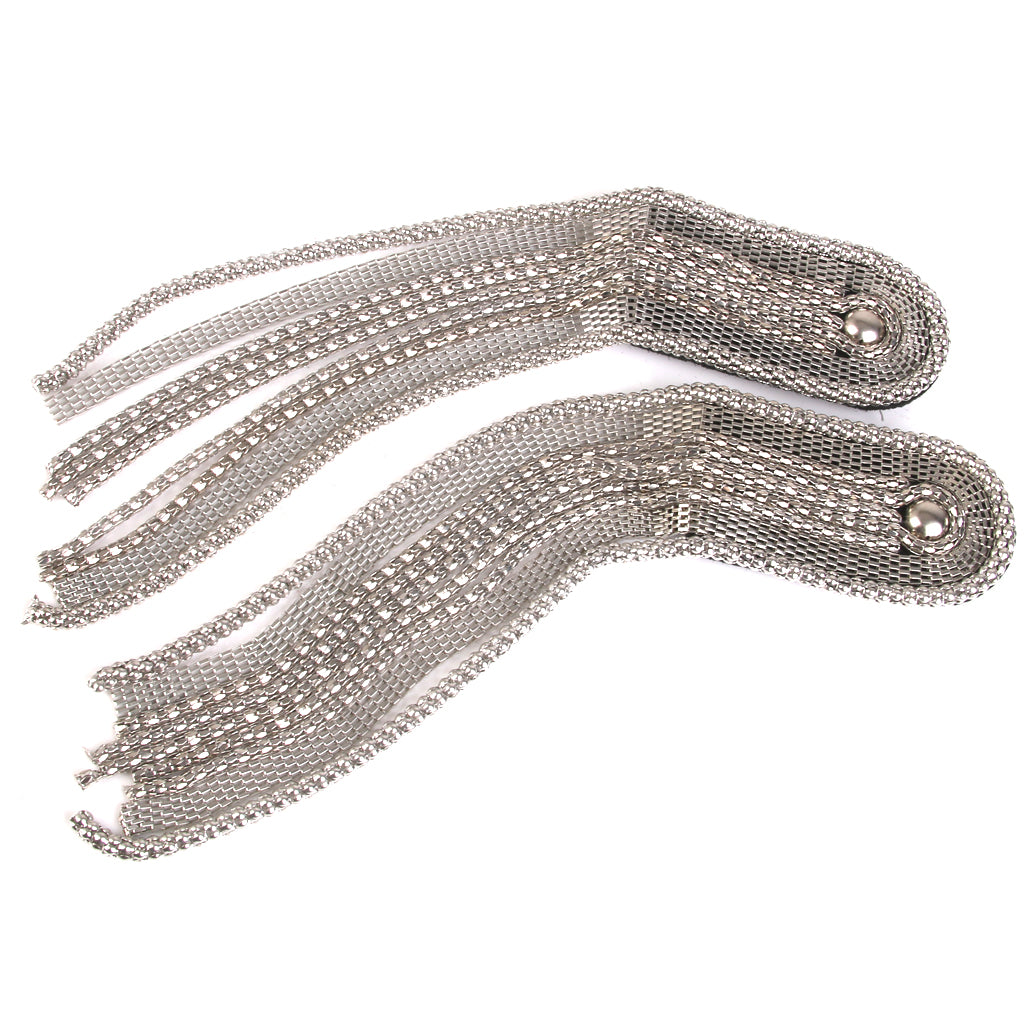 1 Pair Silver Long Tassel Link Chain Costume Epaulet Shoulder Boards Badge