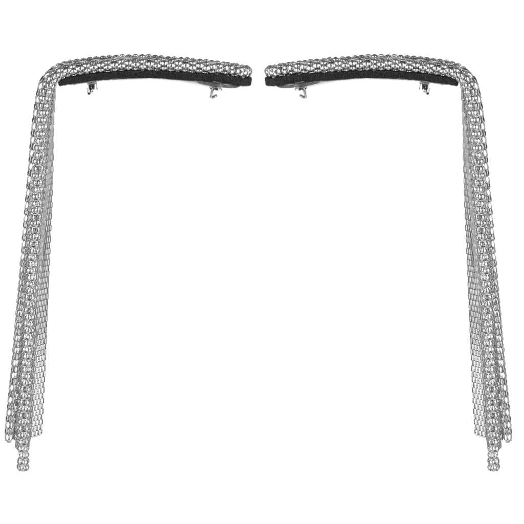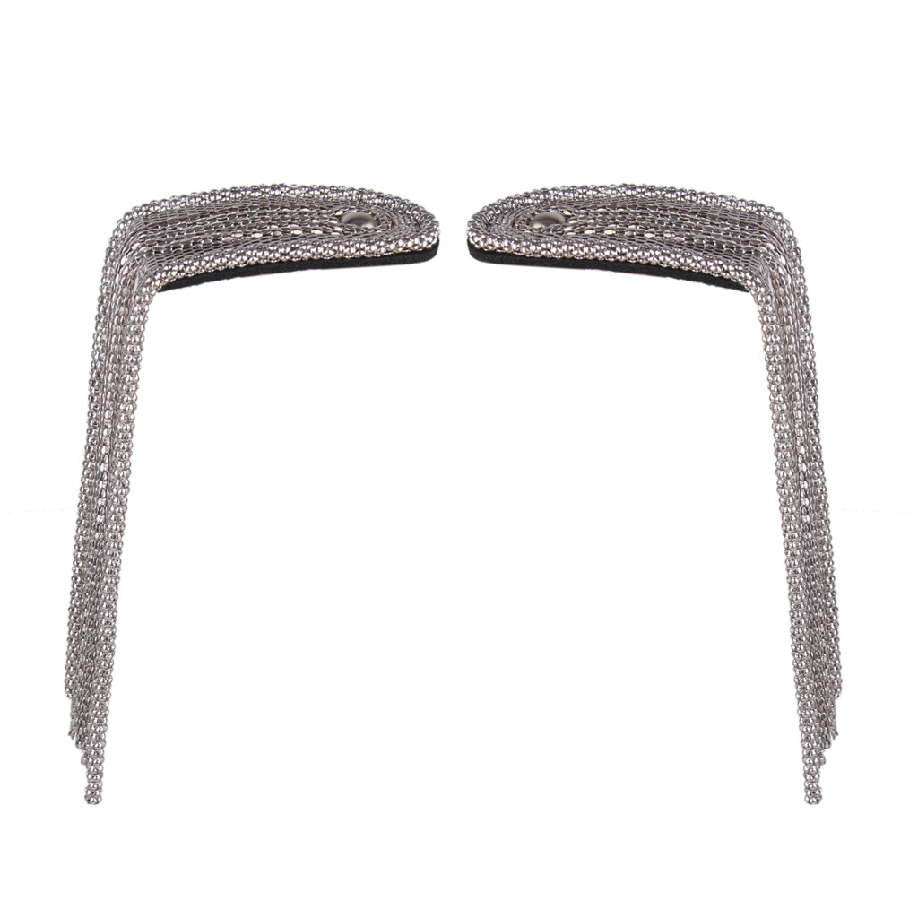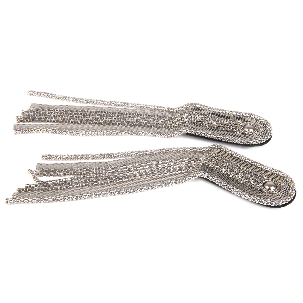 1 Pair Silver Long Tassel Link Chain Costume Epaulet Shoulder Boards Badge