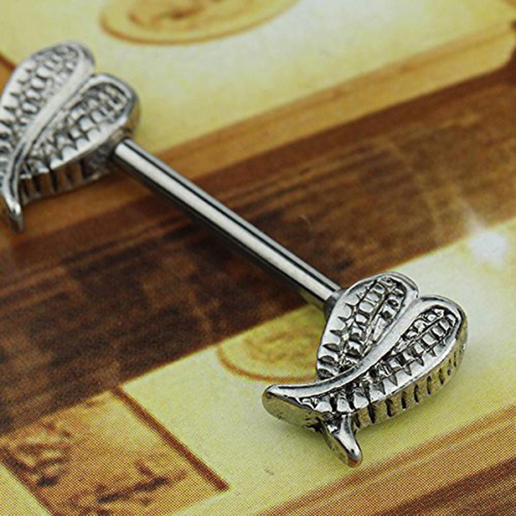 Gauge Size: 16 Gauge =1.2 mm, angel wing shape charms straight bar barbell shield nipple ring.