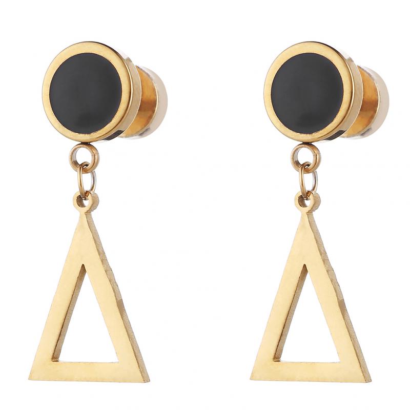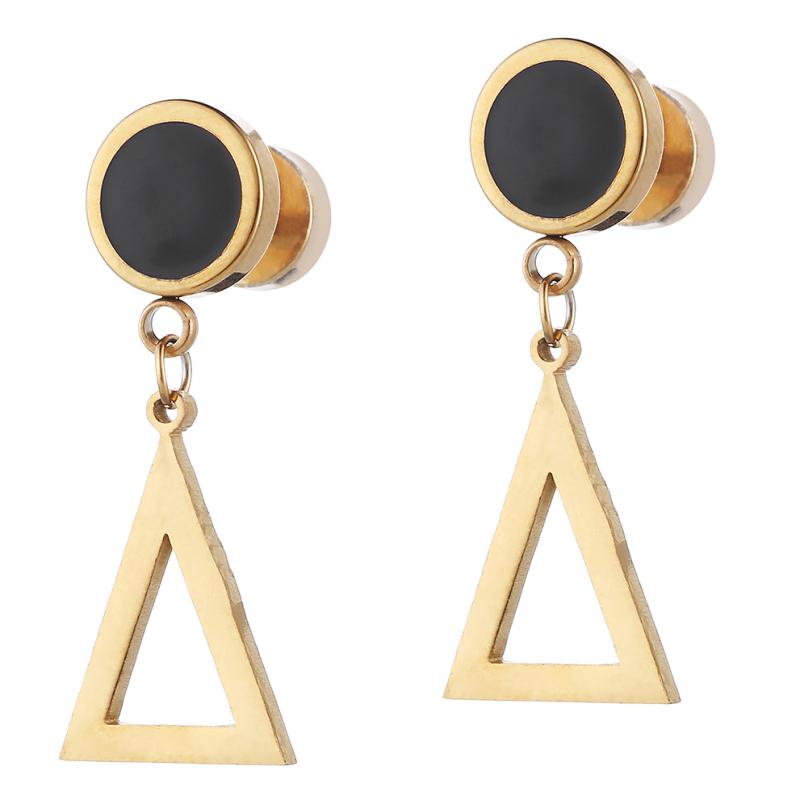 1 Pair Stainless Steel Hollowed Triangle Pendant Earring Gold