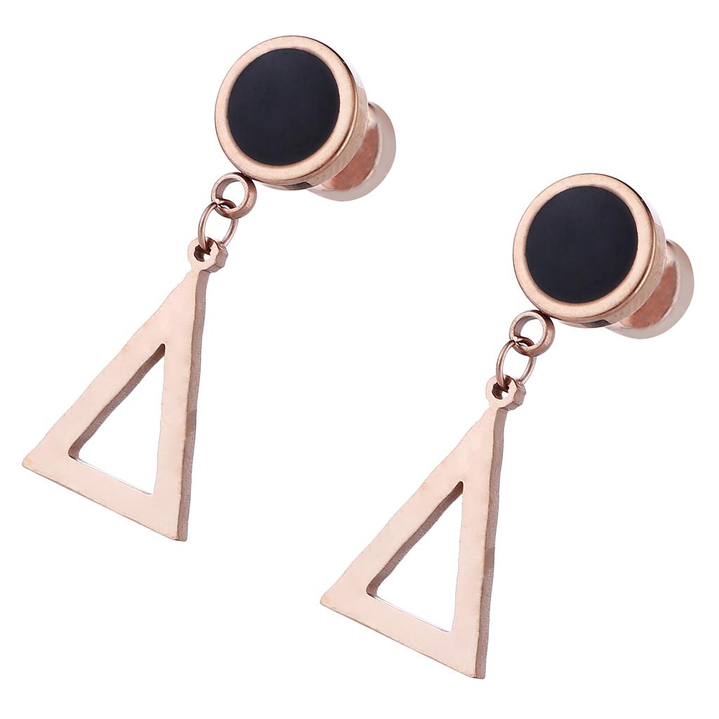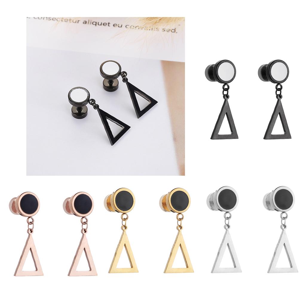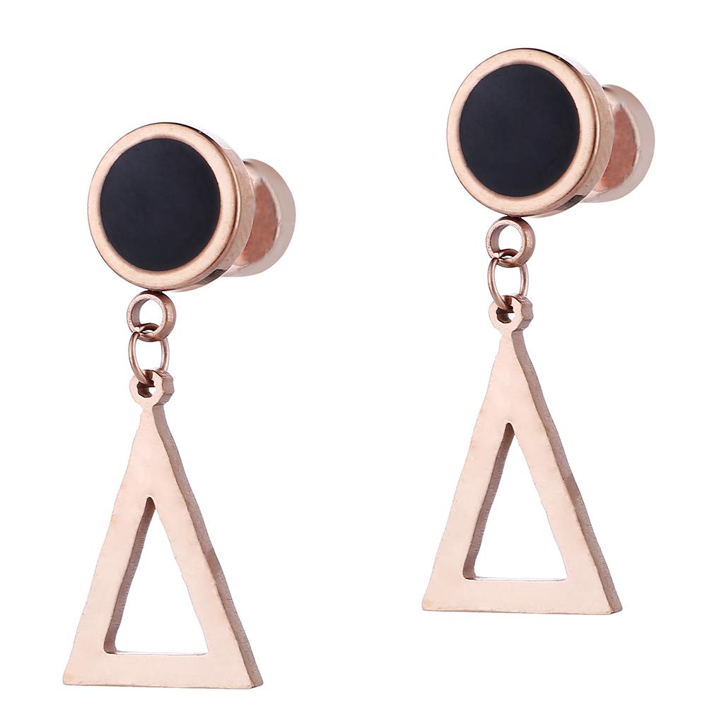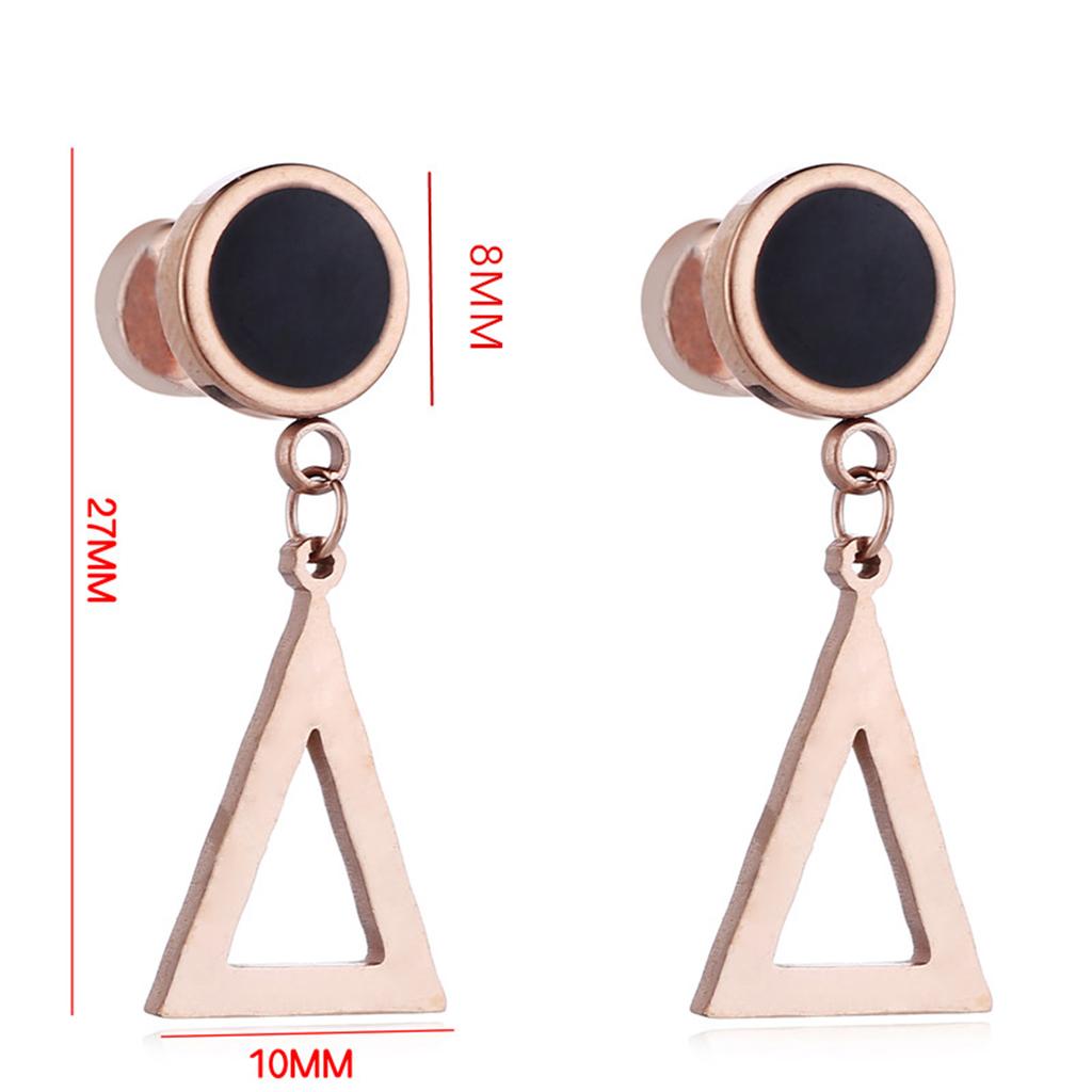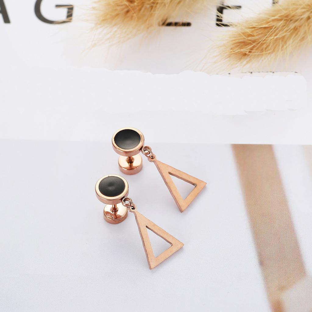 1 Pair of Novelty Personality Shape Stud Earrings, Round Bell with Hollowed Triangle Pendant.