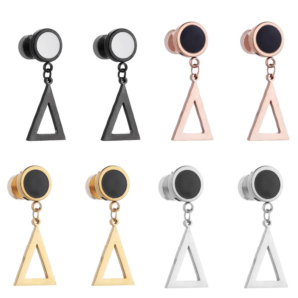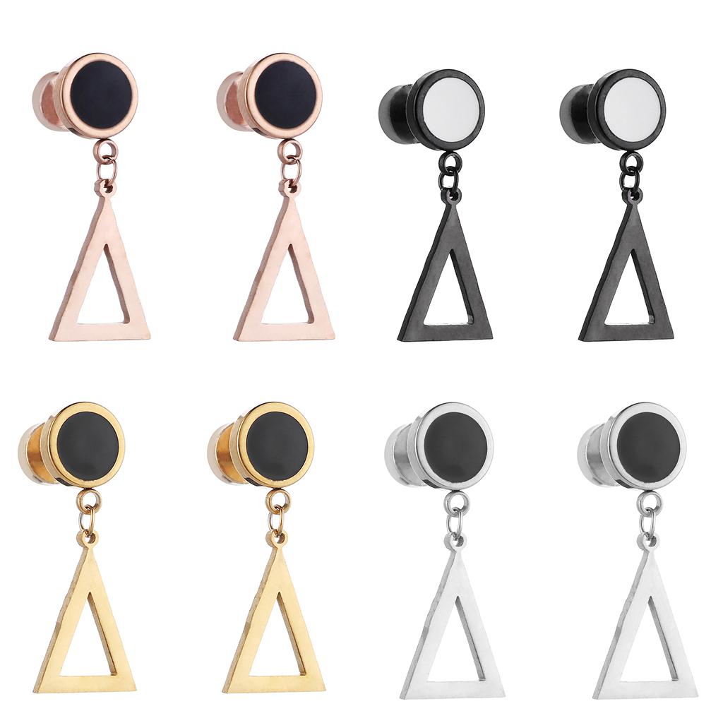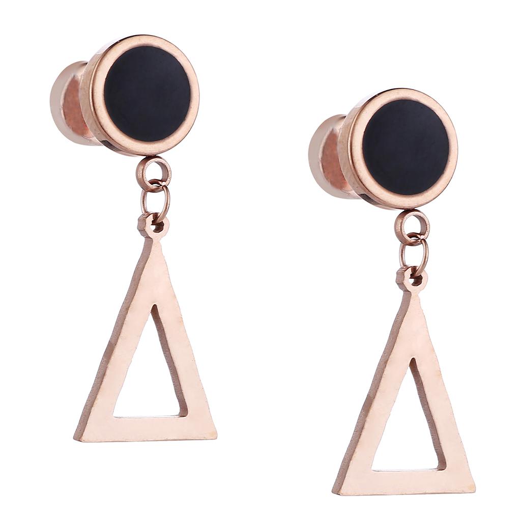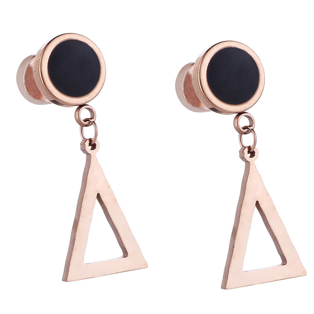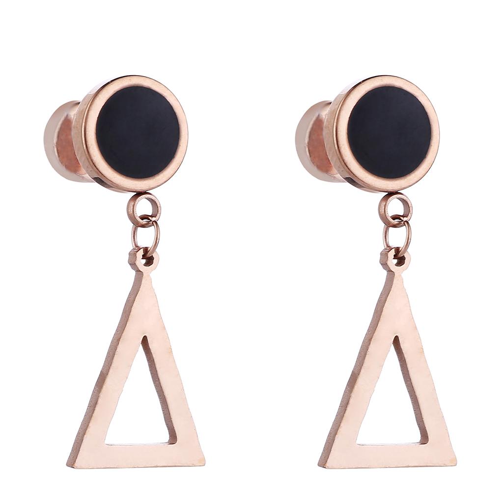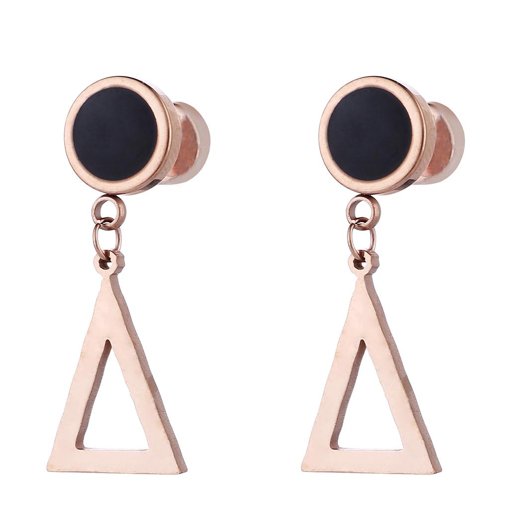 1 Pair of Novelty Personality Shape Stud Earrings, Round Bell with Hollowed Triangle Pendant.