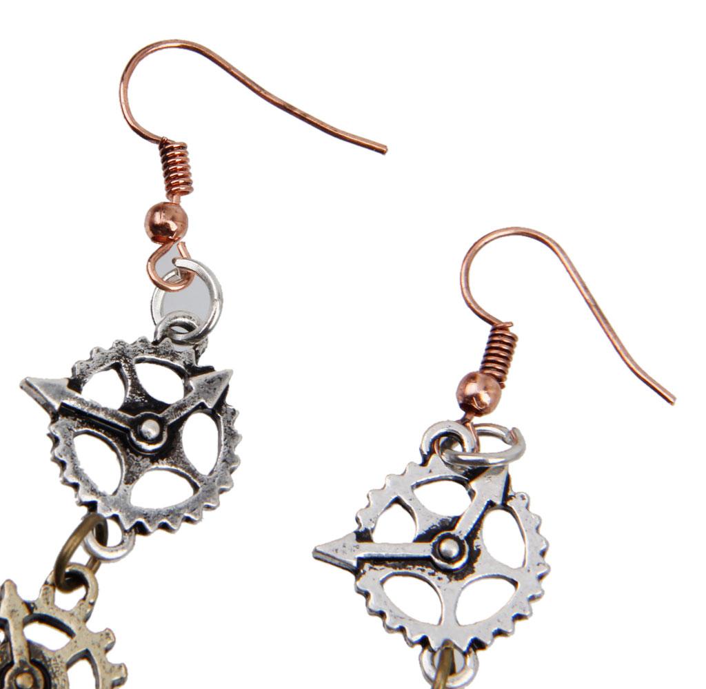 Export quality Steampunk Earring for party and wedding. Made with finest quality of Silver alloy. This earring comes with bronze fish hook and excellent red copper design.