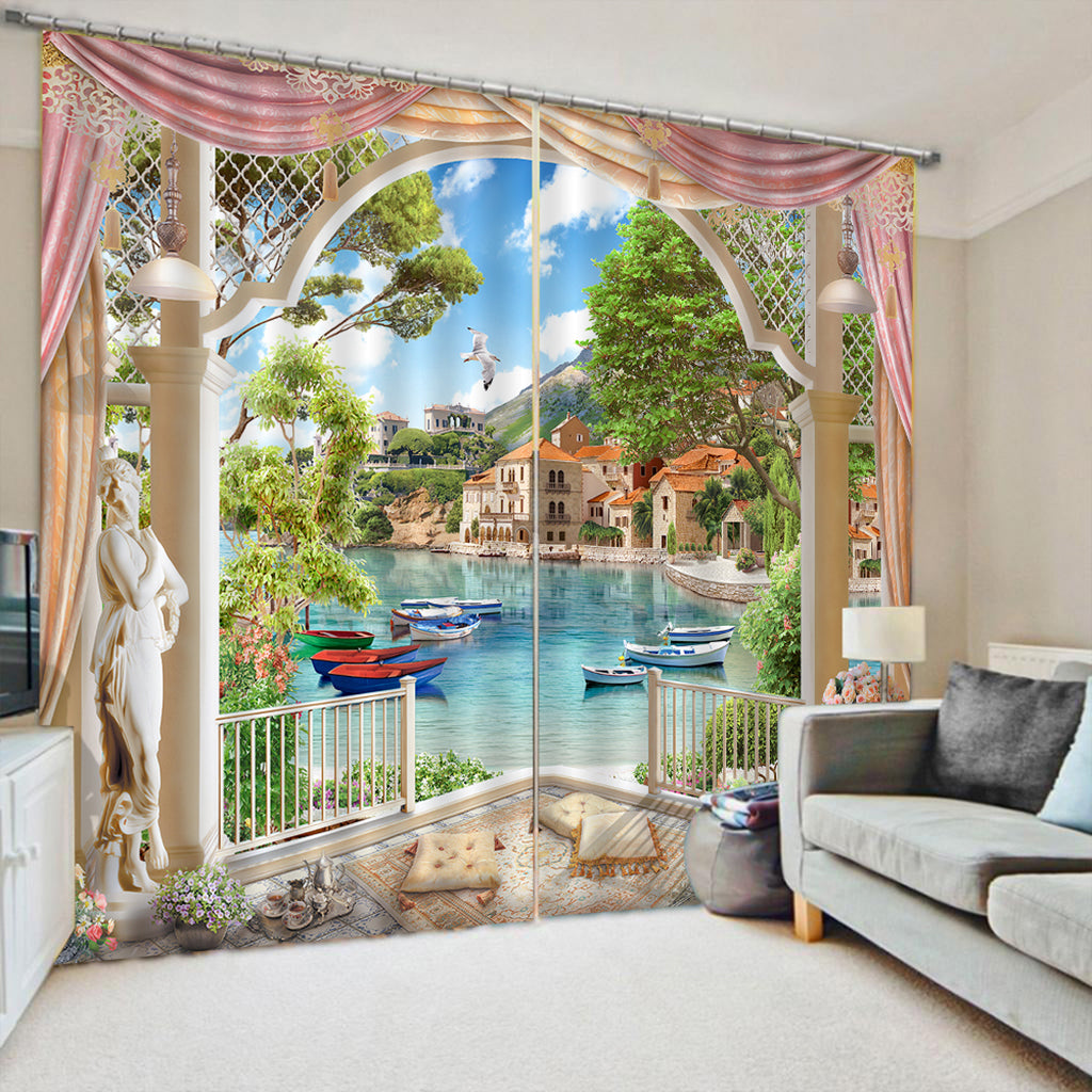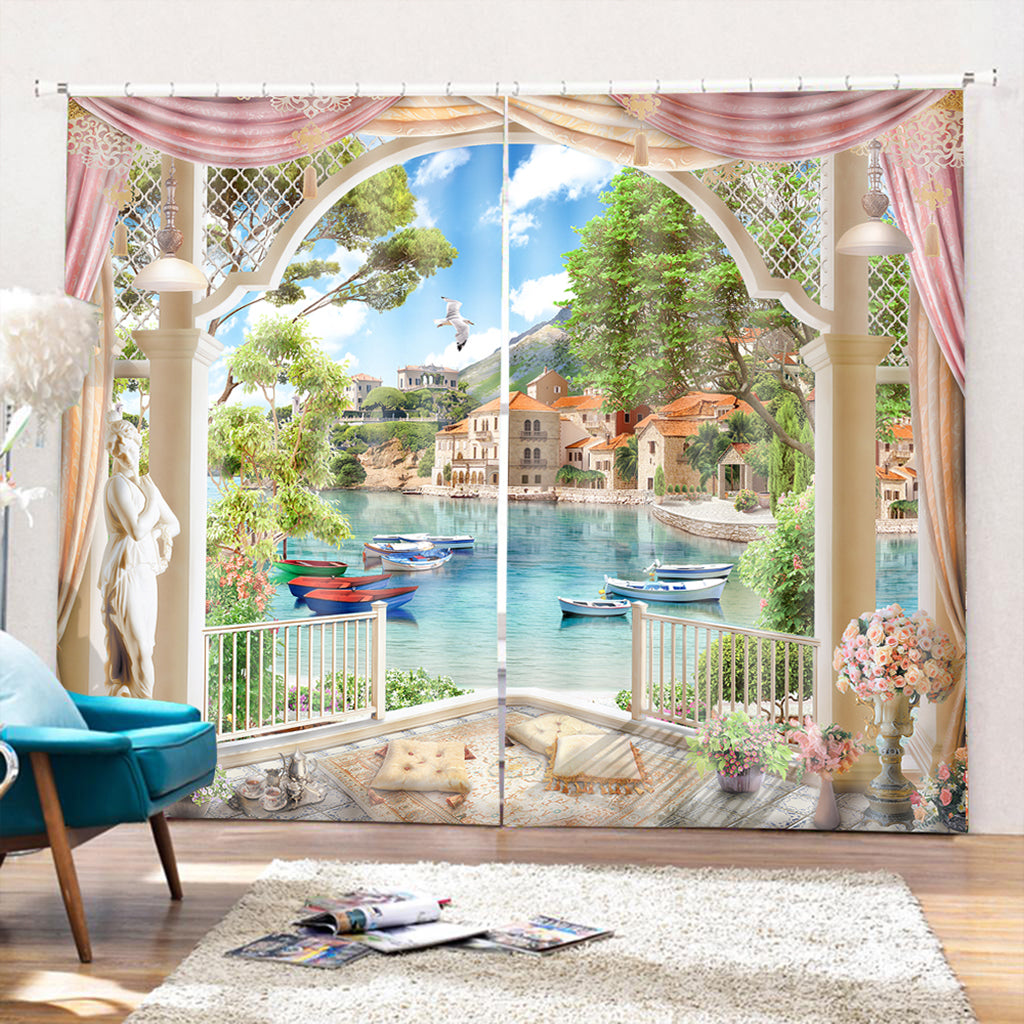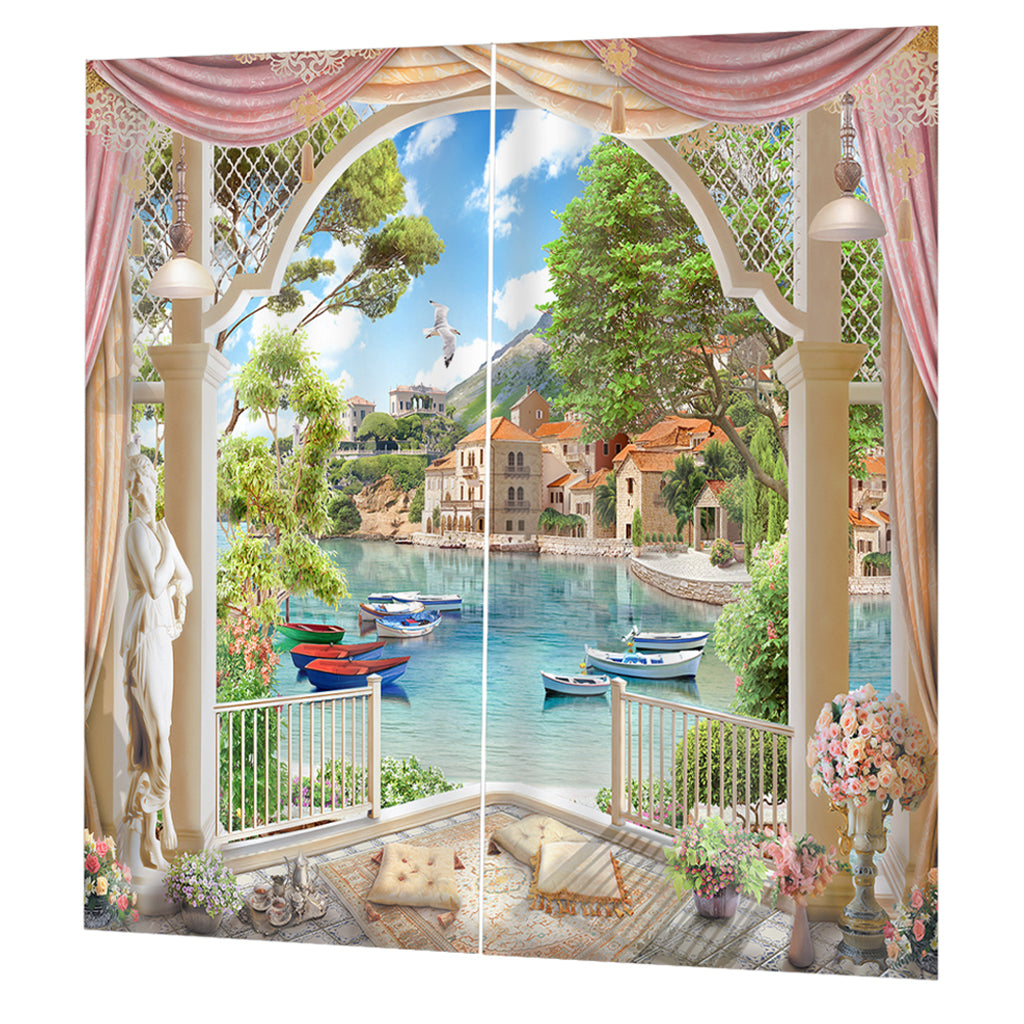 Scenery printed window curtain - Shower Curtain for home elegant comfort.