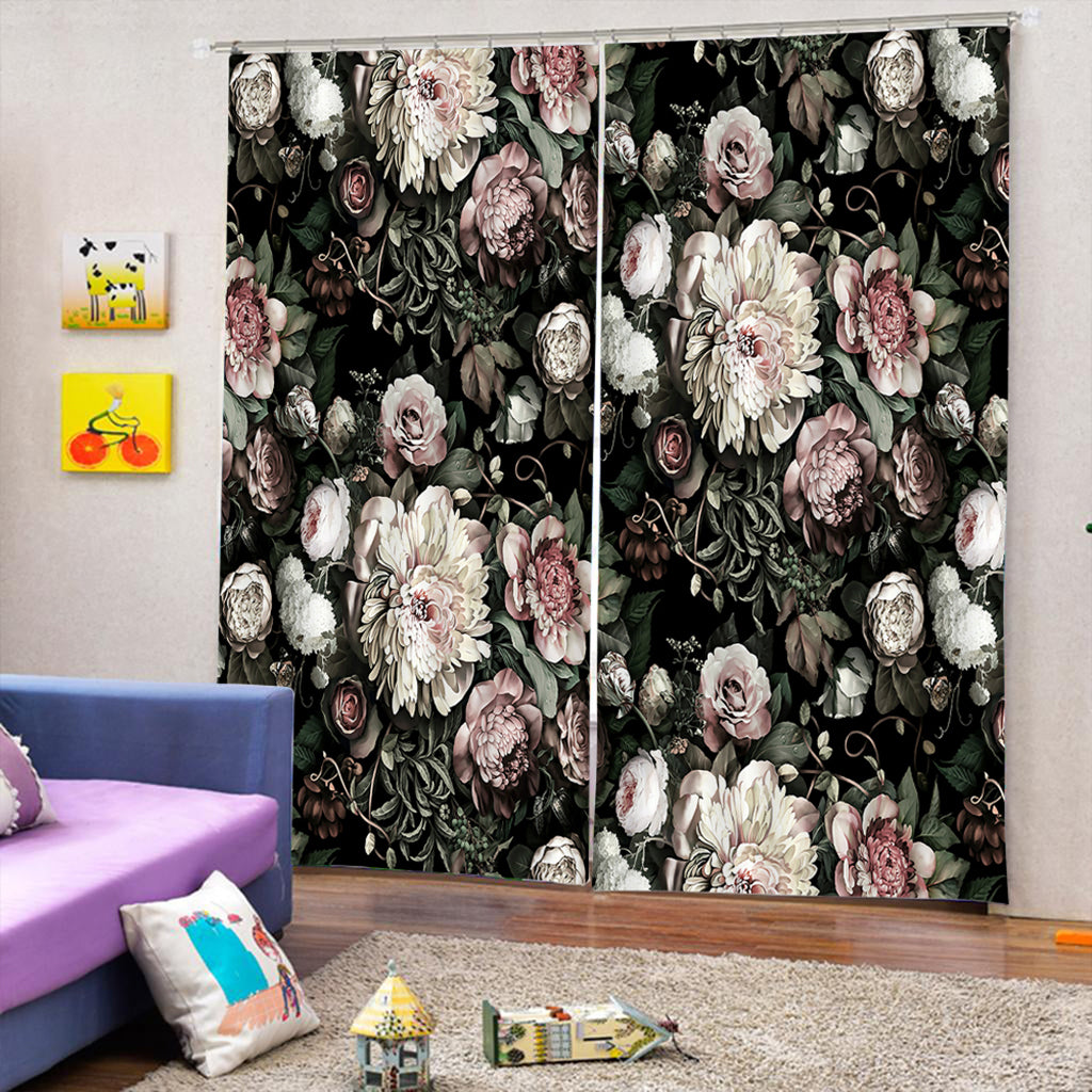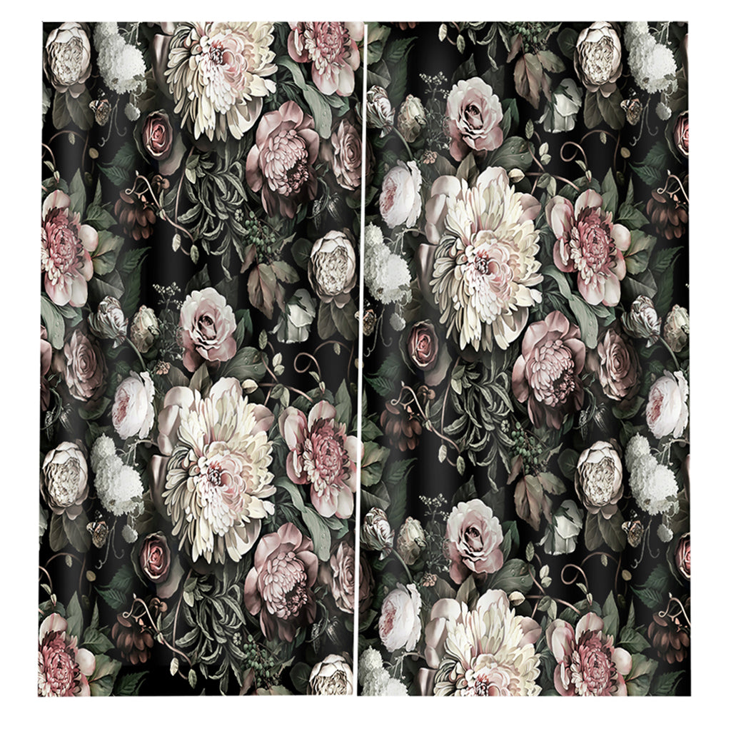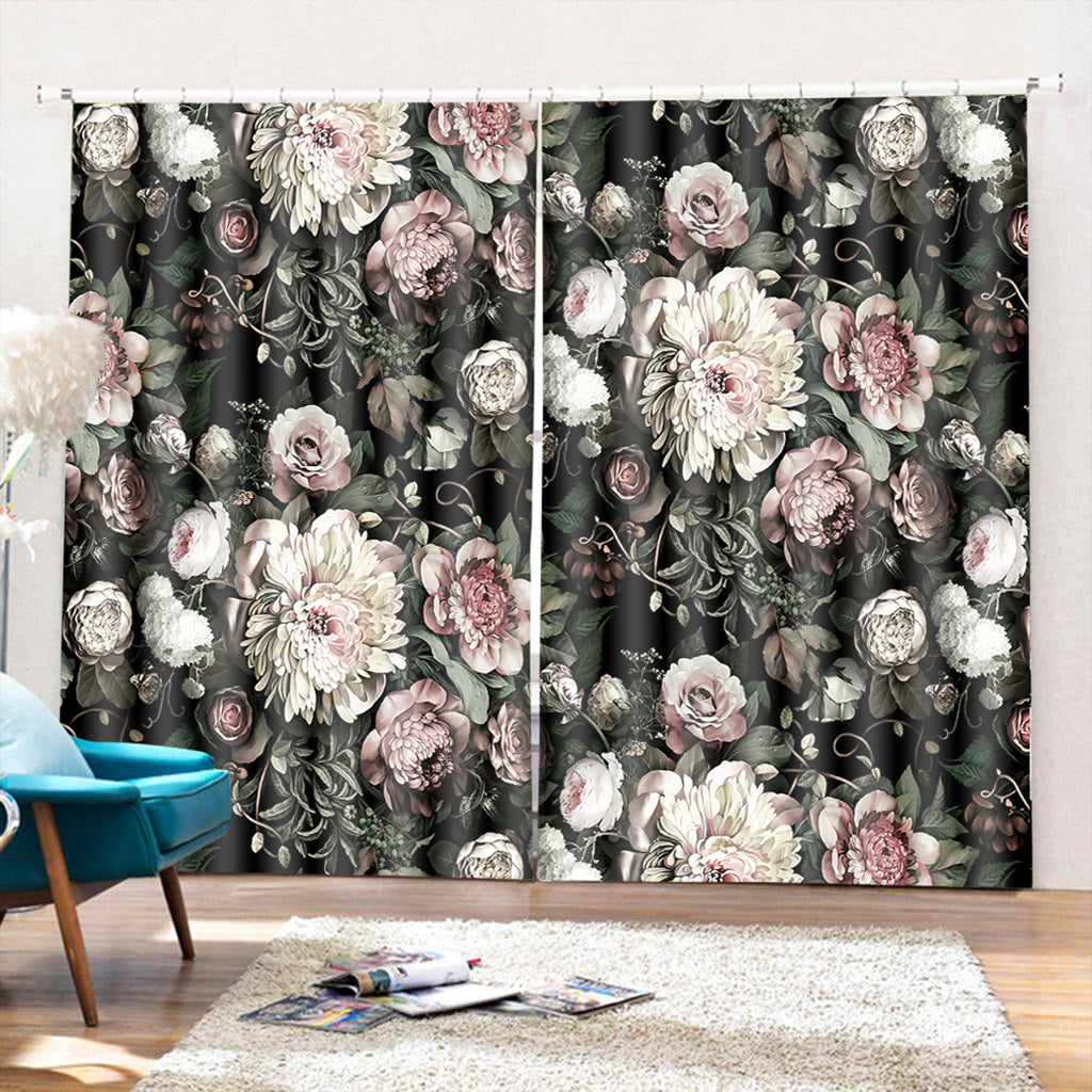 1 Pair Thermal Insulated Blackout Window Curtain Panel Peony 1