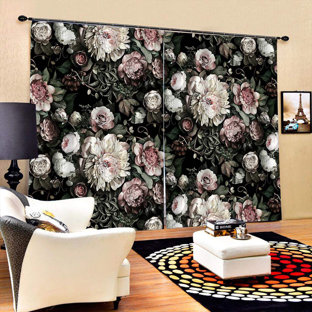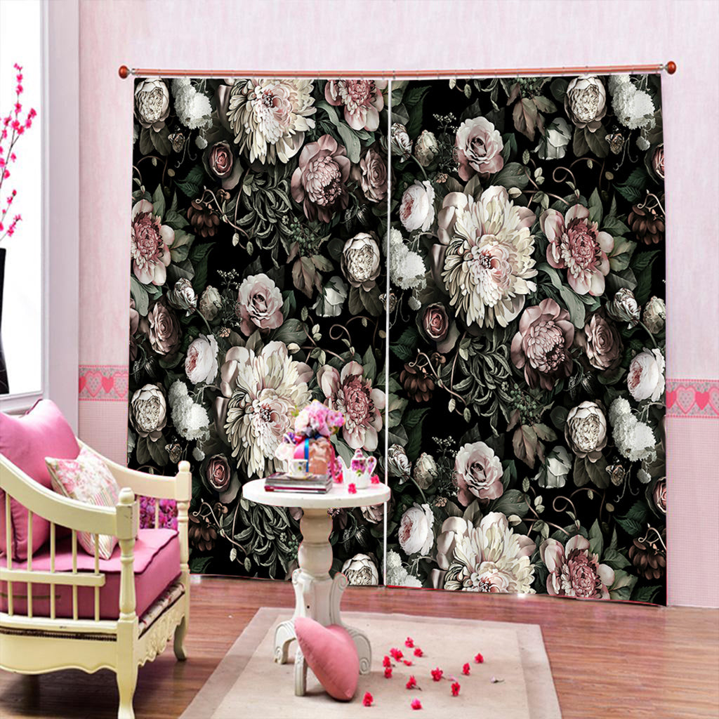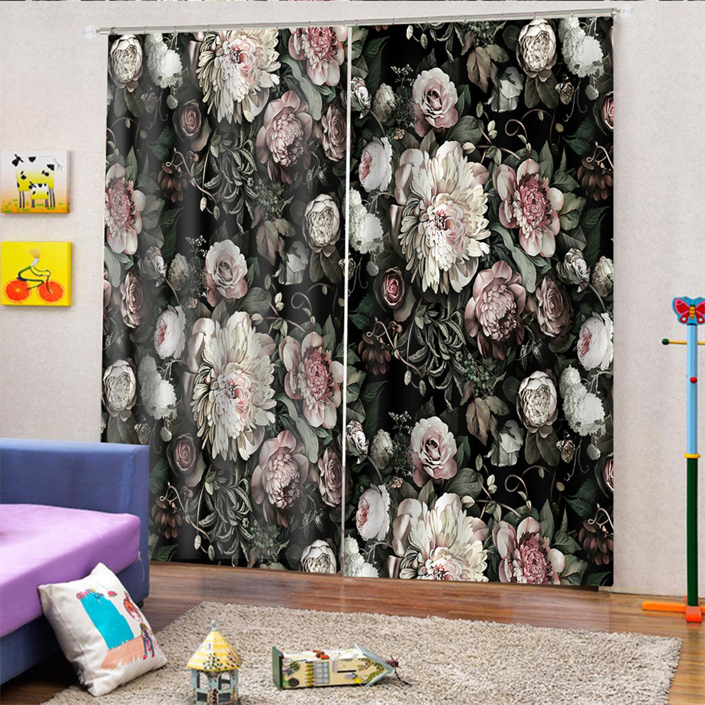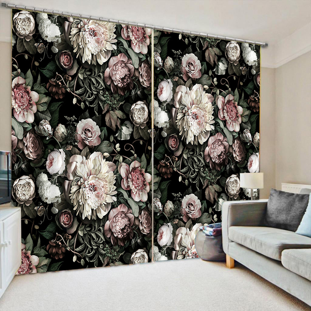 1 Pair Thermal Insulated Blackout Window Curtain Panel Peony 1