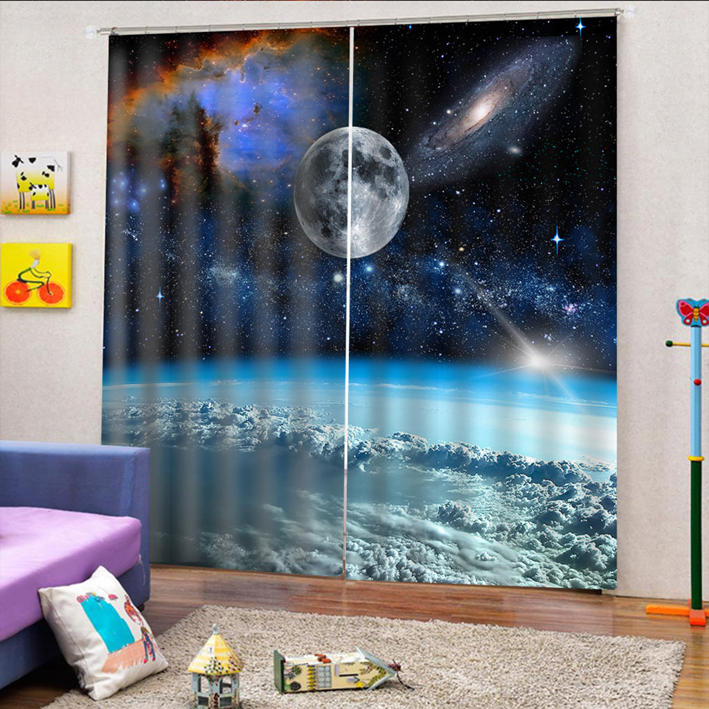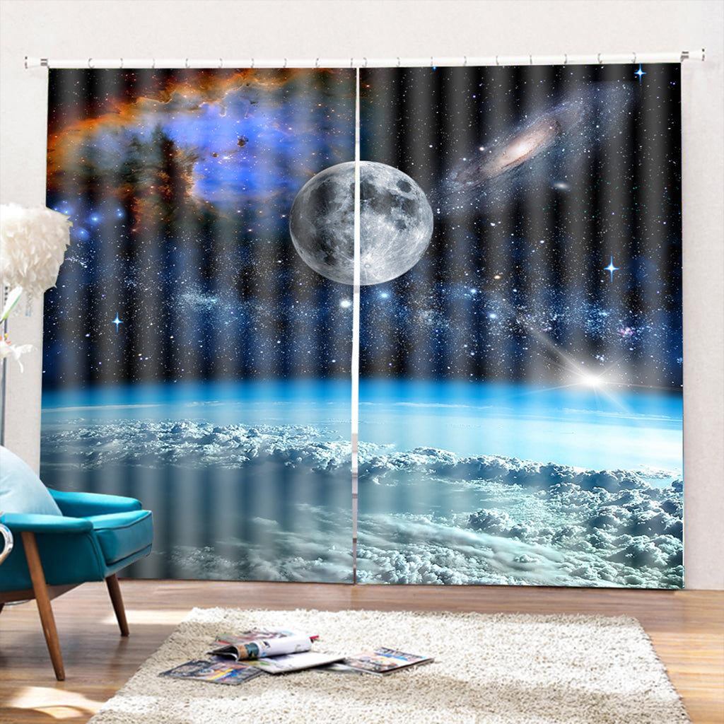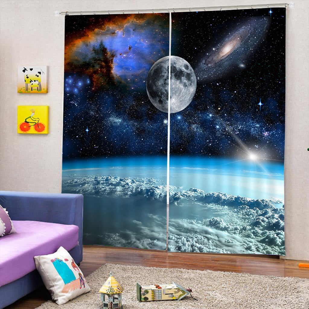 1 Pair Thermal Insulated Blackout Window Curtain Panel Star